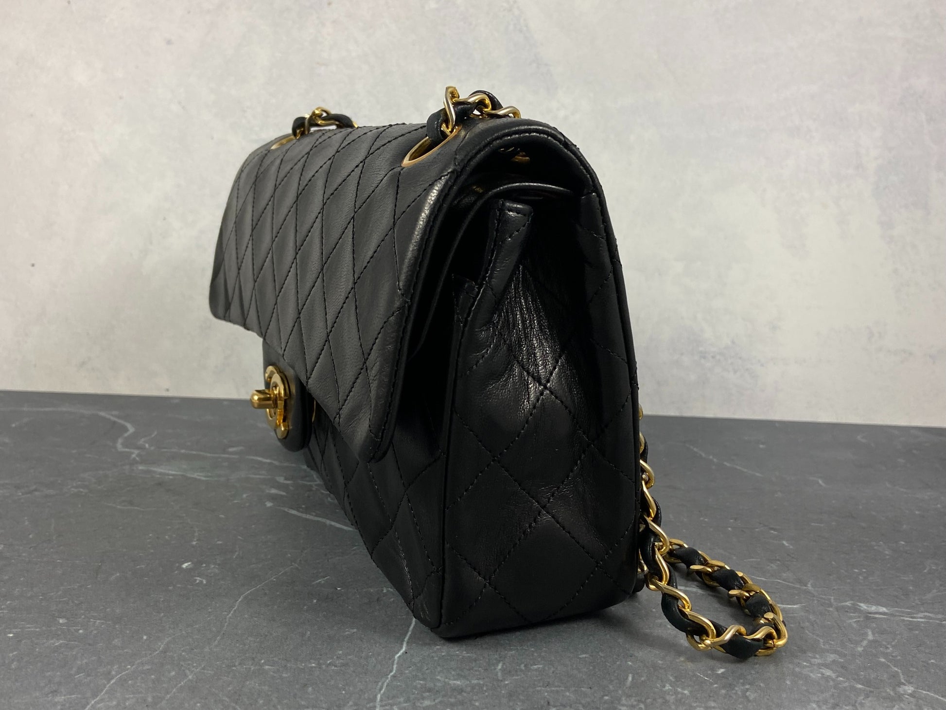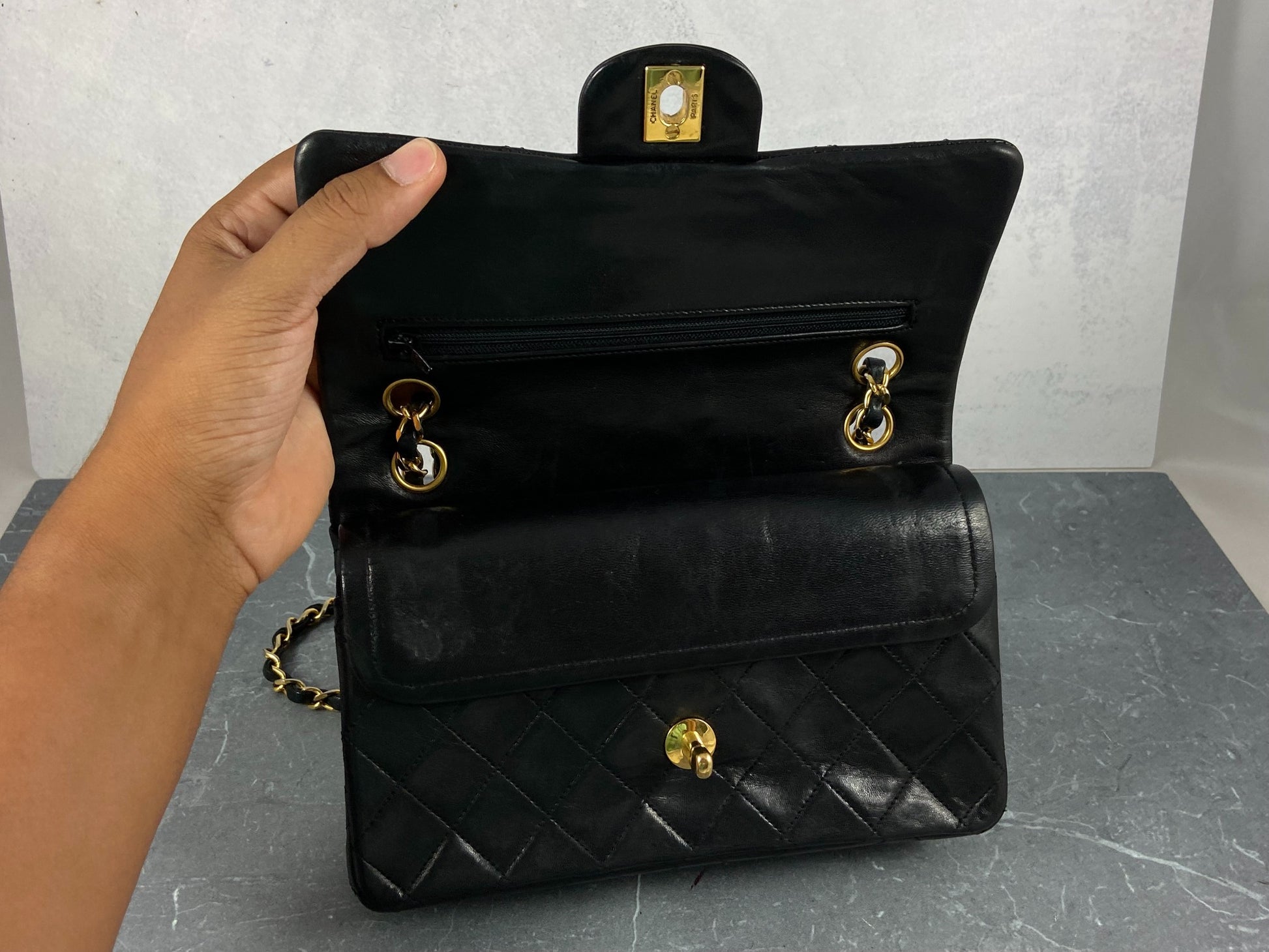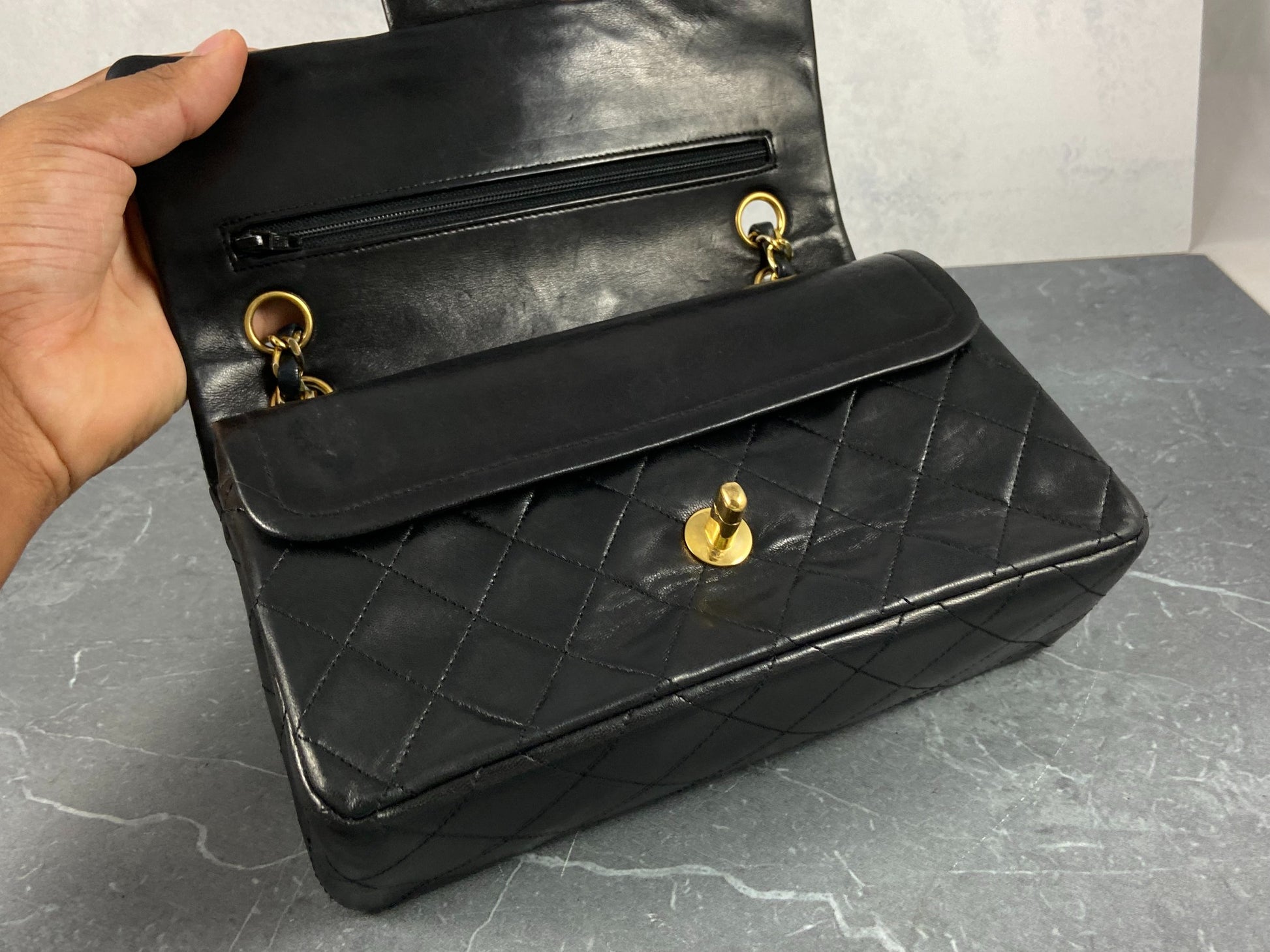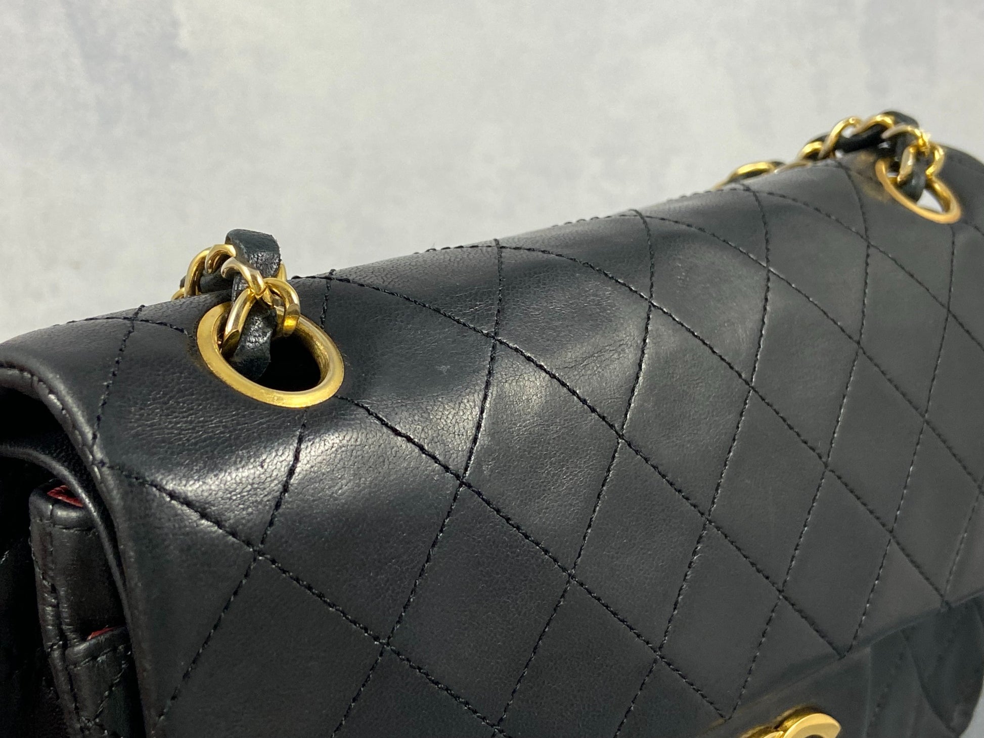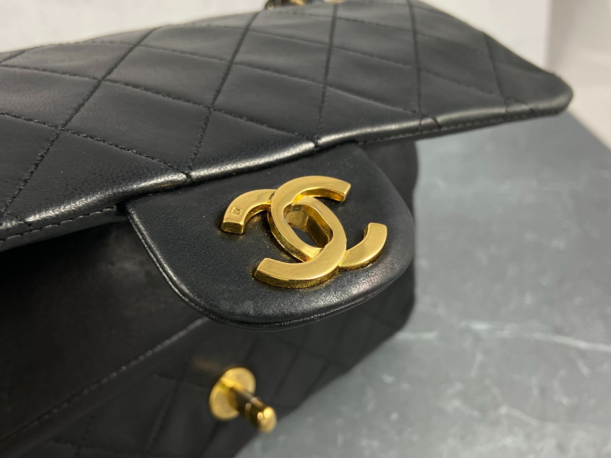 Invest in the Chanel Double Flap Bag in black lambskin leather and upgrade your accessory with a piece that is both functional and stylish.