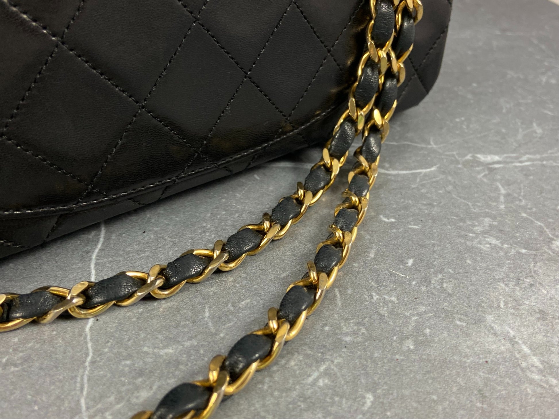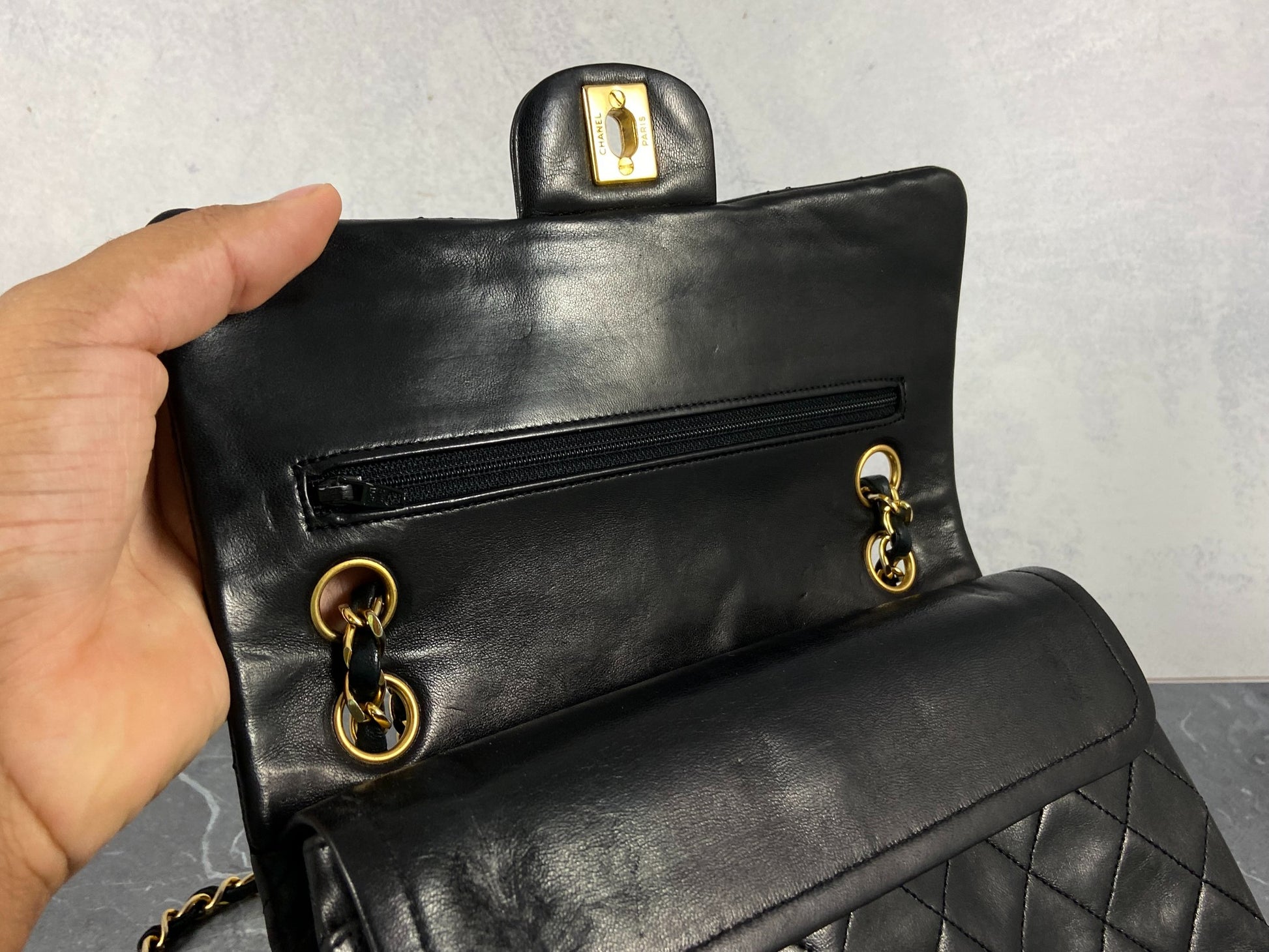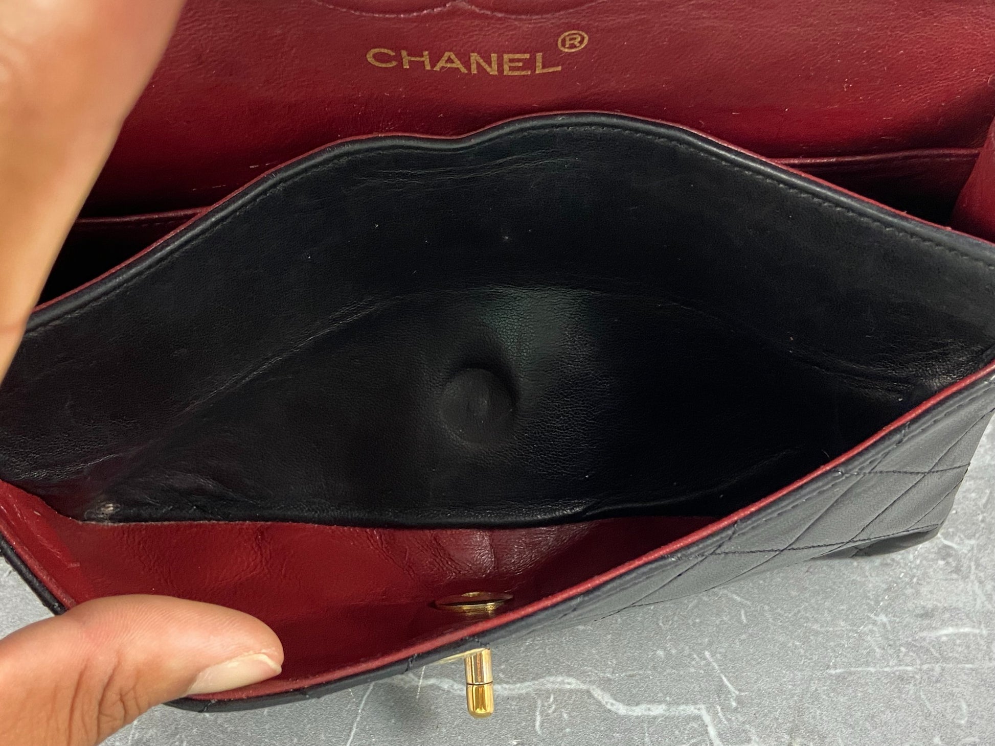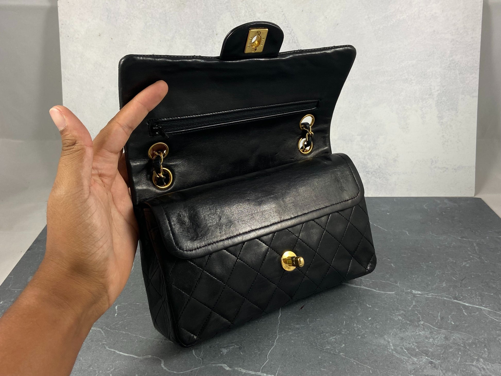 Invest in the Chanel Double Flap Bag in black lambskin leather and upgrade your accessory with a piece that is both functional and stylish.