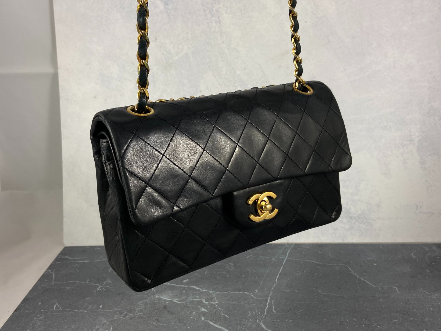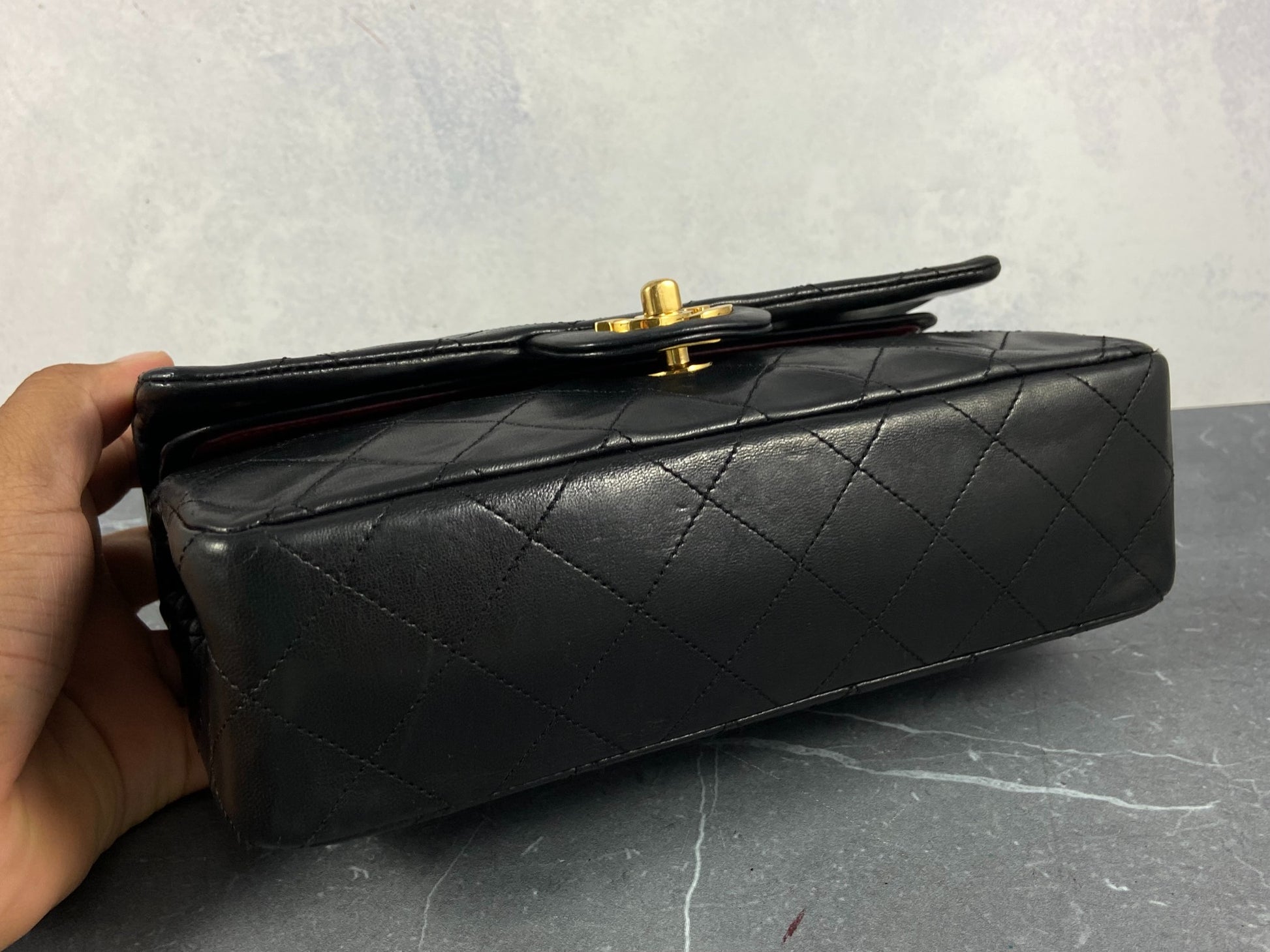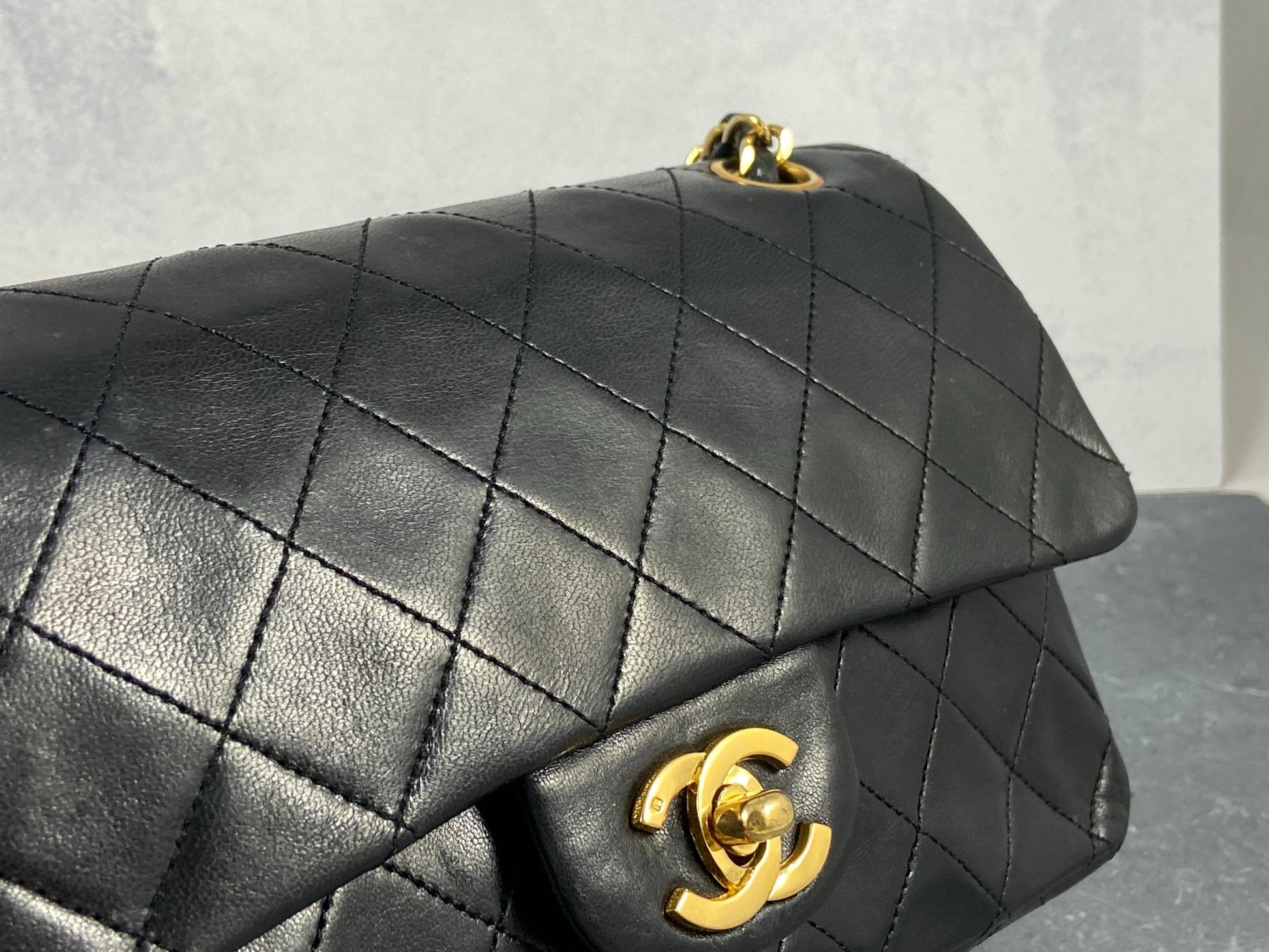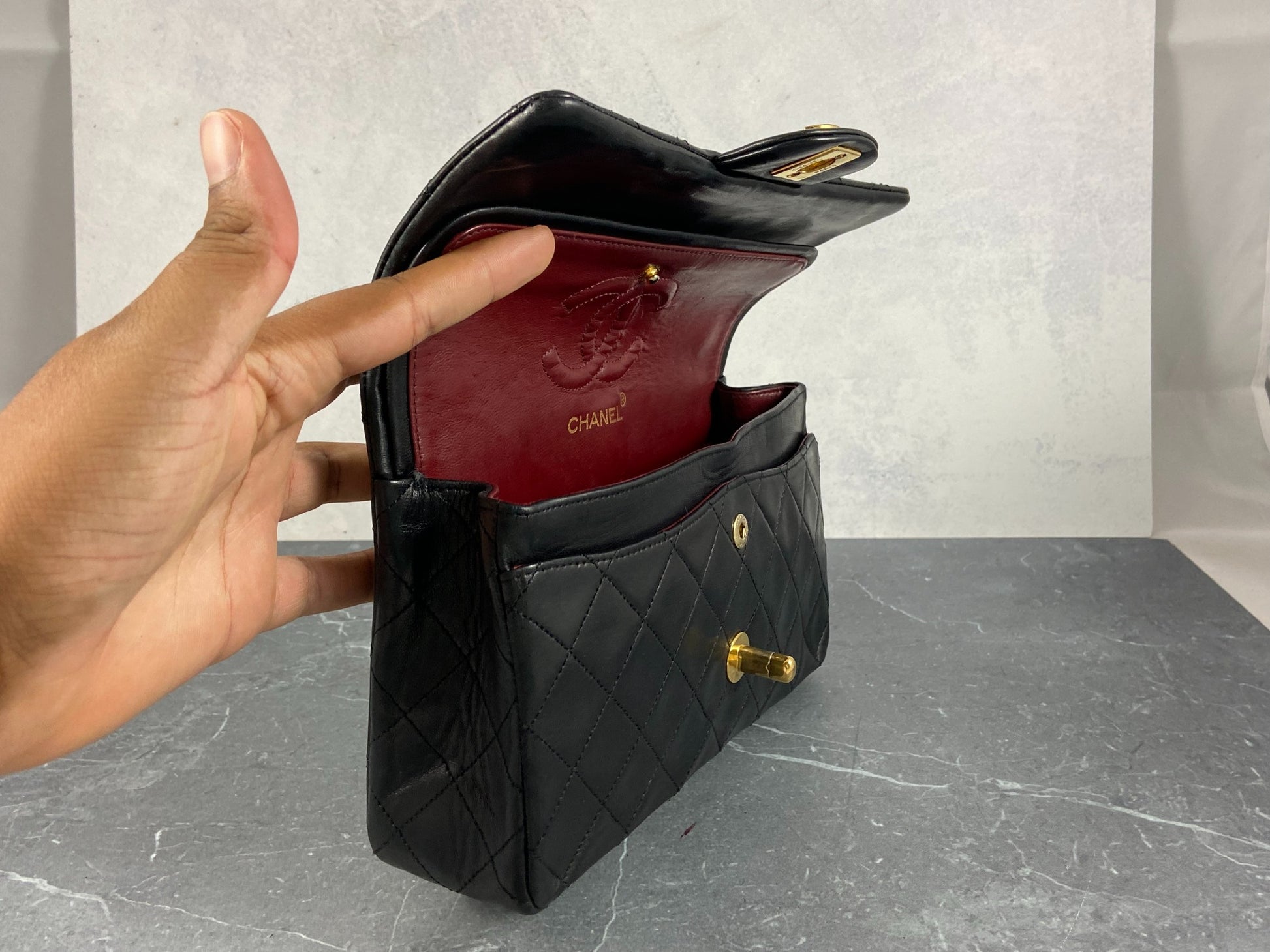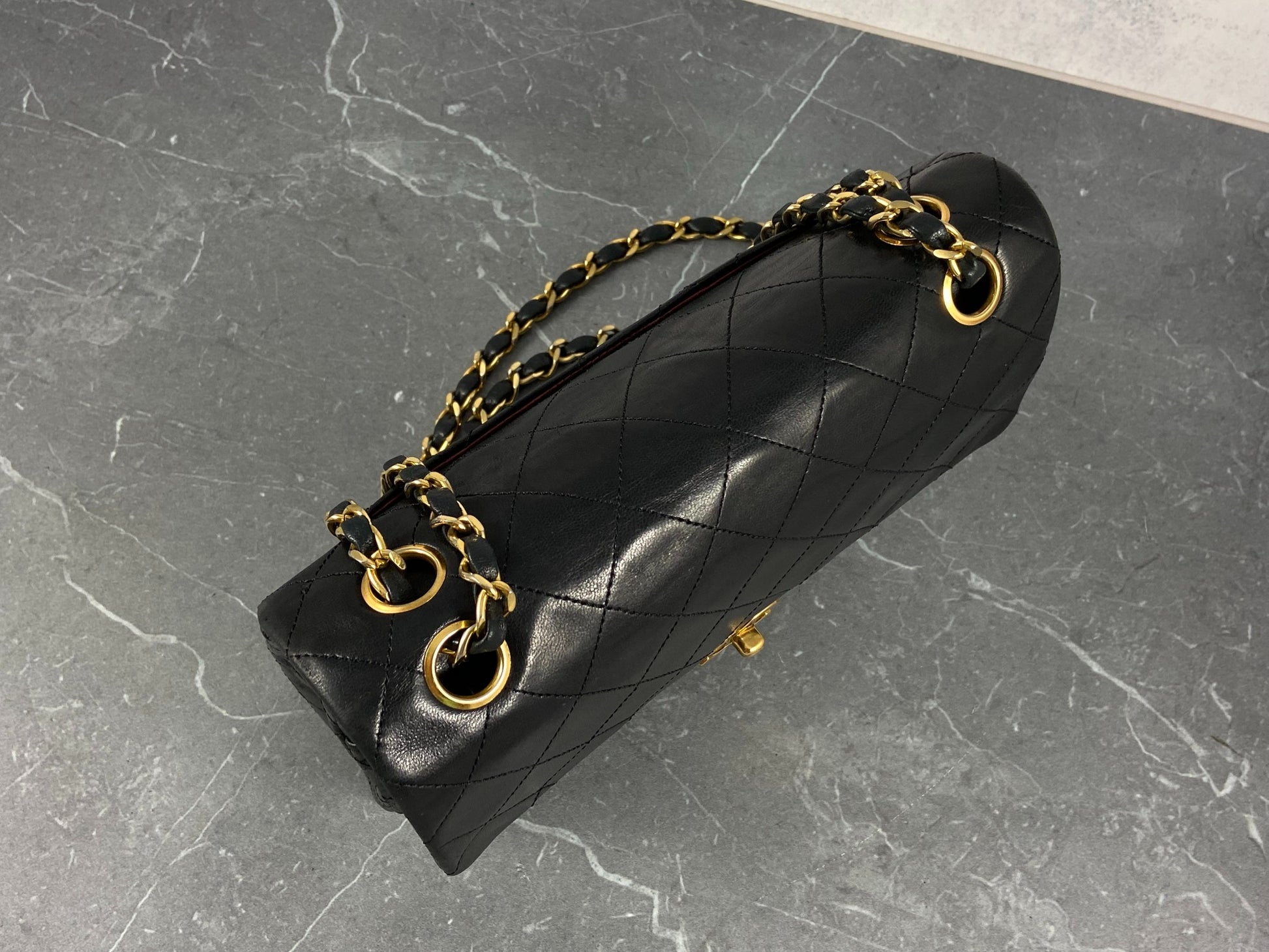 Invest in the Chanel Double Flap Bag in black lambskin leather and upgrade your accessory with a piece that is both functional and stylish.