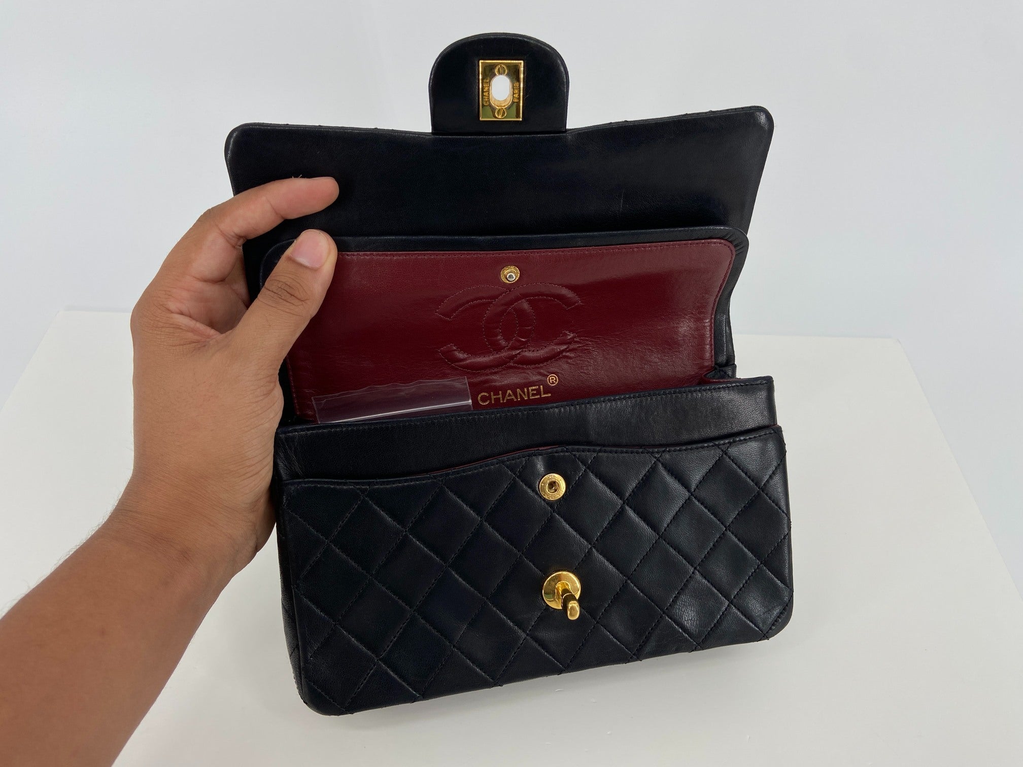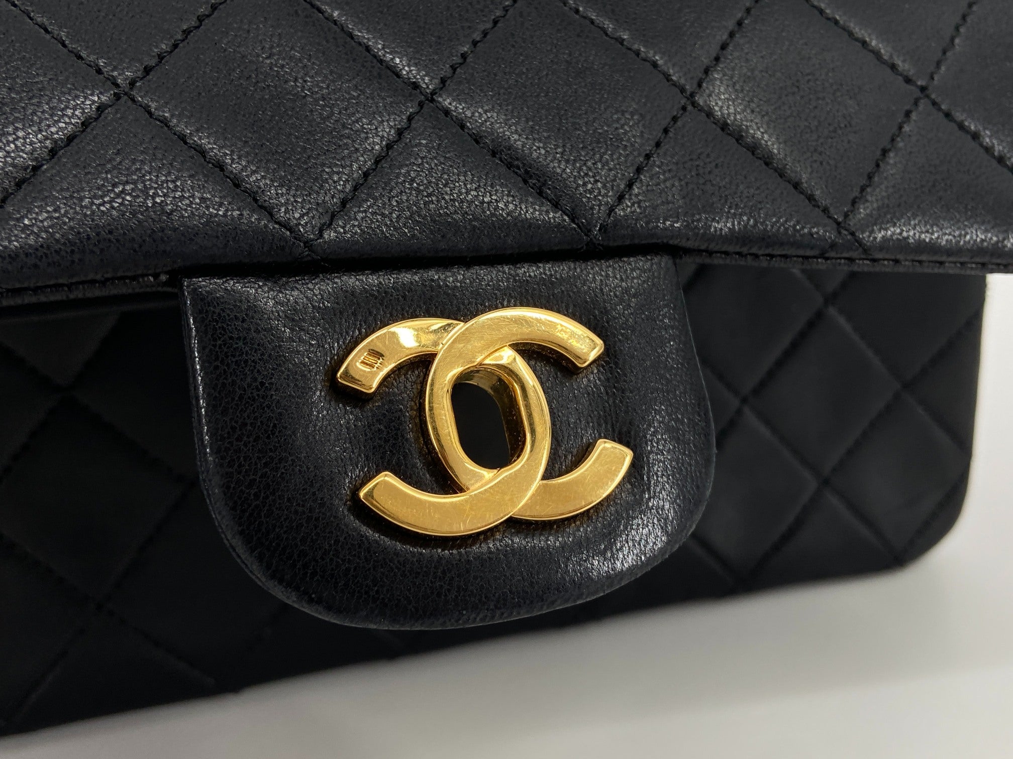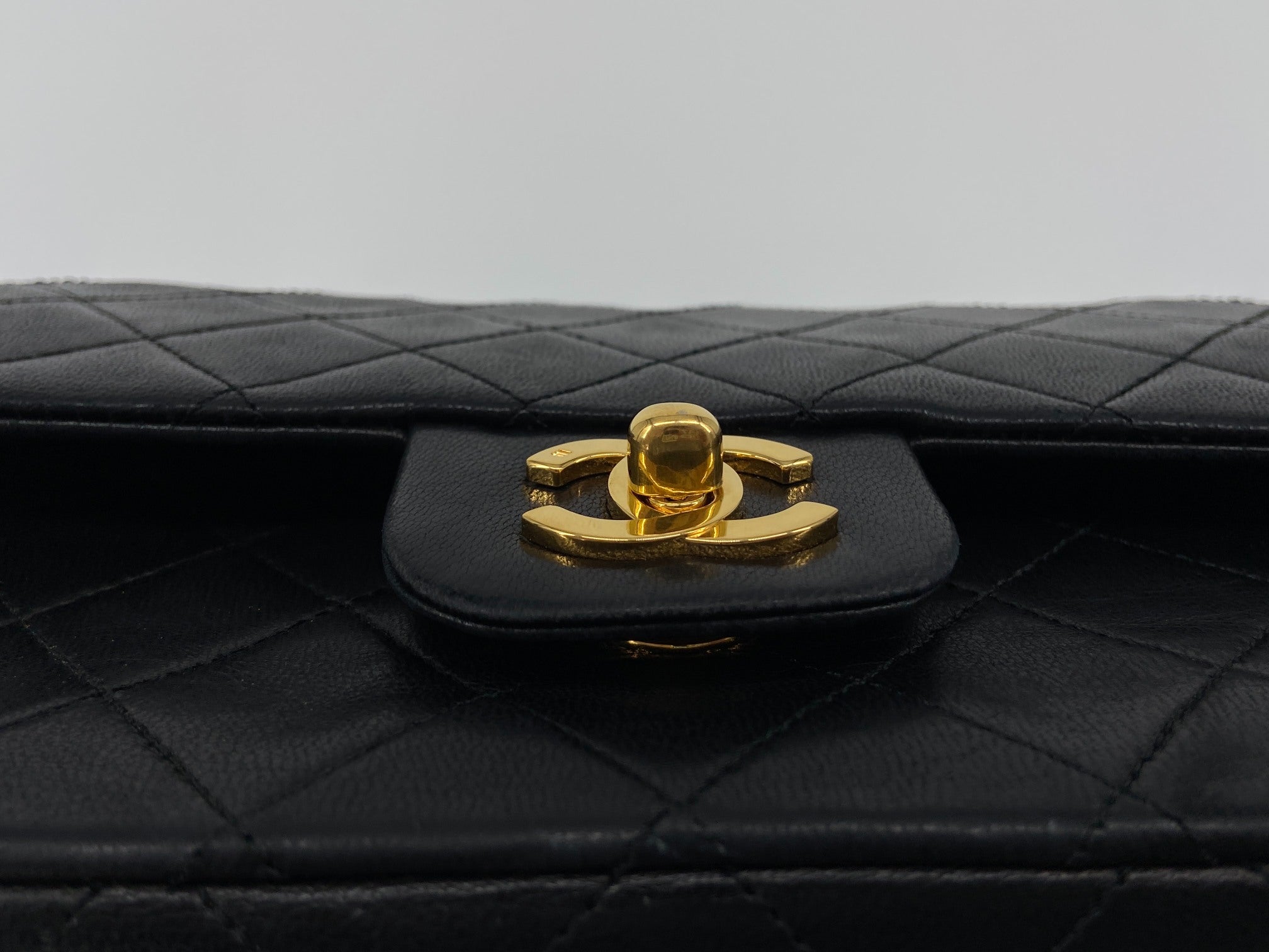 Invest in the Chanel Double Flap Bag in black lambskin leather and upgrade your accessory with a piece that is both functional and stylish.