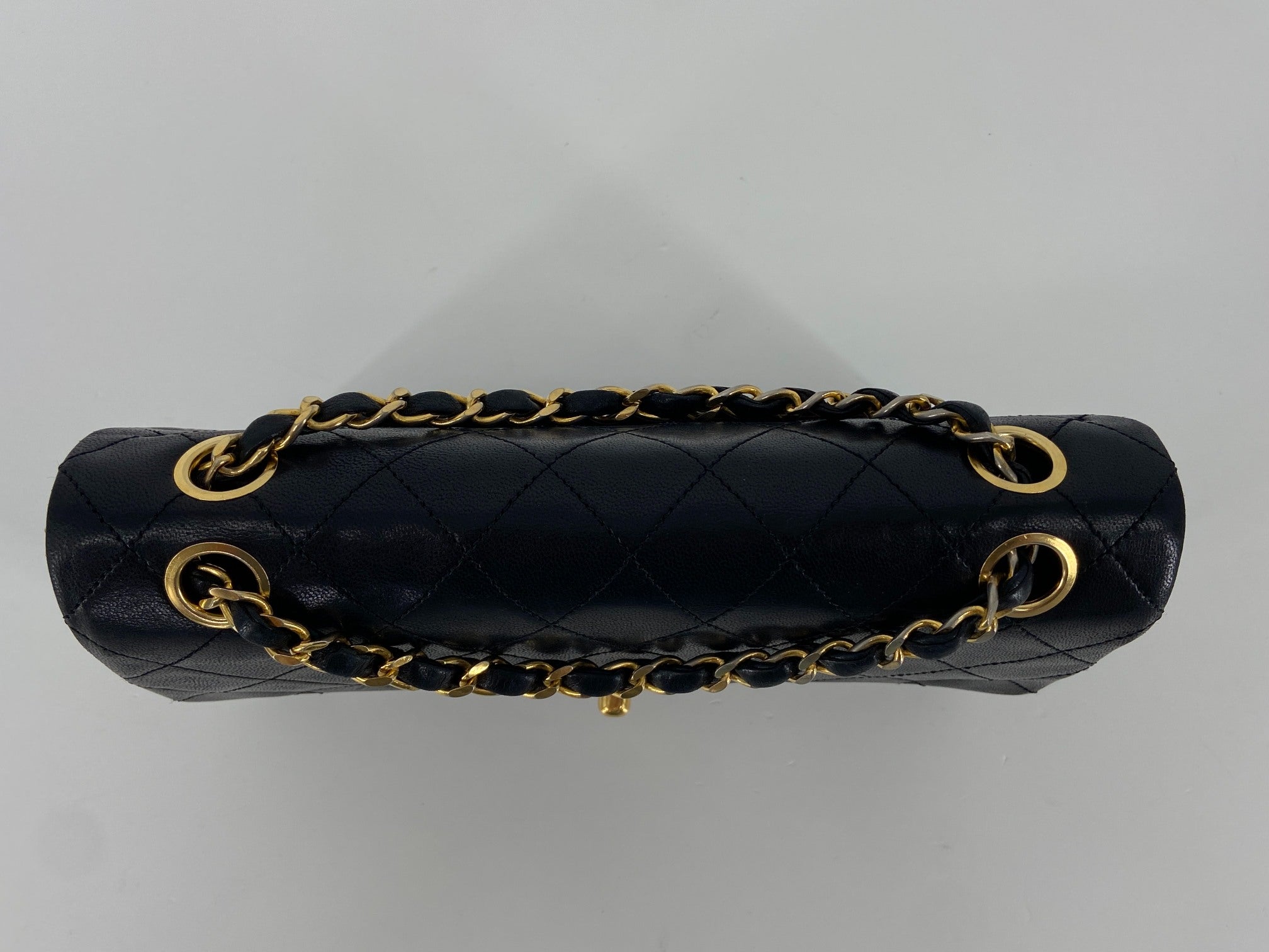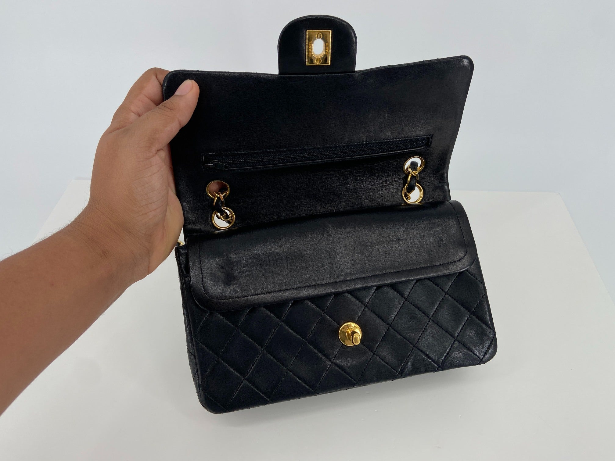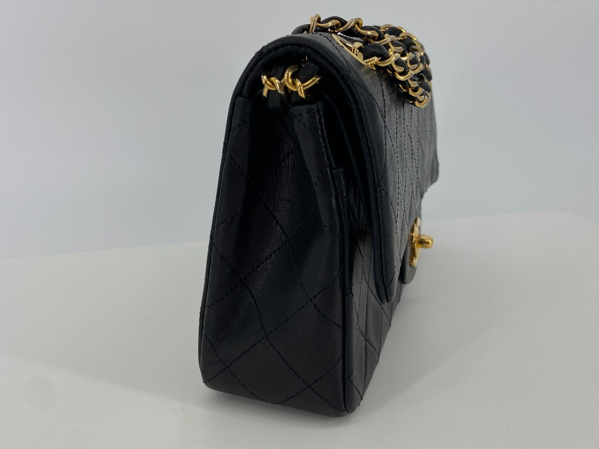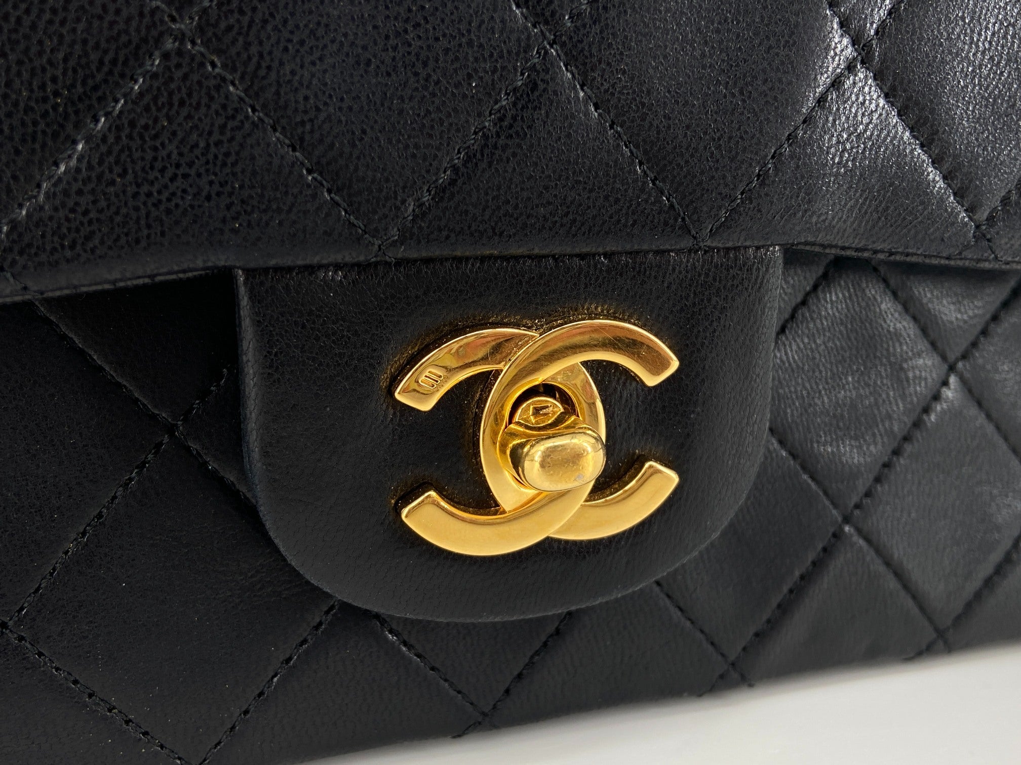 Invest in the Chanel Double Flap Bag in black lambskin leather and upgrade your accessory with a piece that is both functional and stylish.
