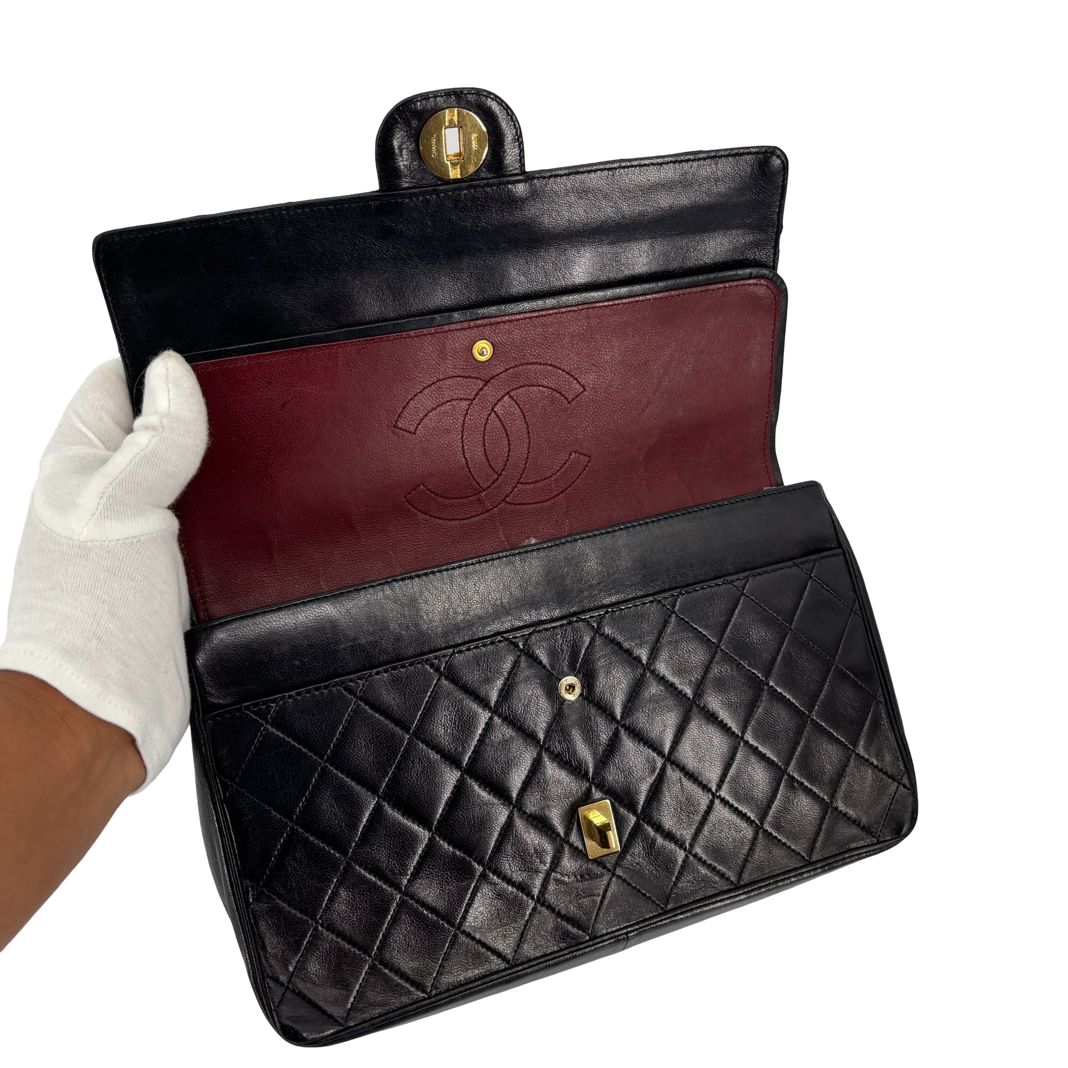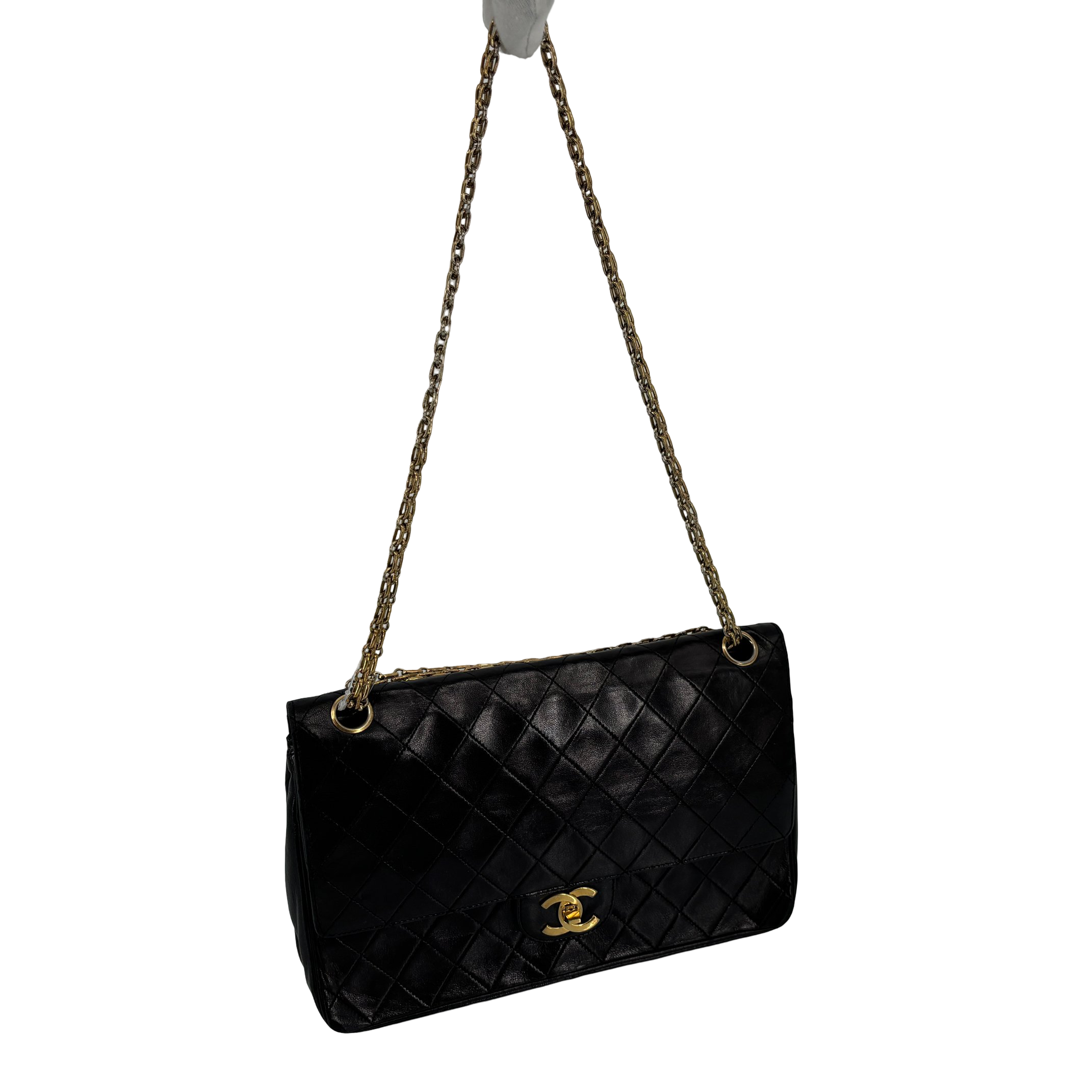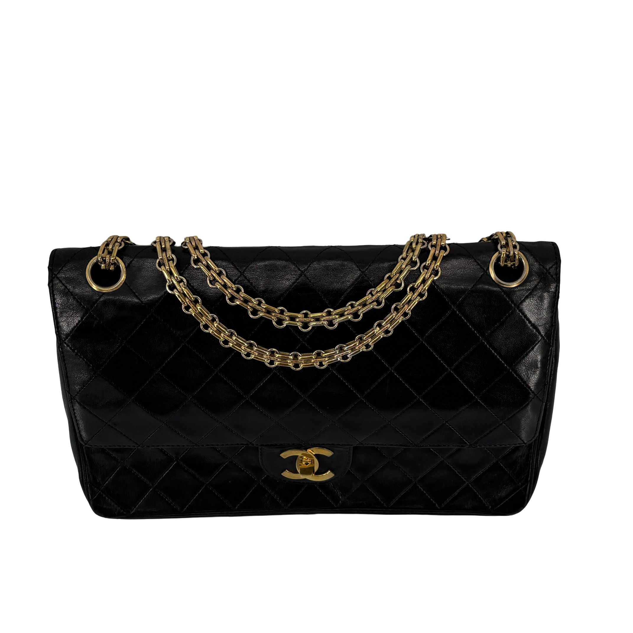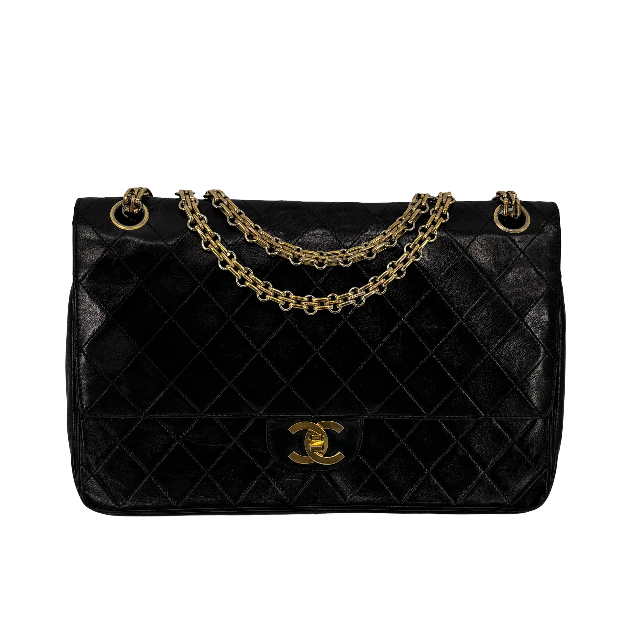 - Chanel Timeless / Classique Double Flap Bag Black Matelassé Leather Medium