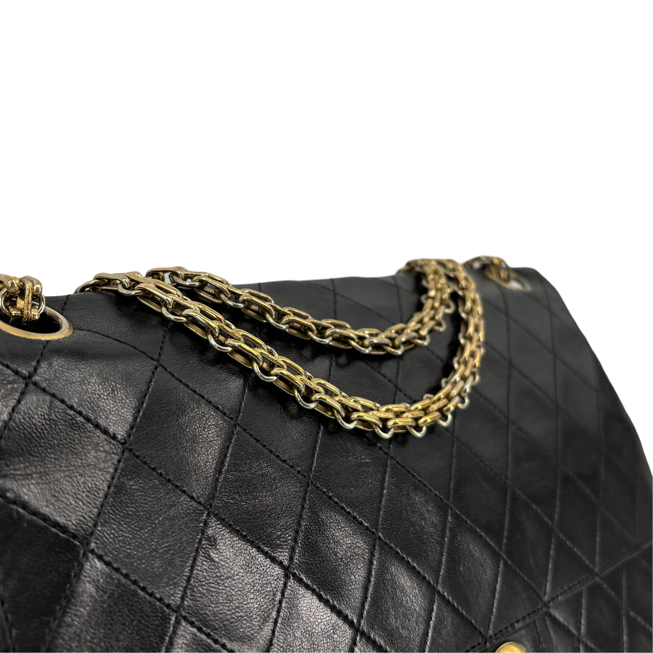 Chanel Timeless / Classique Double Flap Bag Black Matelassé Leather Medium