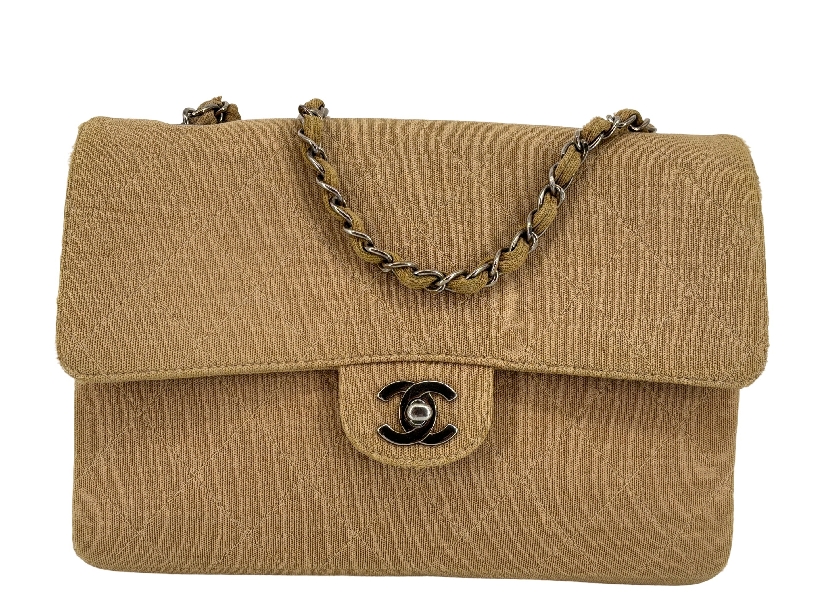 - Chanel Timeless / Classic Flap Bag Medium Beige Jersey