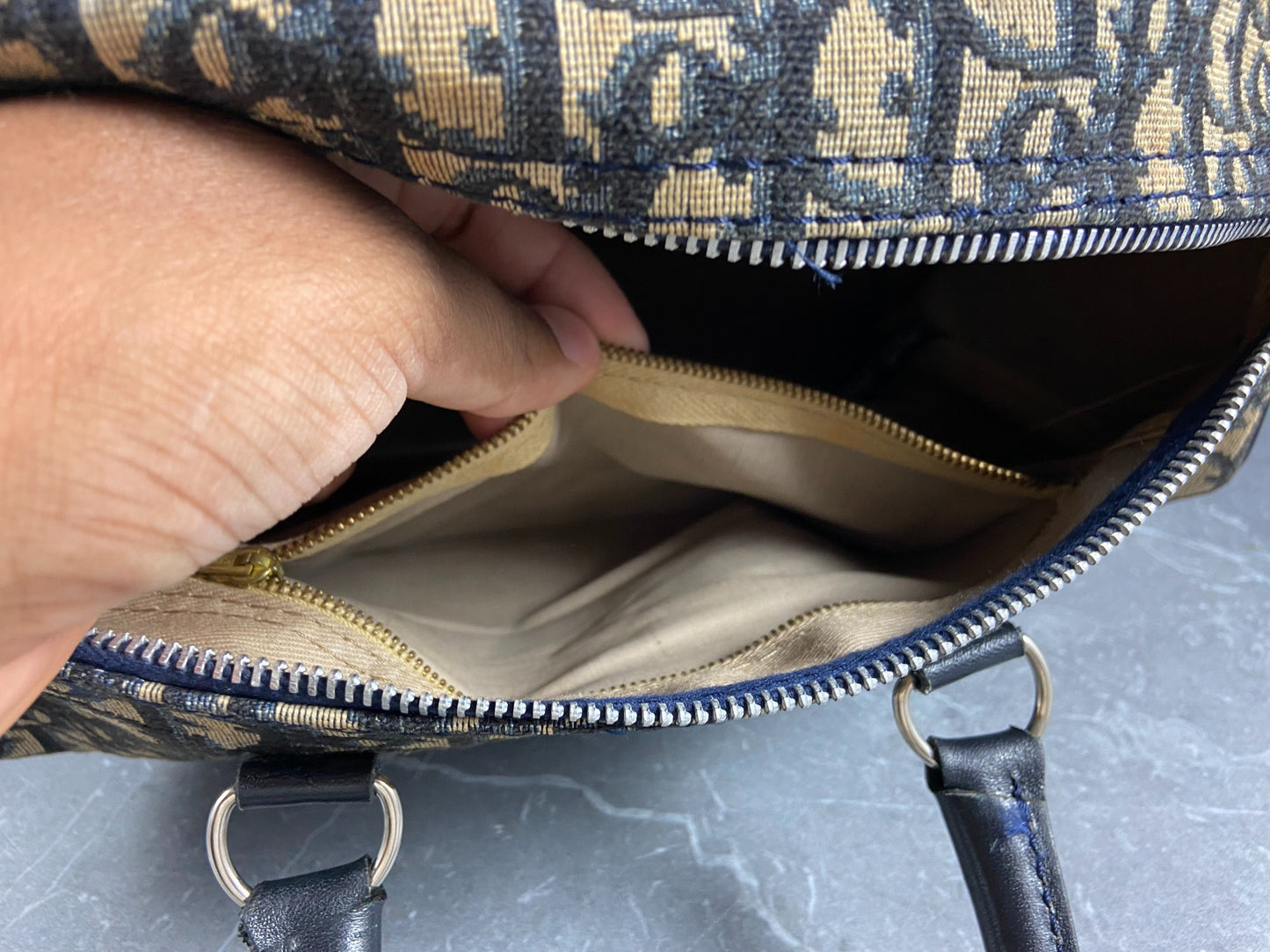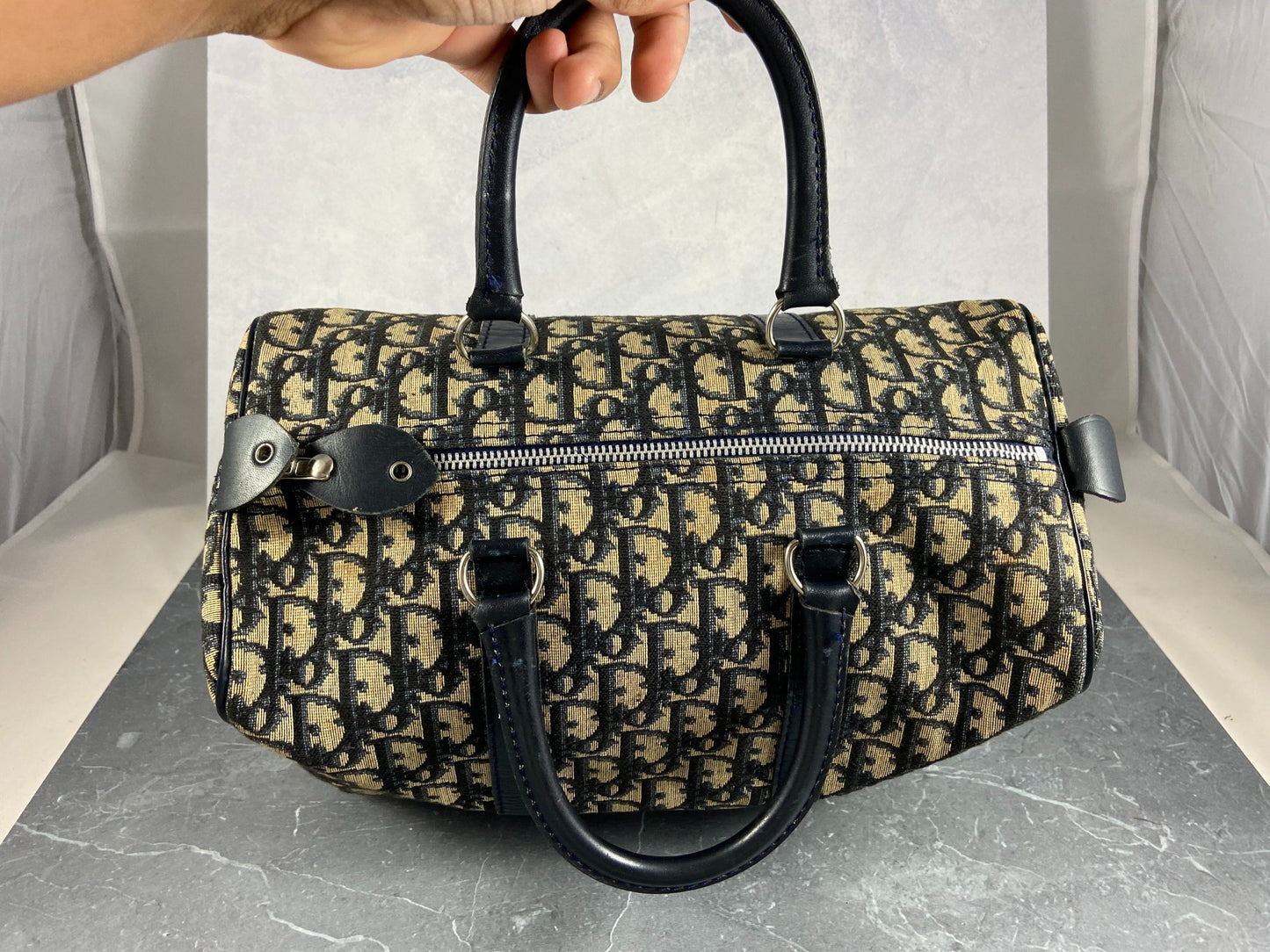 Christian Dior Bowling Bag Blue Trotter Monogram