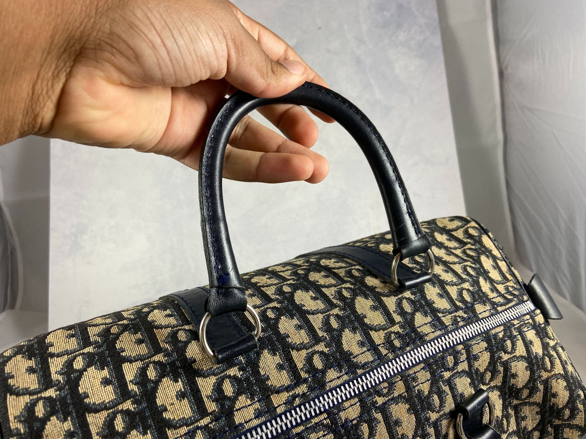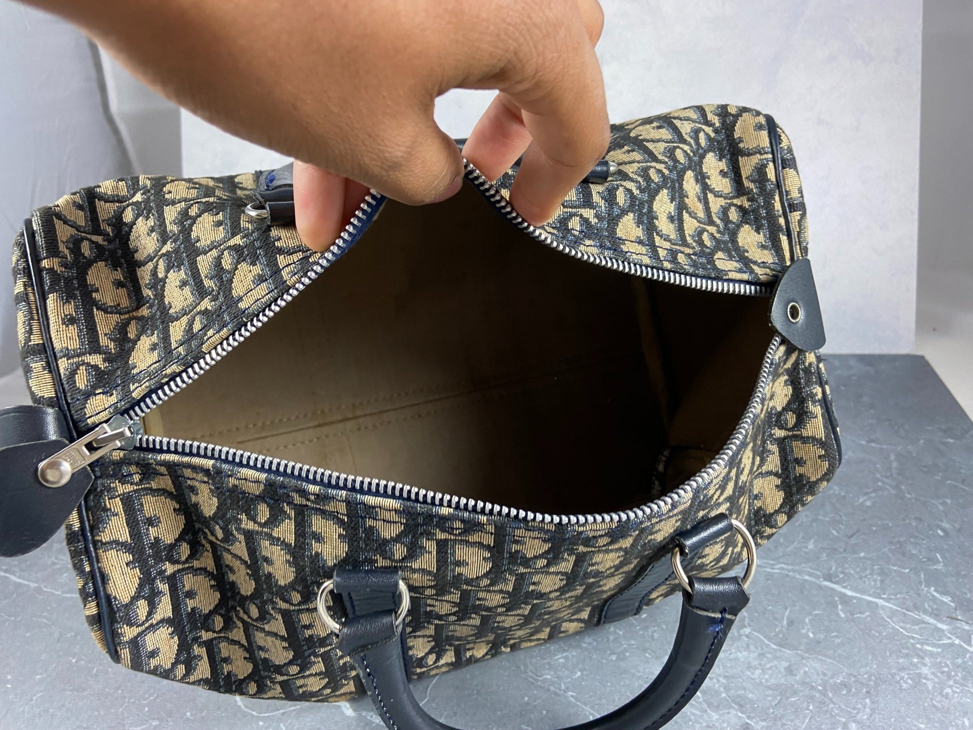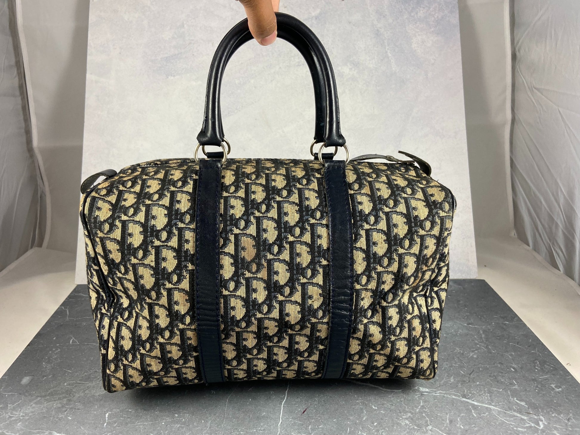 - Christian Dior Bowling Bag in Blue Trotter Monogram