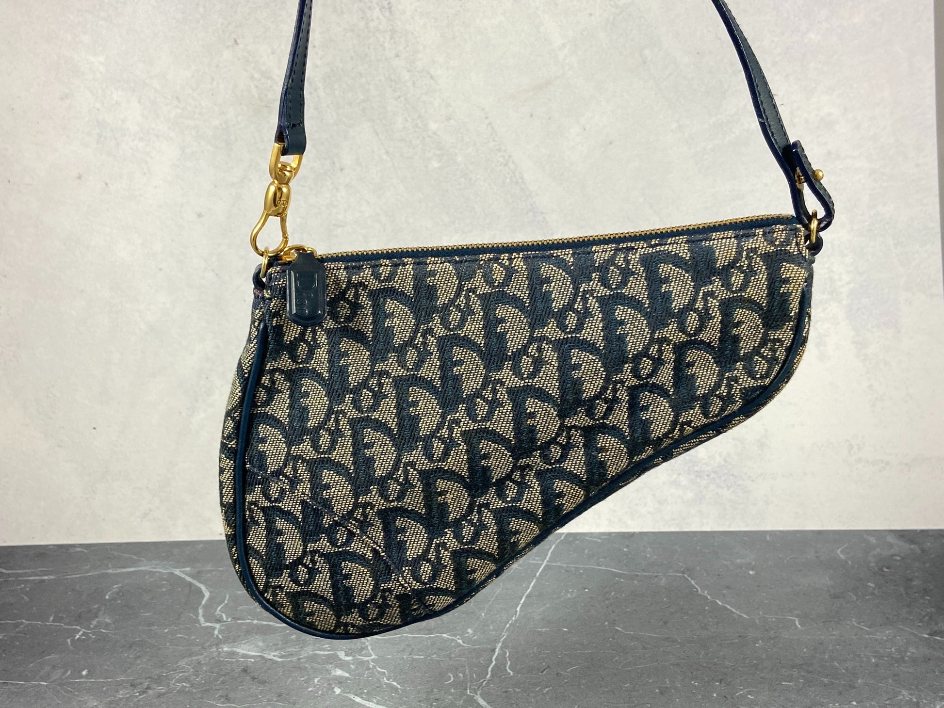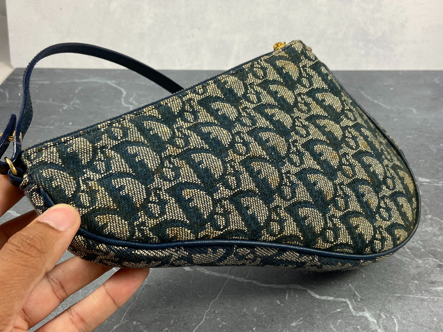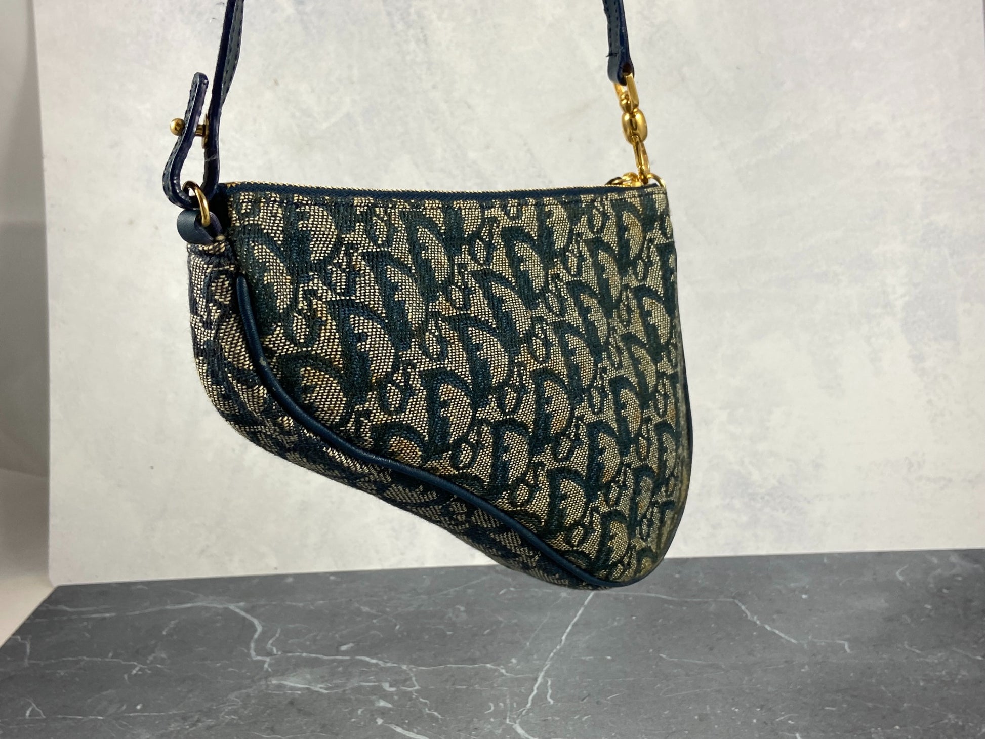 - Christian Dior Saddle Pochette / Mini / Hobo Bag Navy Trotter Monogram