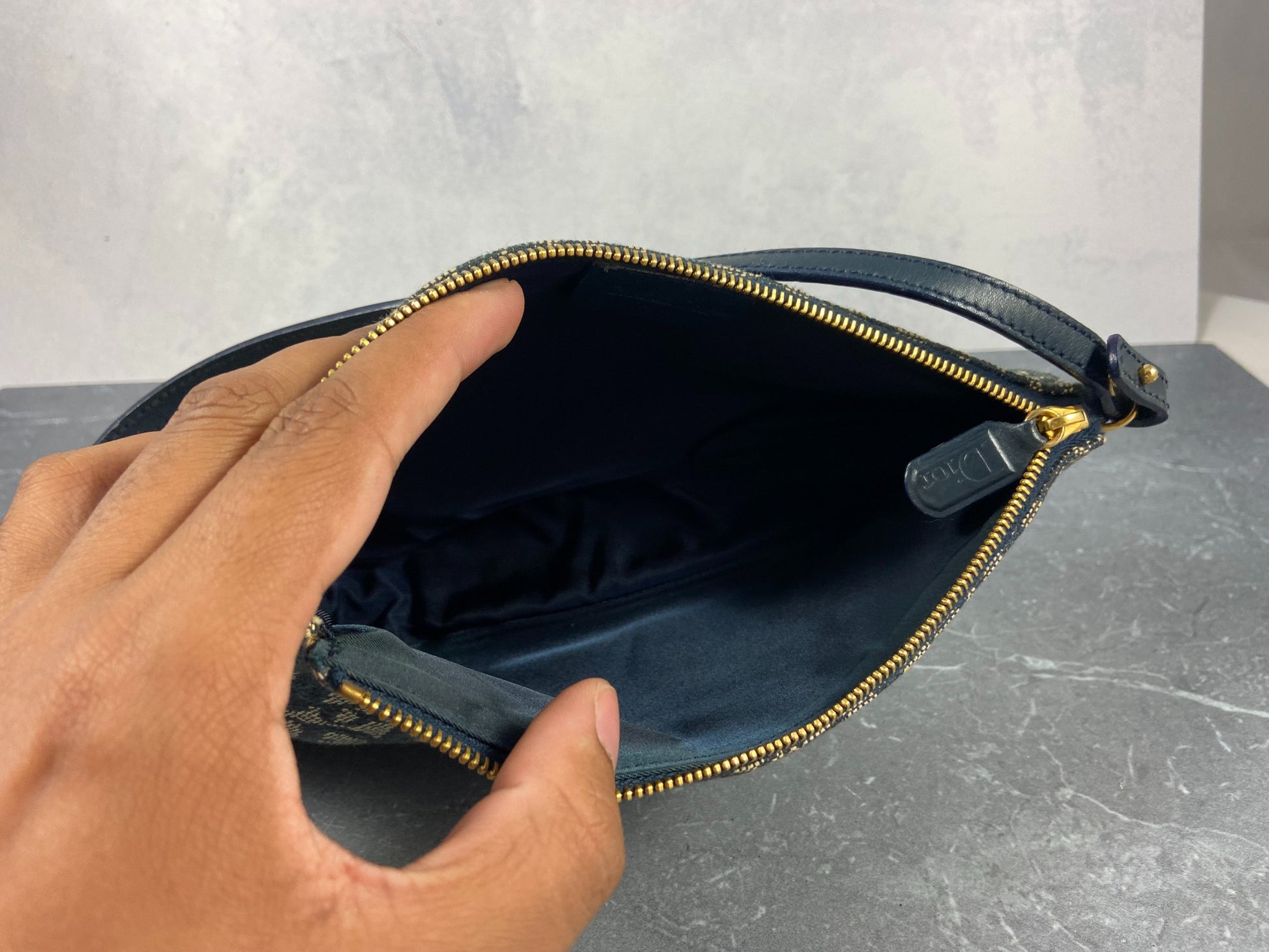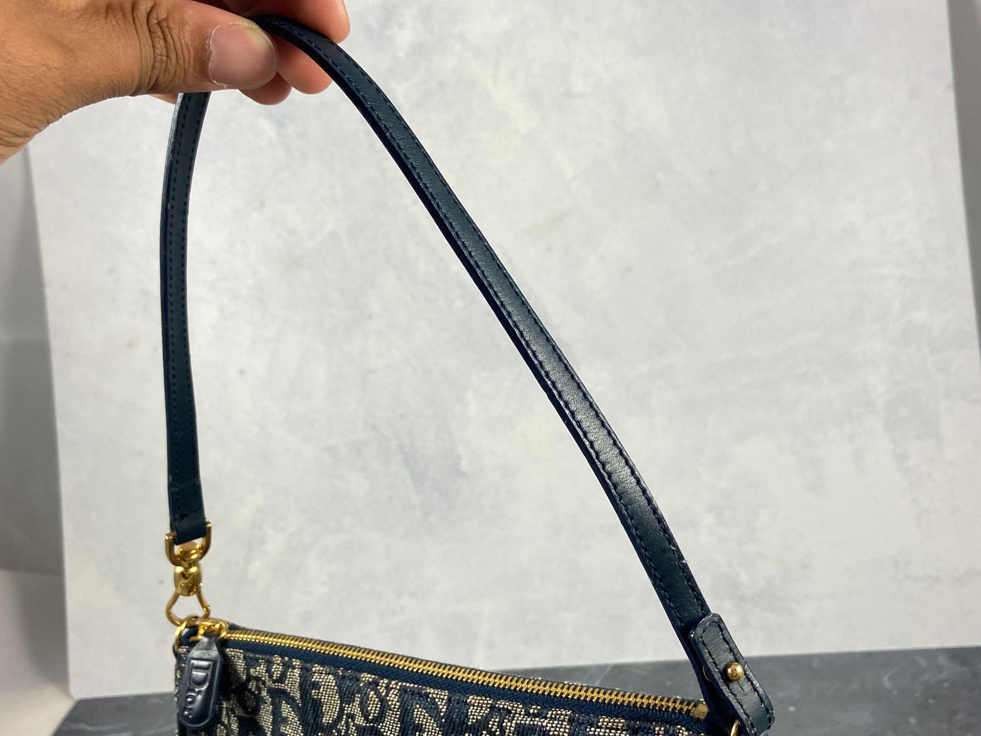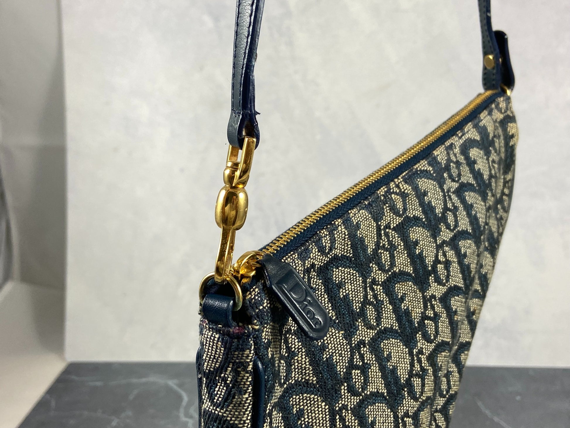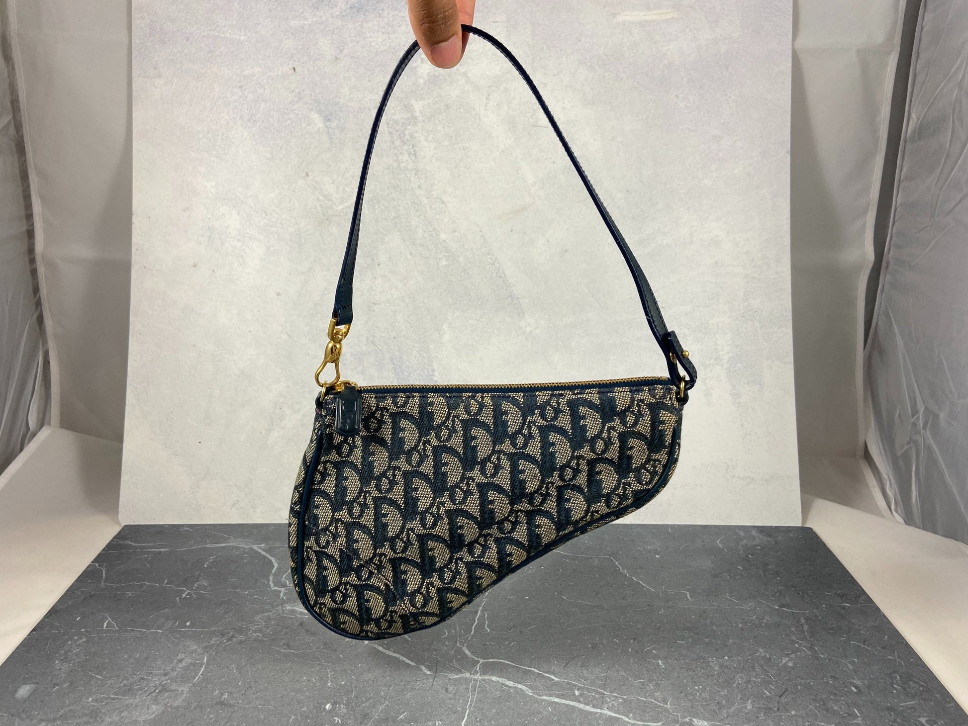 - Christian Dior Saddle Pochette / Mini / Hobo Bag Navy Trotter Monogram