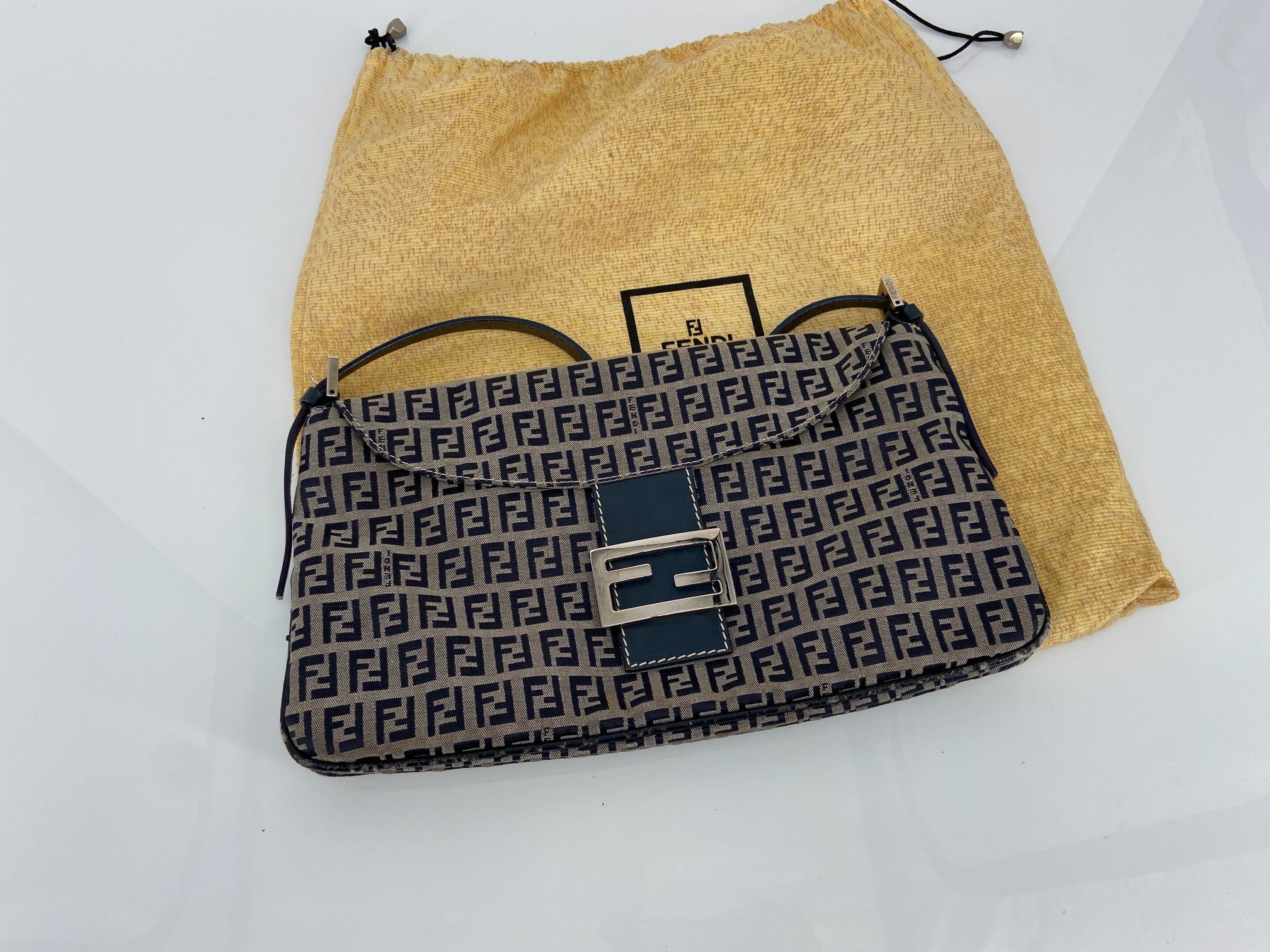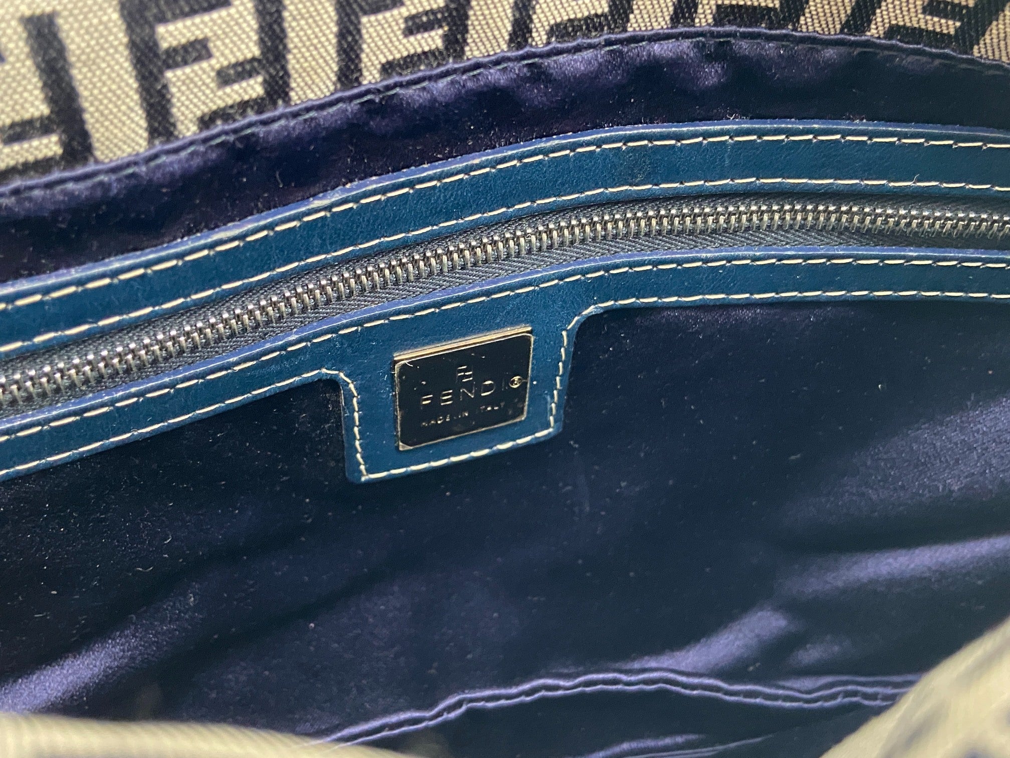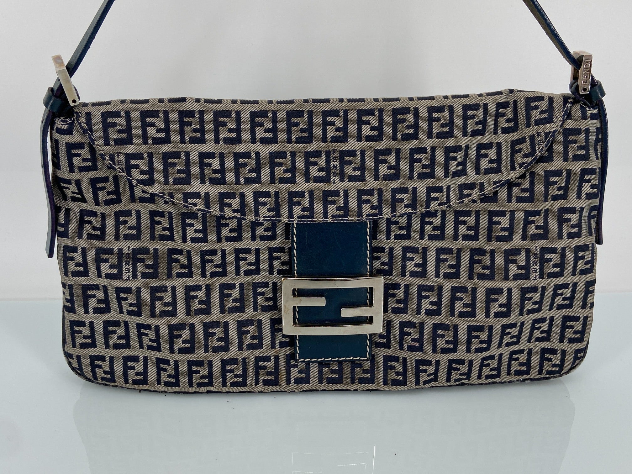 - Fendi Mamma Baguette Bag Blue Zucchino Monogram incl. Dustbag