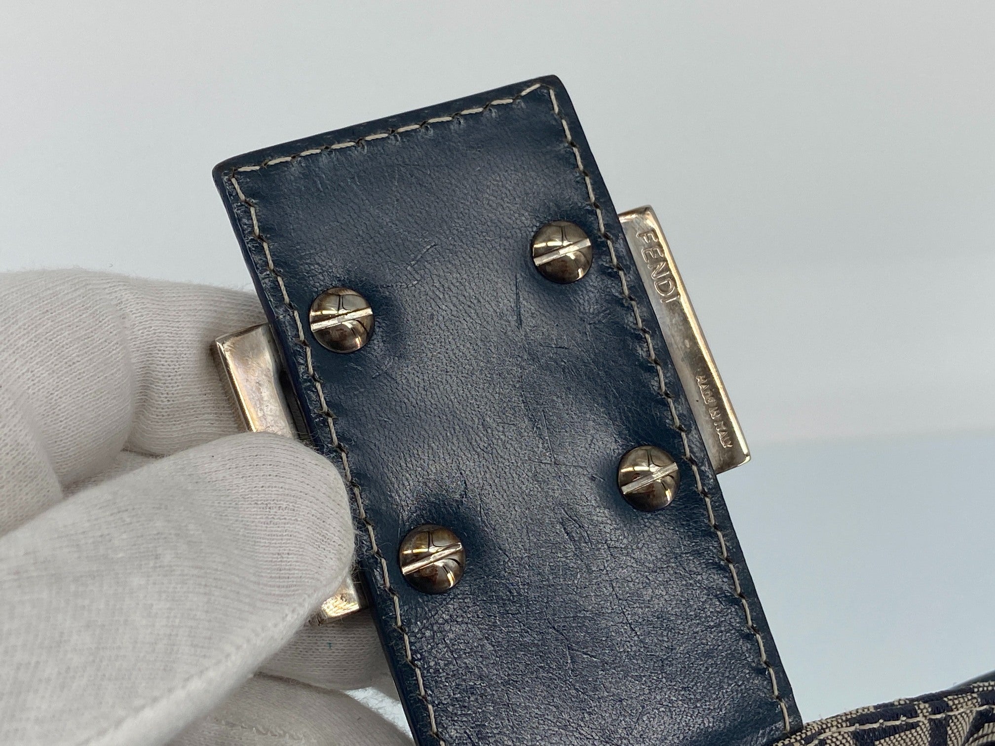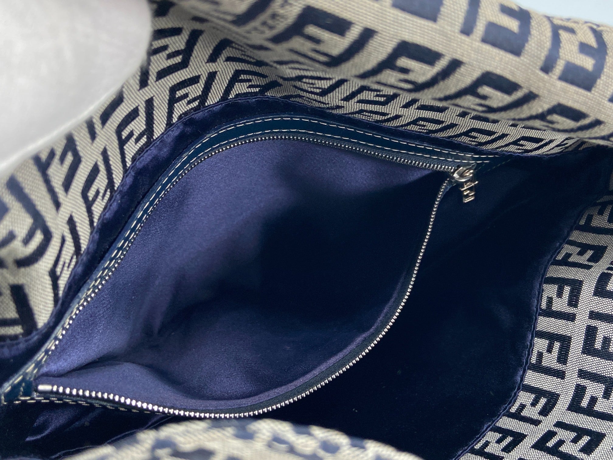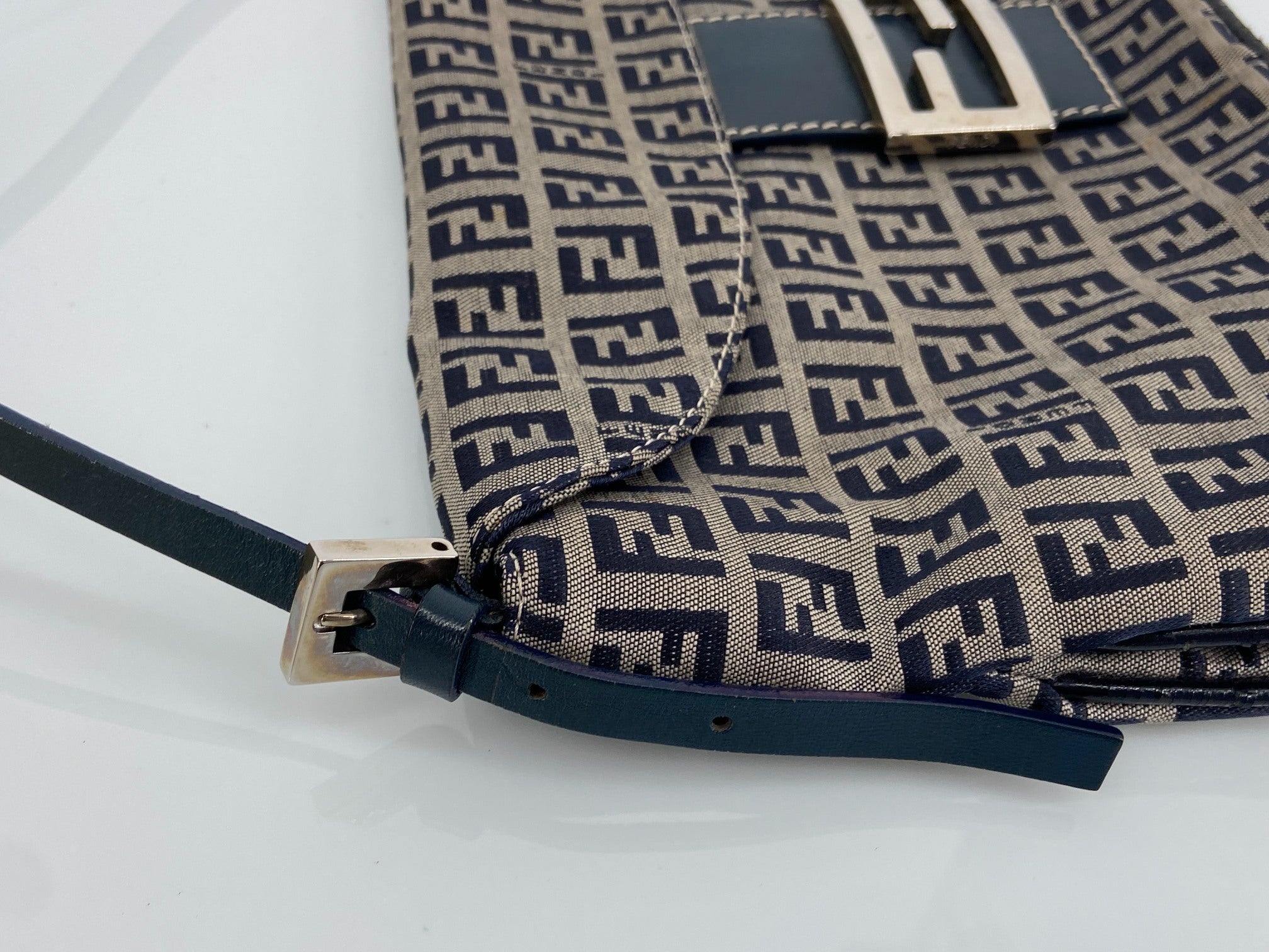 - Fendi Mamma Baguette Bag Blue Zucchino Monogram incl. Dustbag