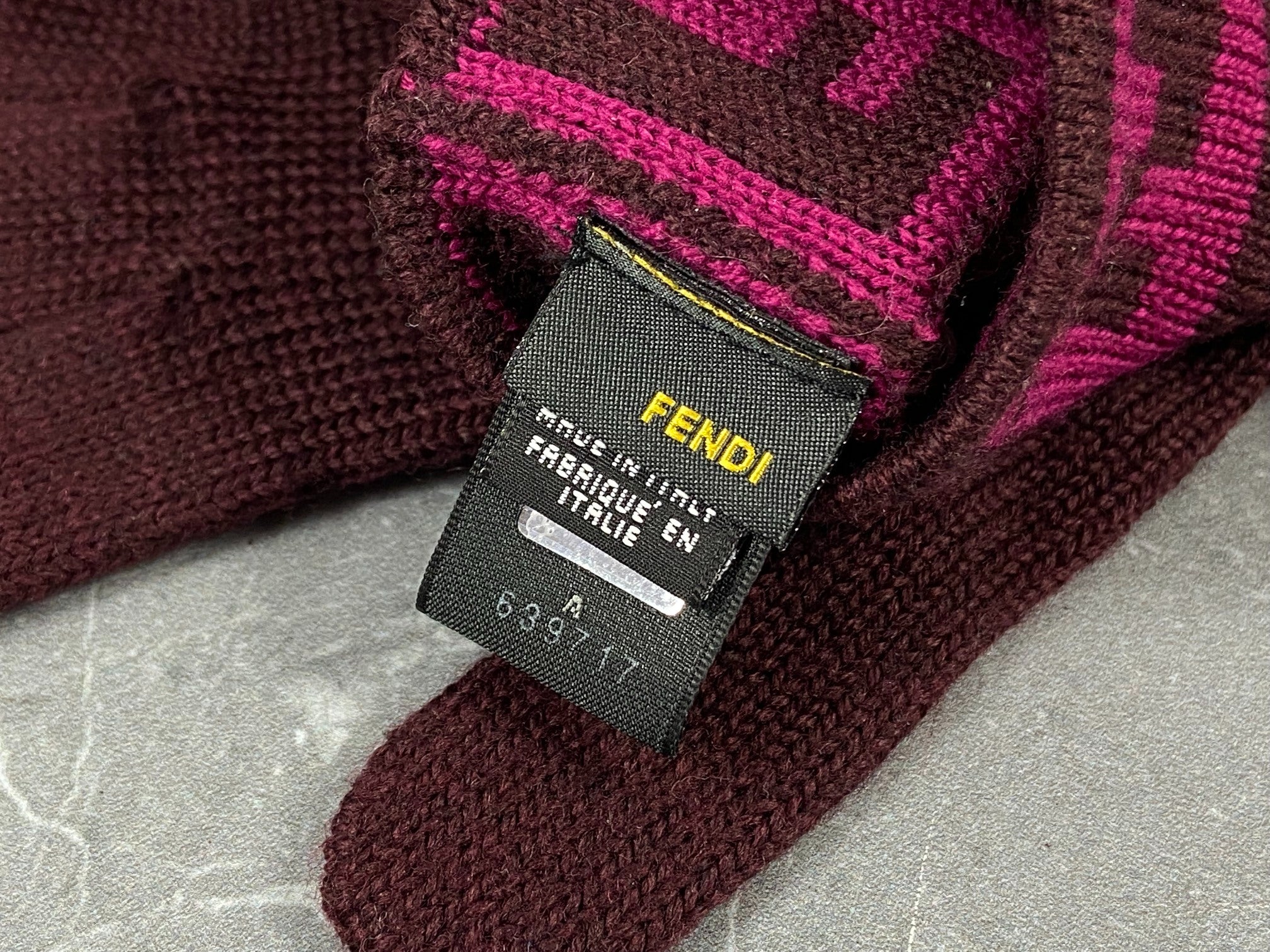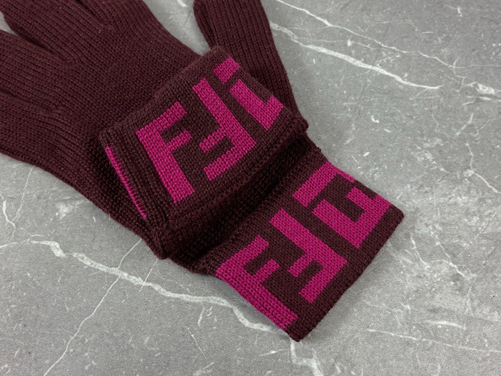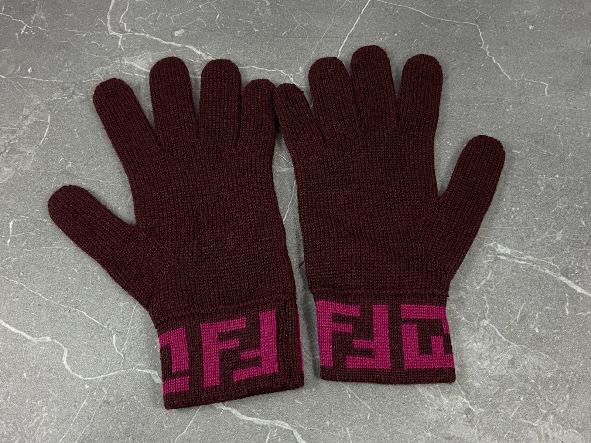 - Fendi Zucca Wool Gloves Dark Red / Pink