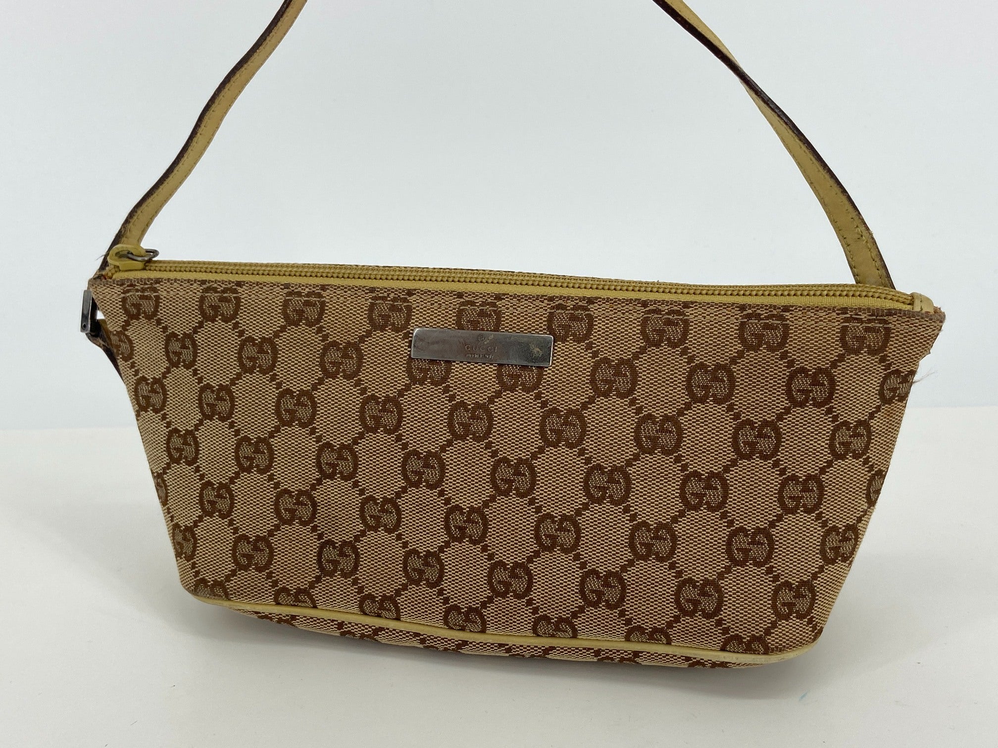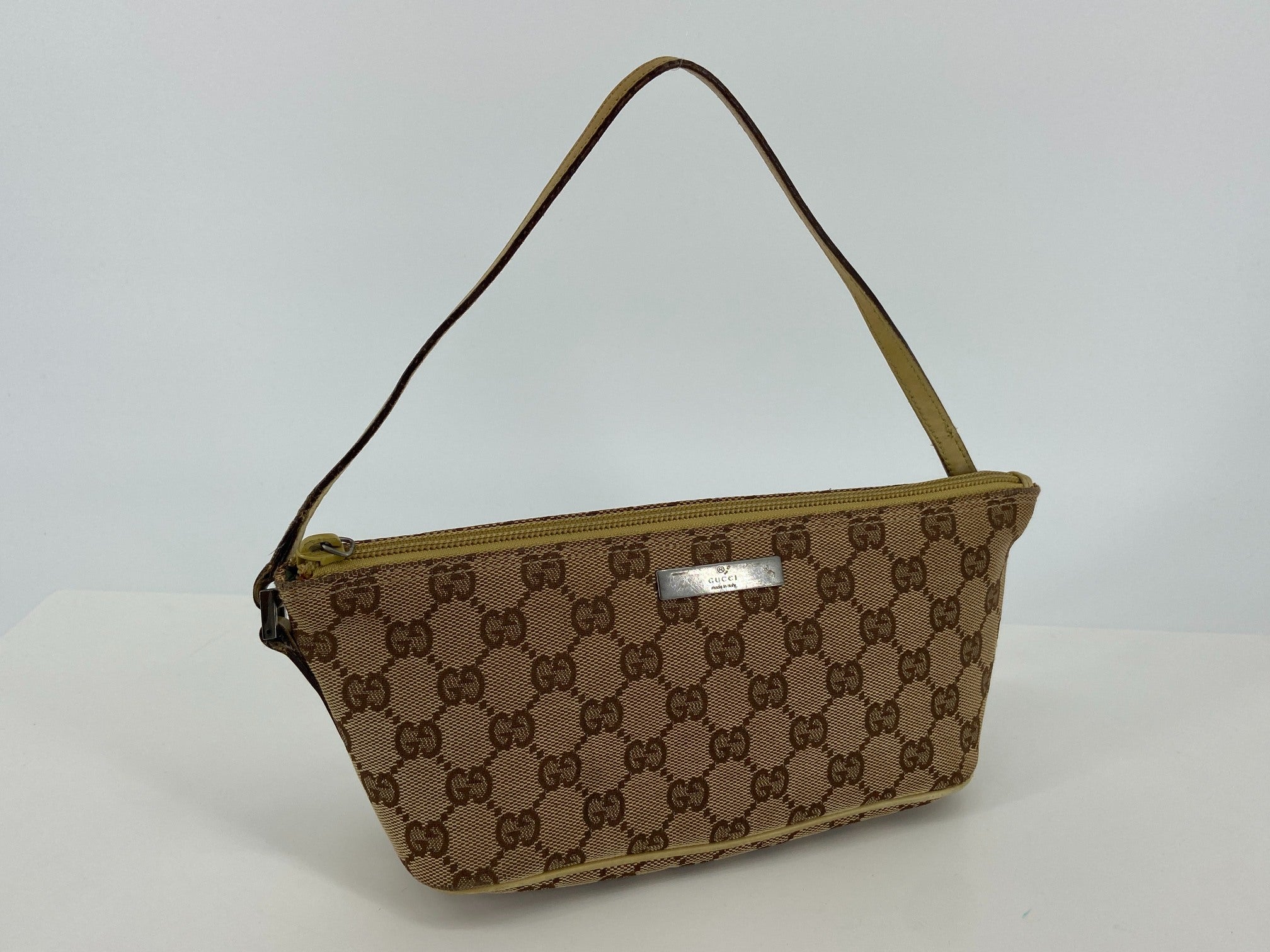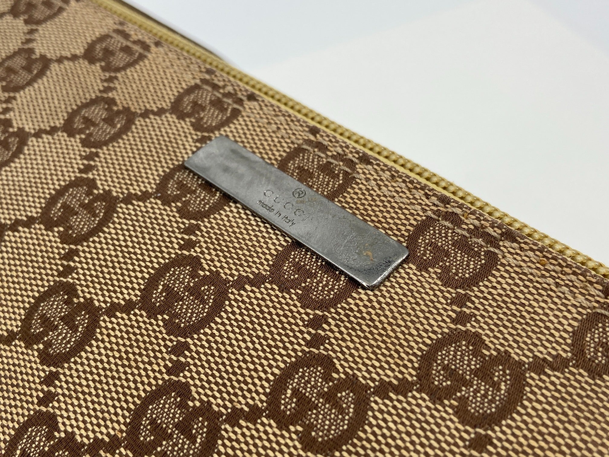 - Vintage Gucci Banana Boat Accessory Pouch in Beige GG Monogram
