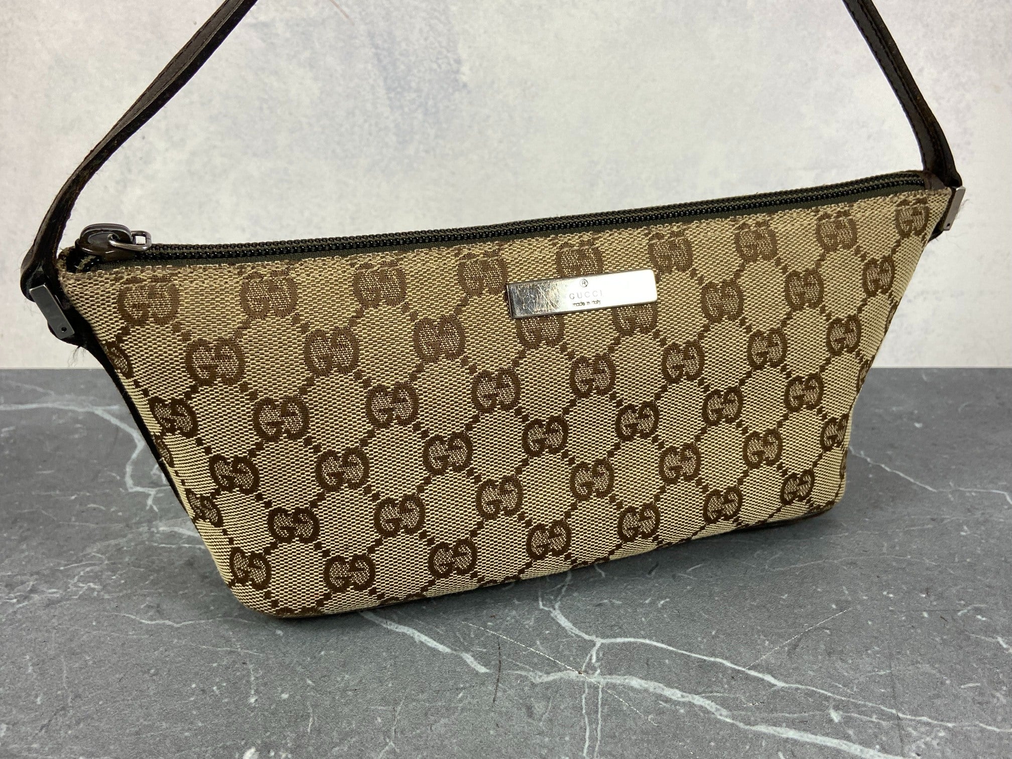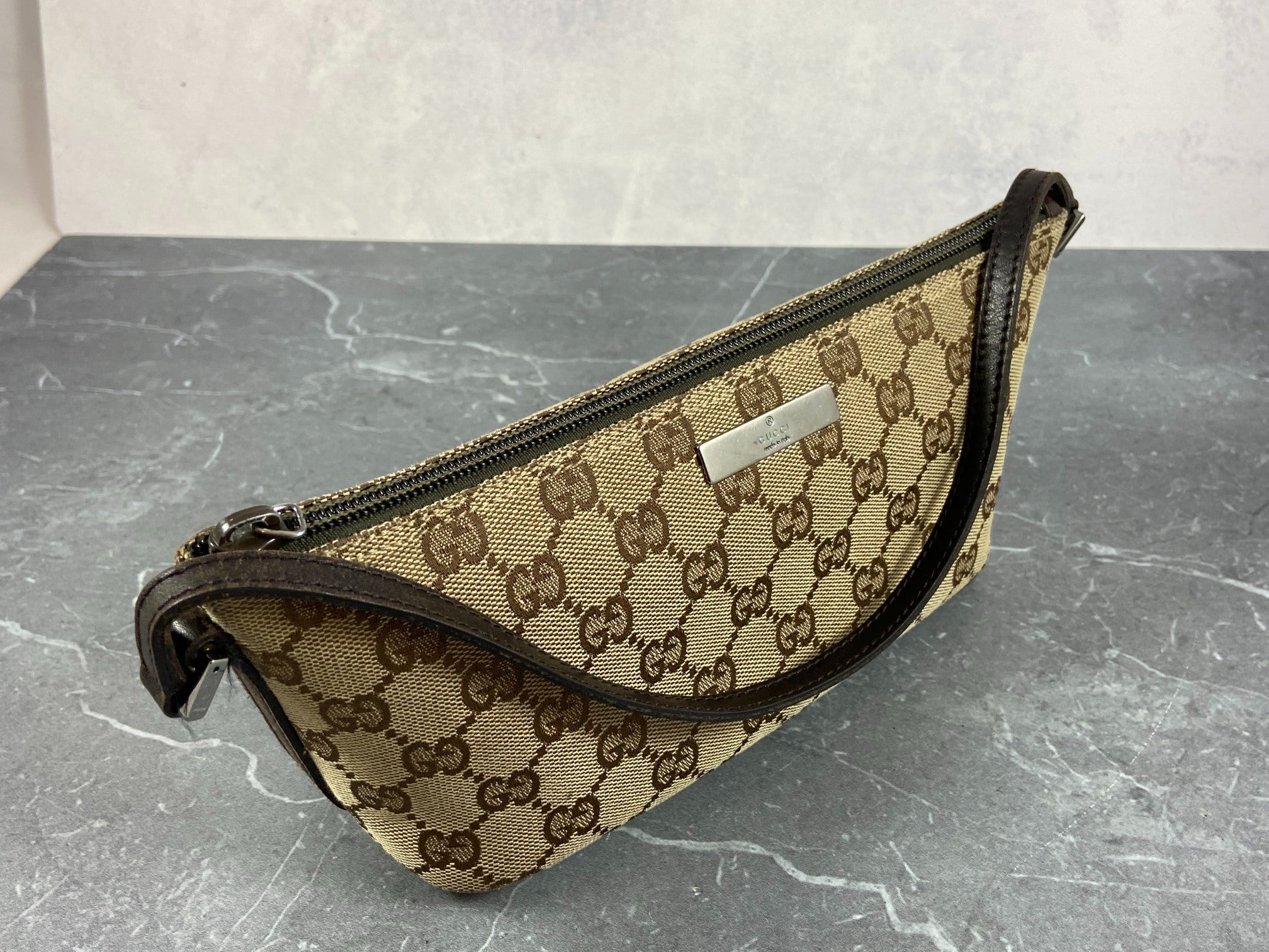 - Vintage Gucci Banana Boat Accessory Pouch in Beige GG Monogram