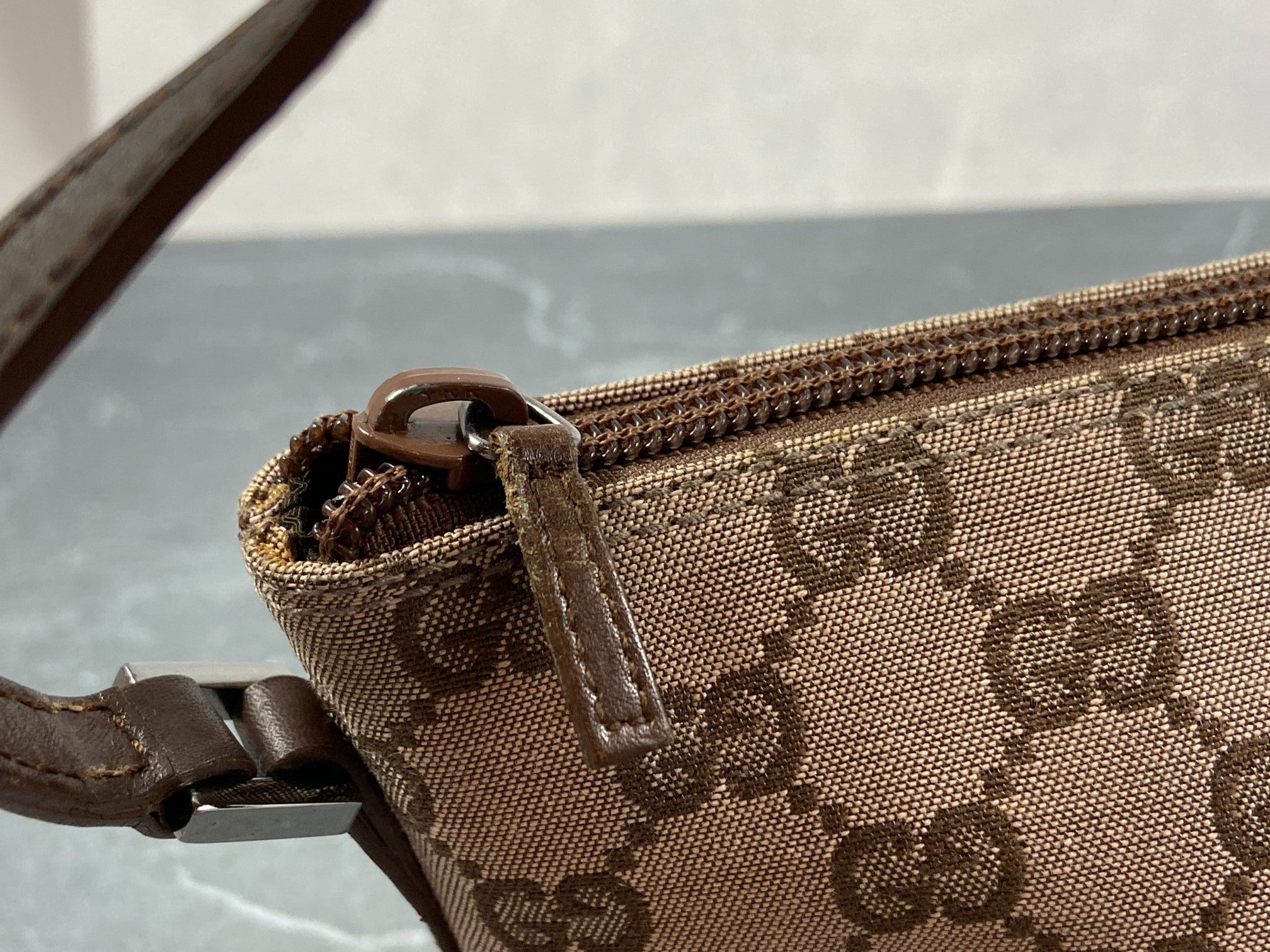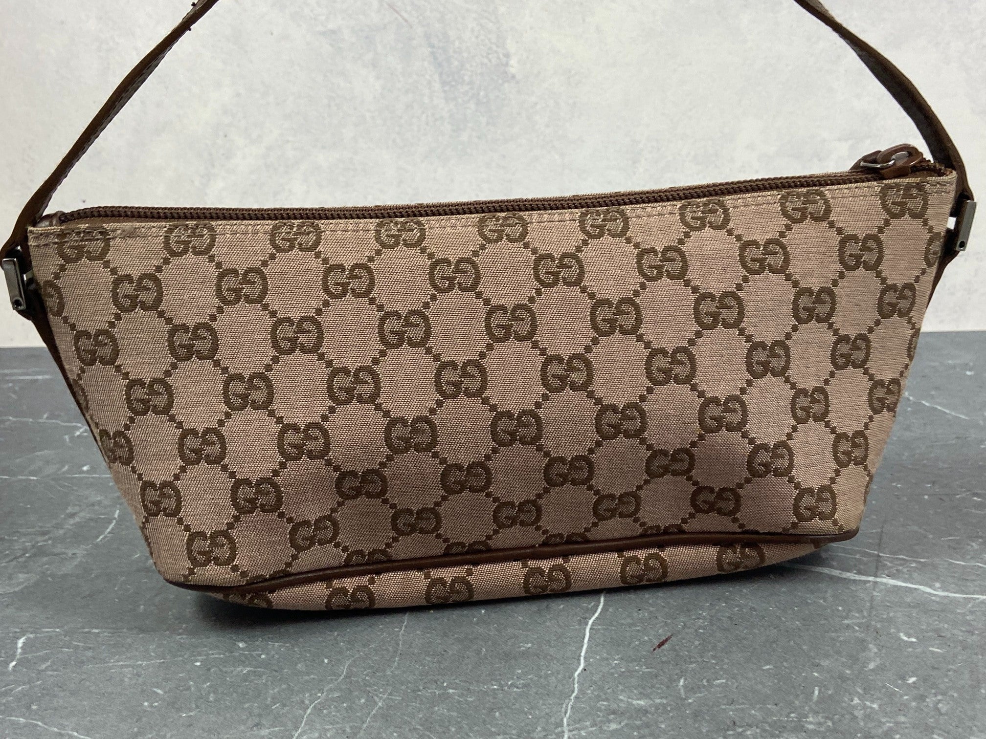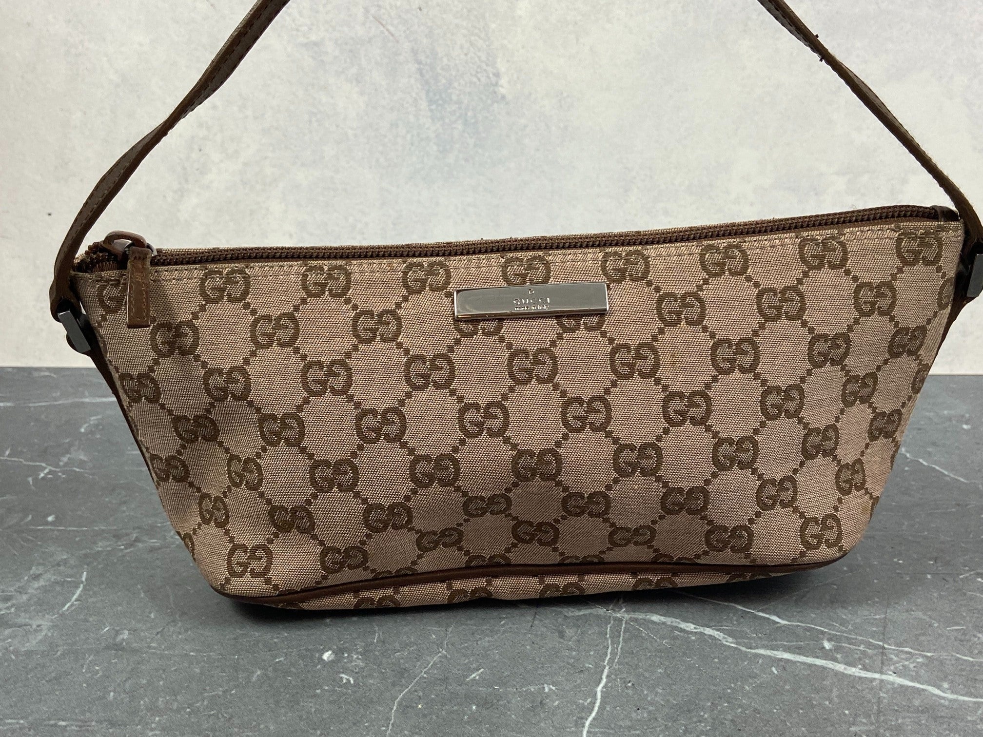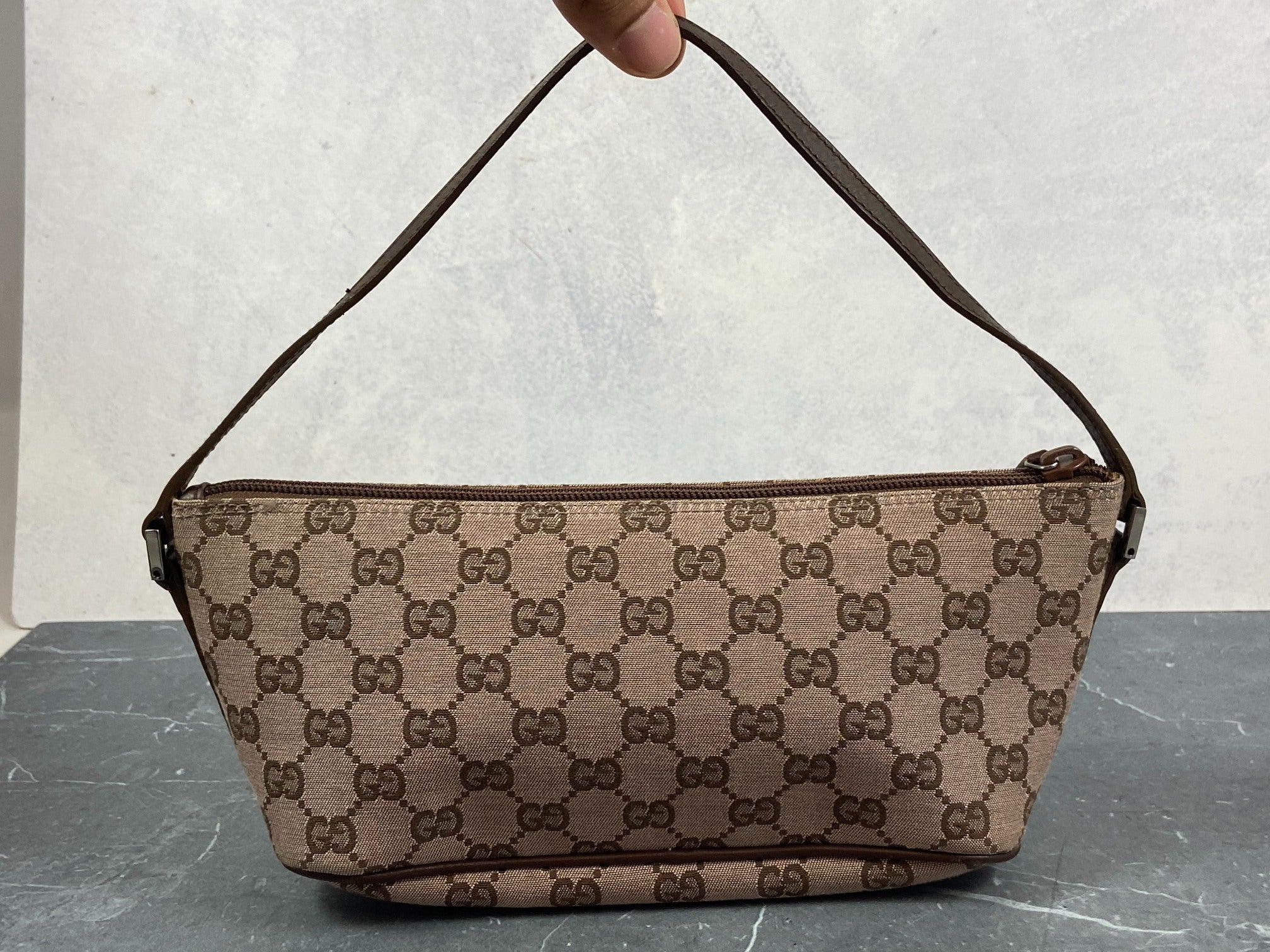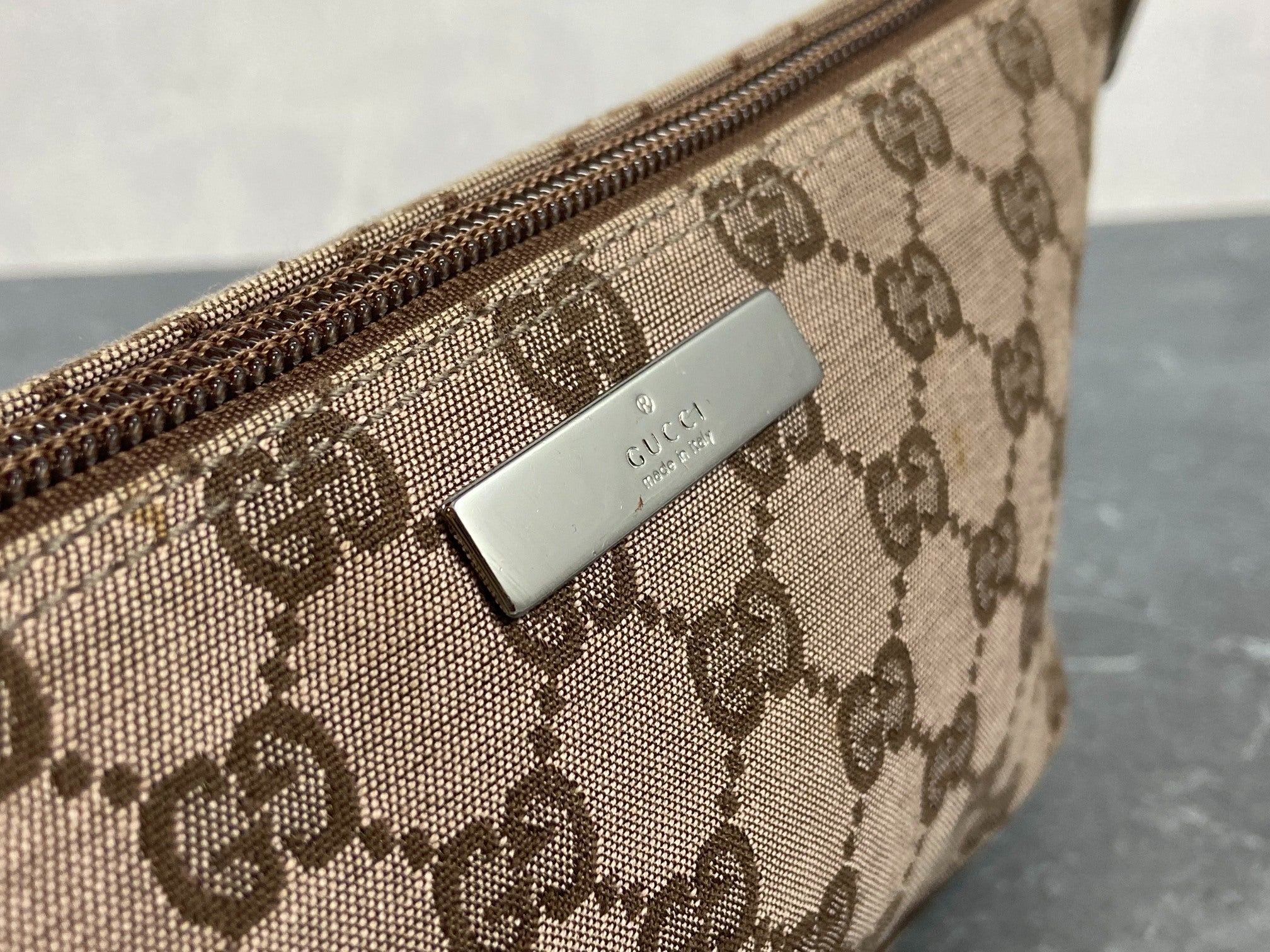 - Vintage Gucci Banana Boat Accessory Pouch in Beige GG Monogram