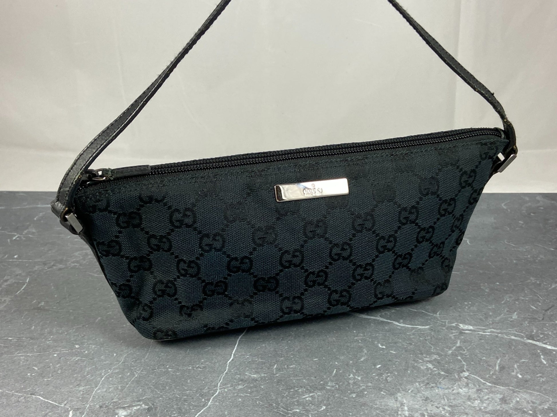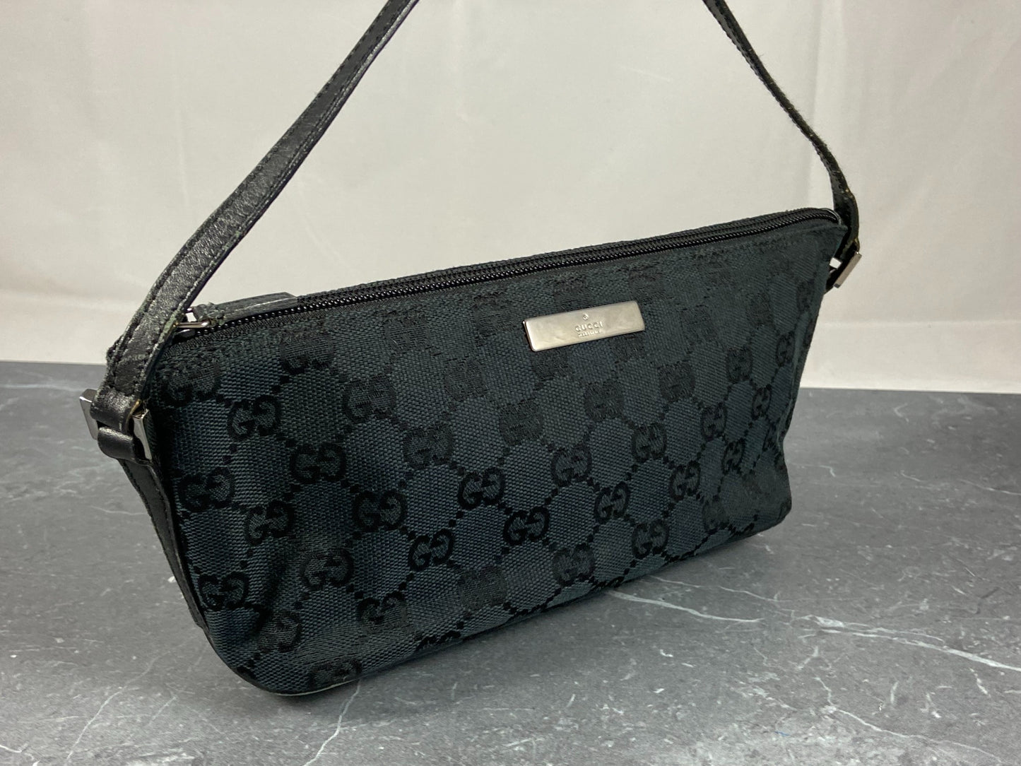 - Vintage Gucci Banana Boat Accessory Pouch in Black GG Monogram