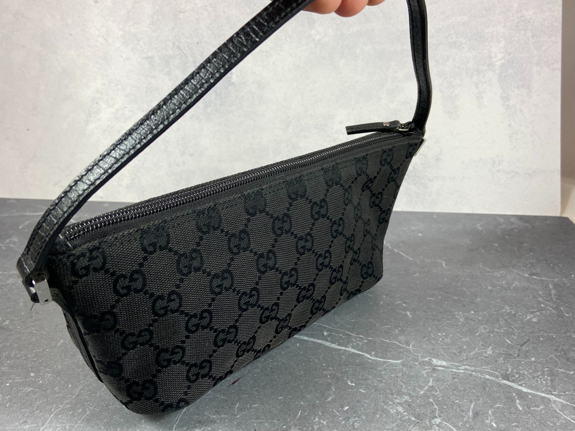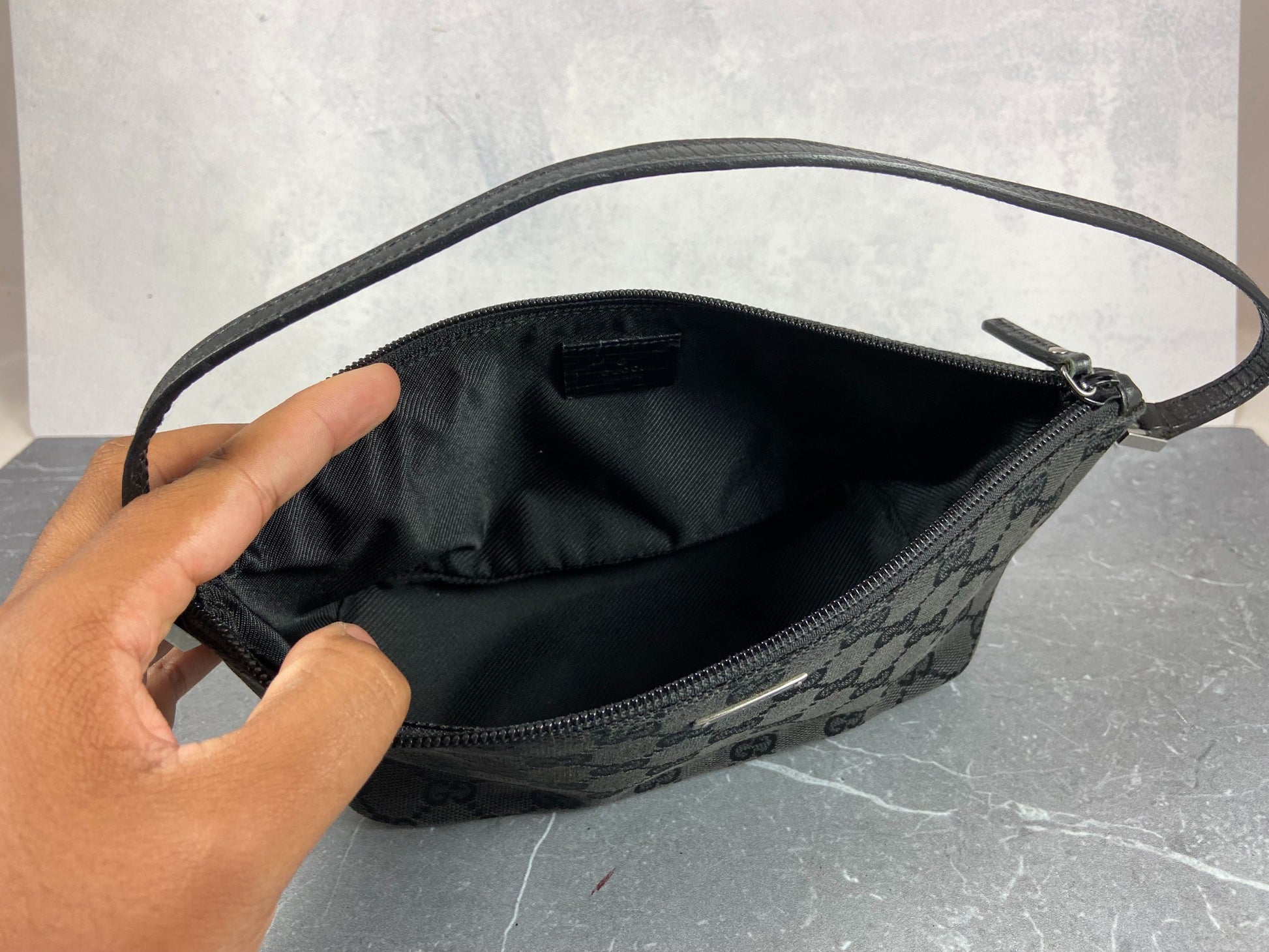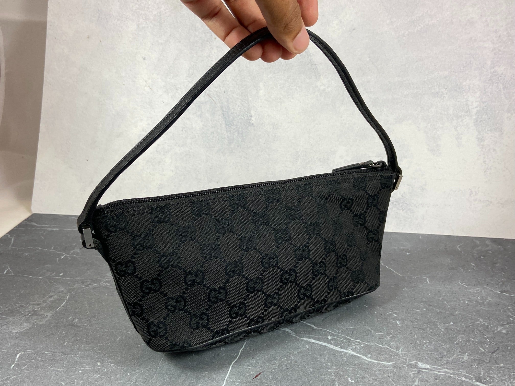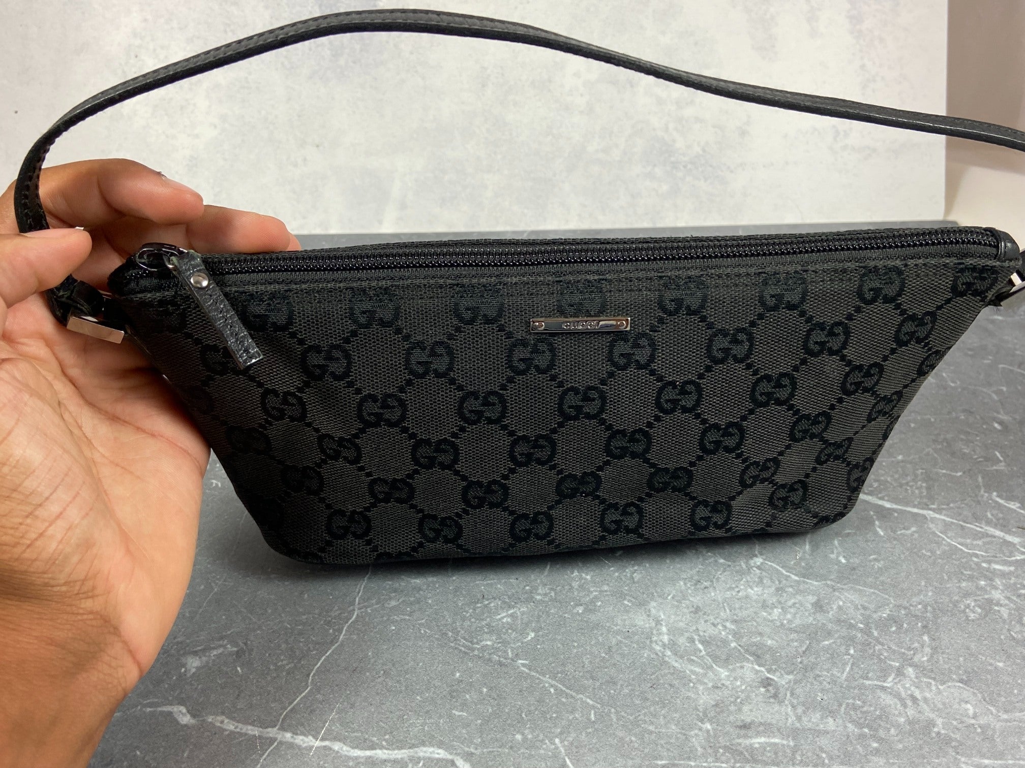 - Vintage Gucci Banana Boat Accessory Pouch in Black GG Monogram