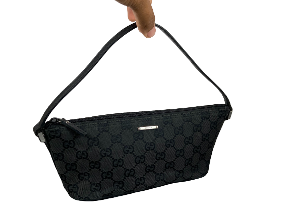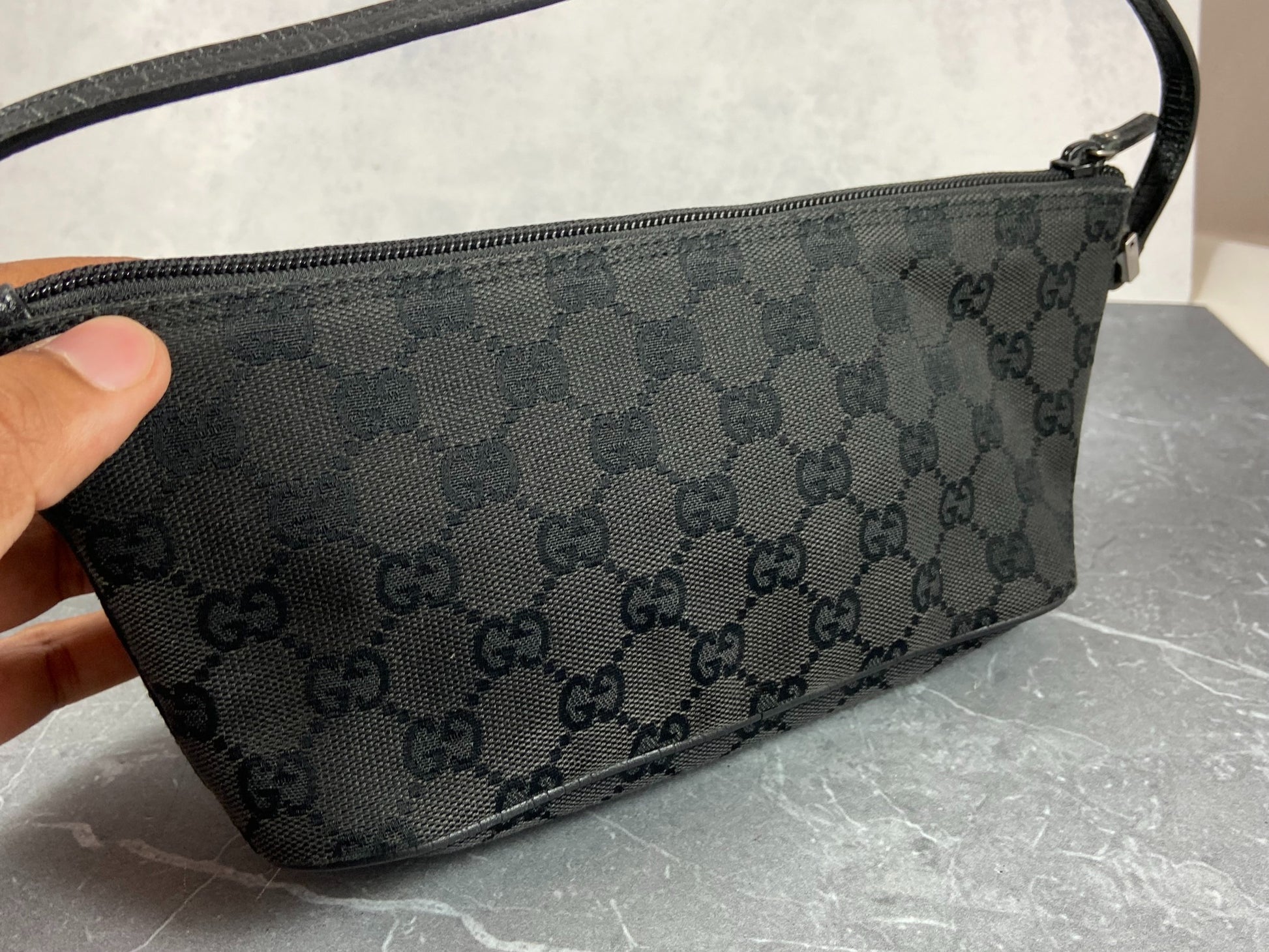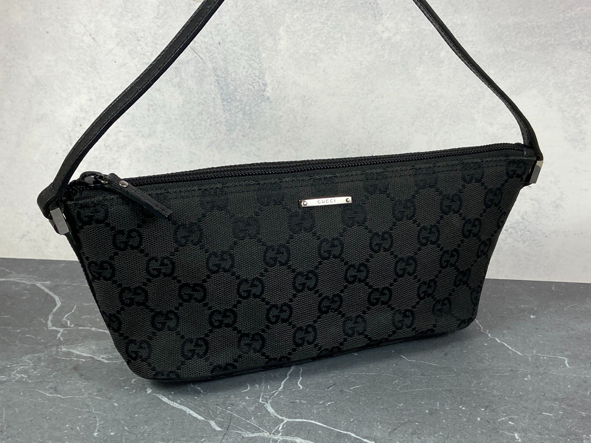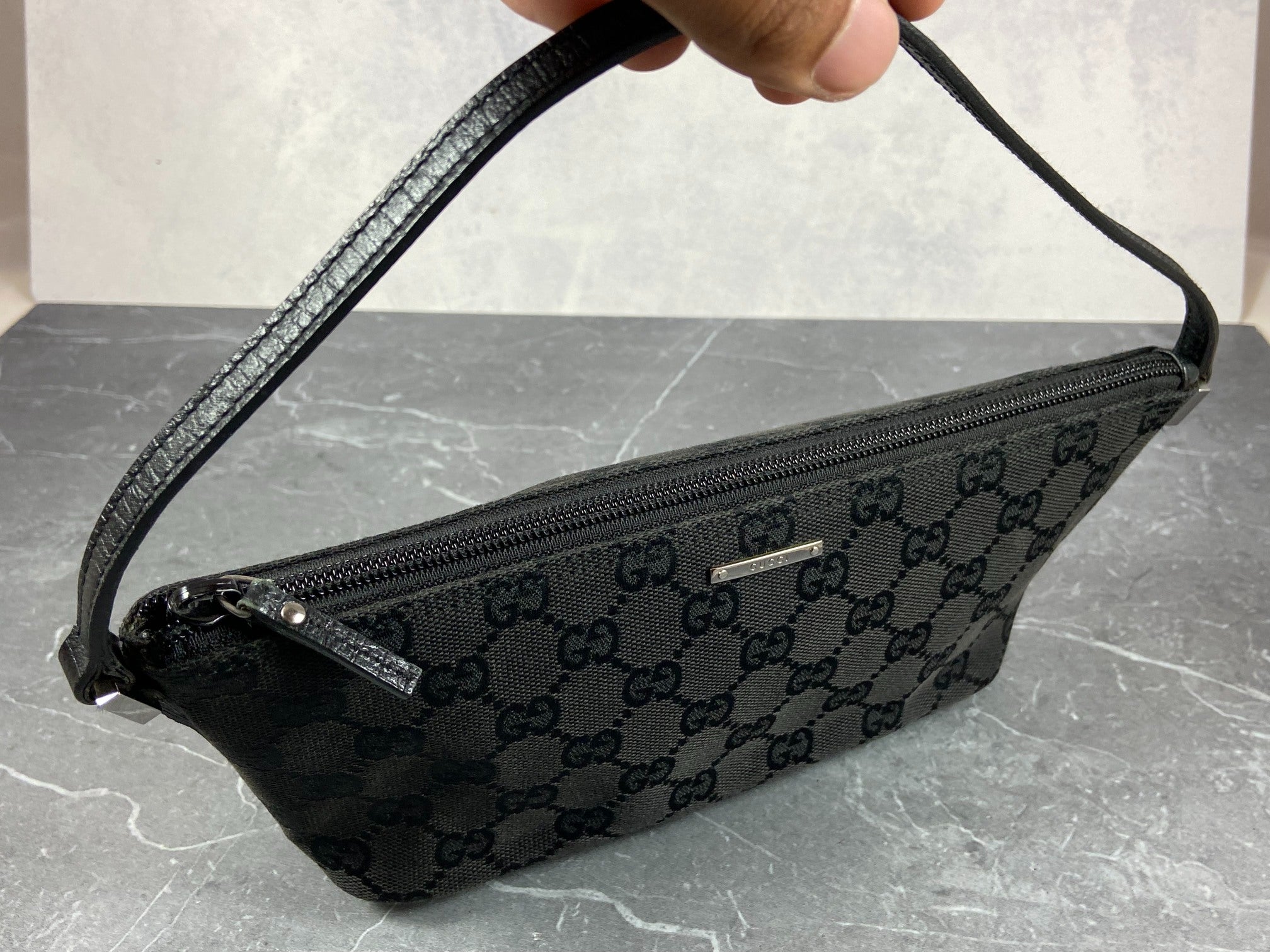 - Vintage Gucci Banana Boat Accessory Pouch in Black GG Monogram