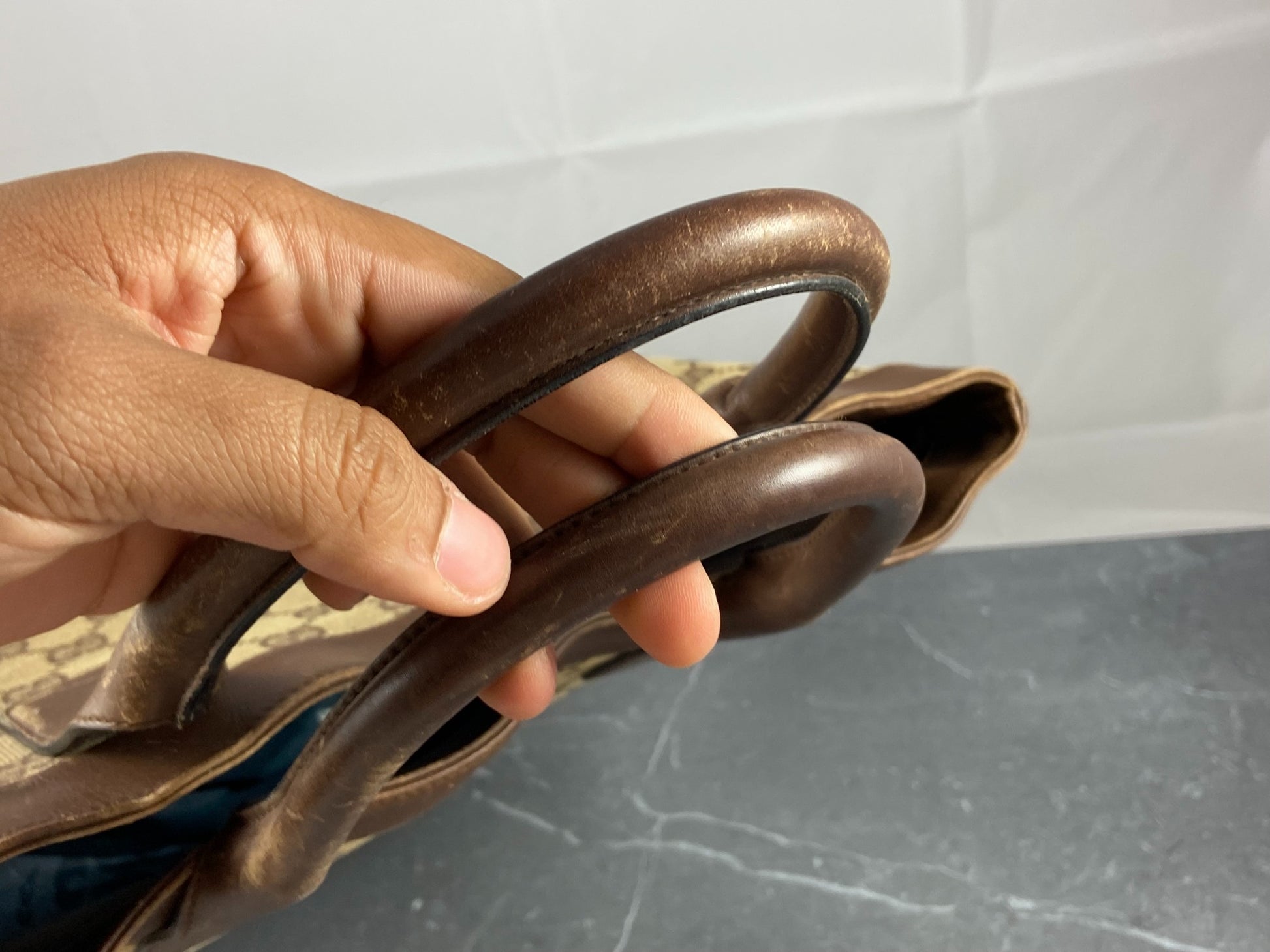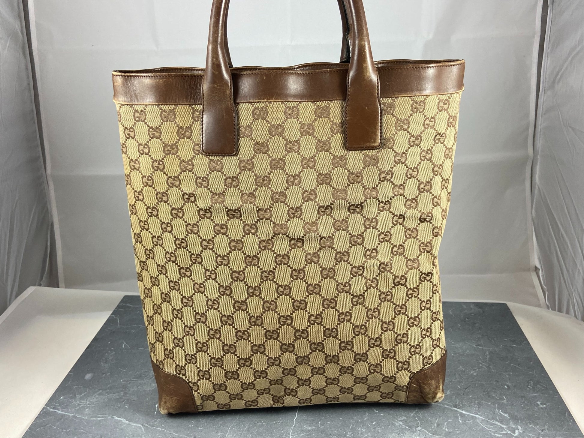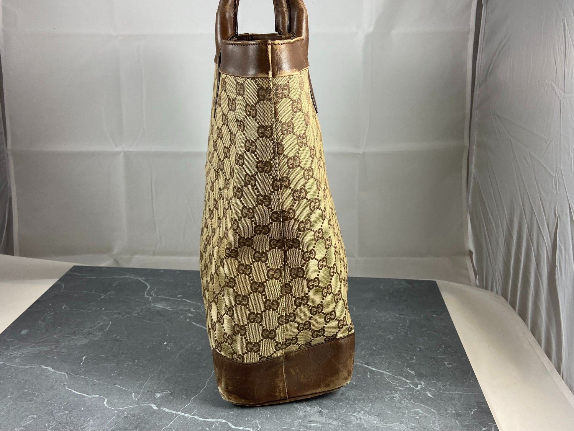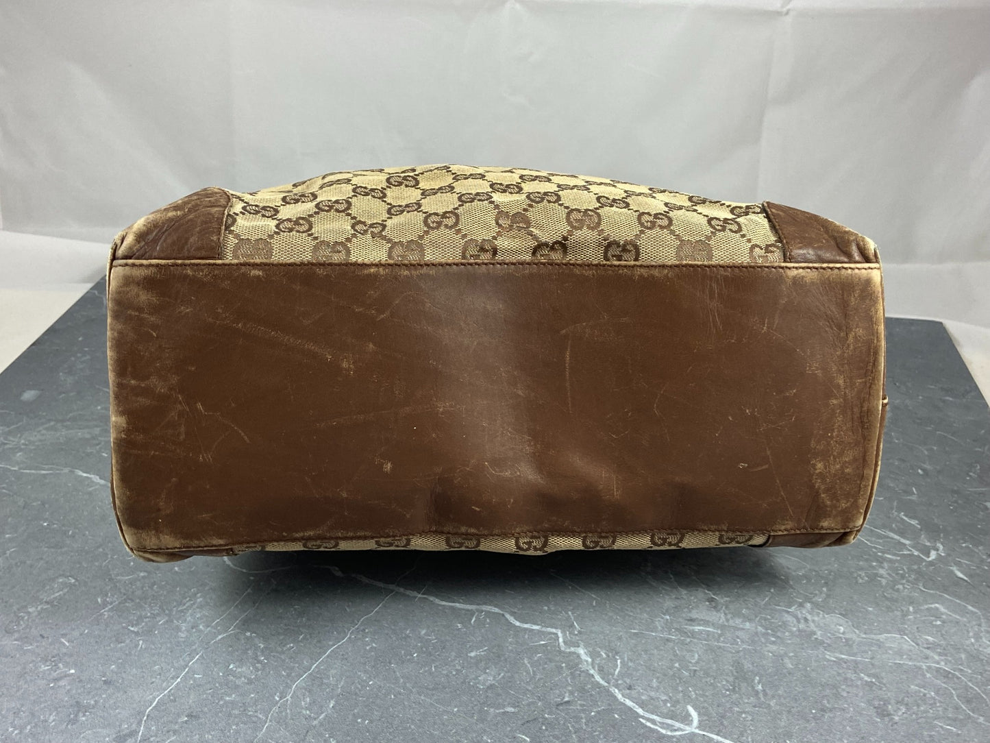 Gucci Hand / Tote Bag Beige GG Monogram + Brown Leather