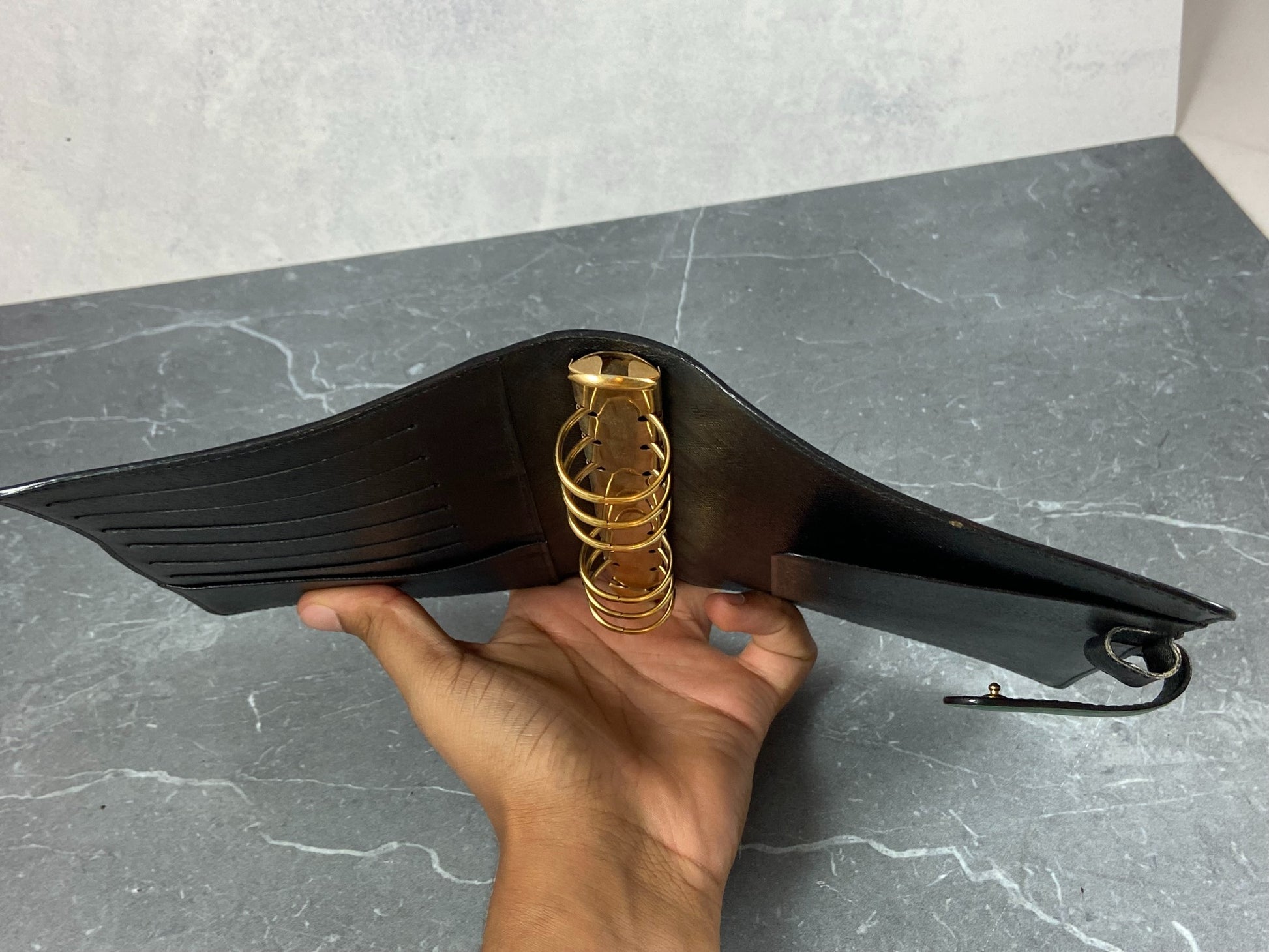 - has card slots, space for a calendar, address book or notebook, pencil holder & compartments which could be used for bills & notes