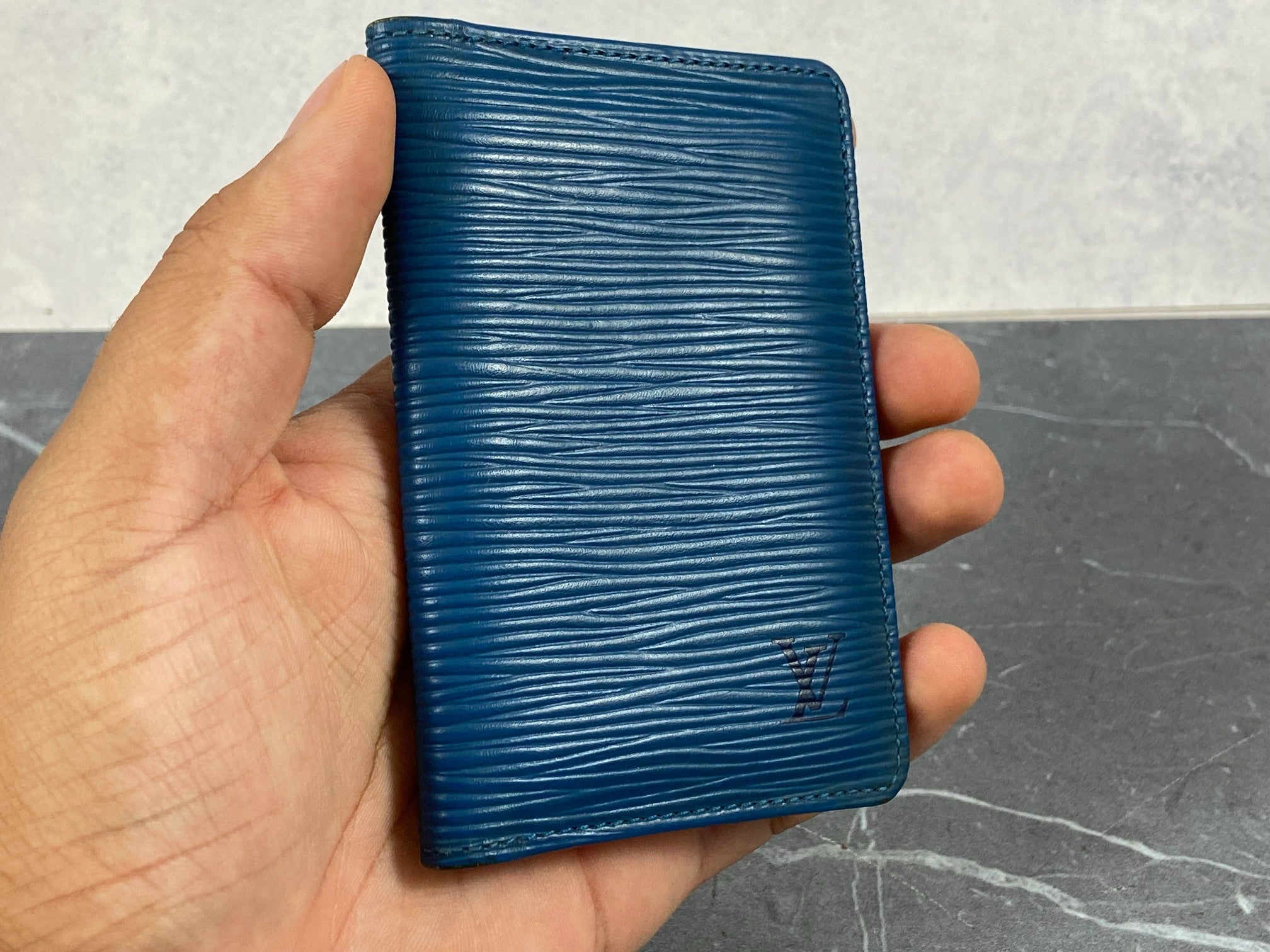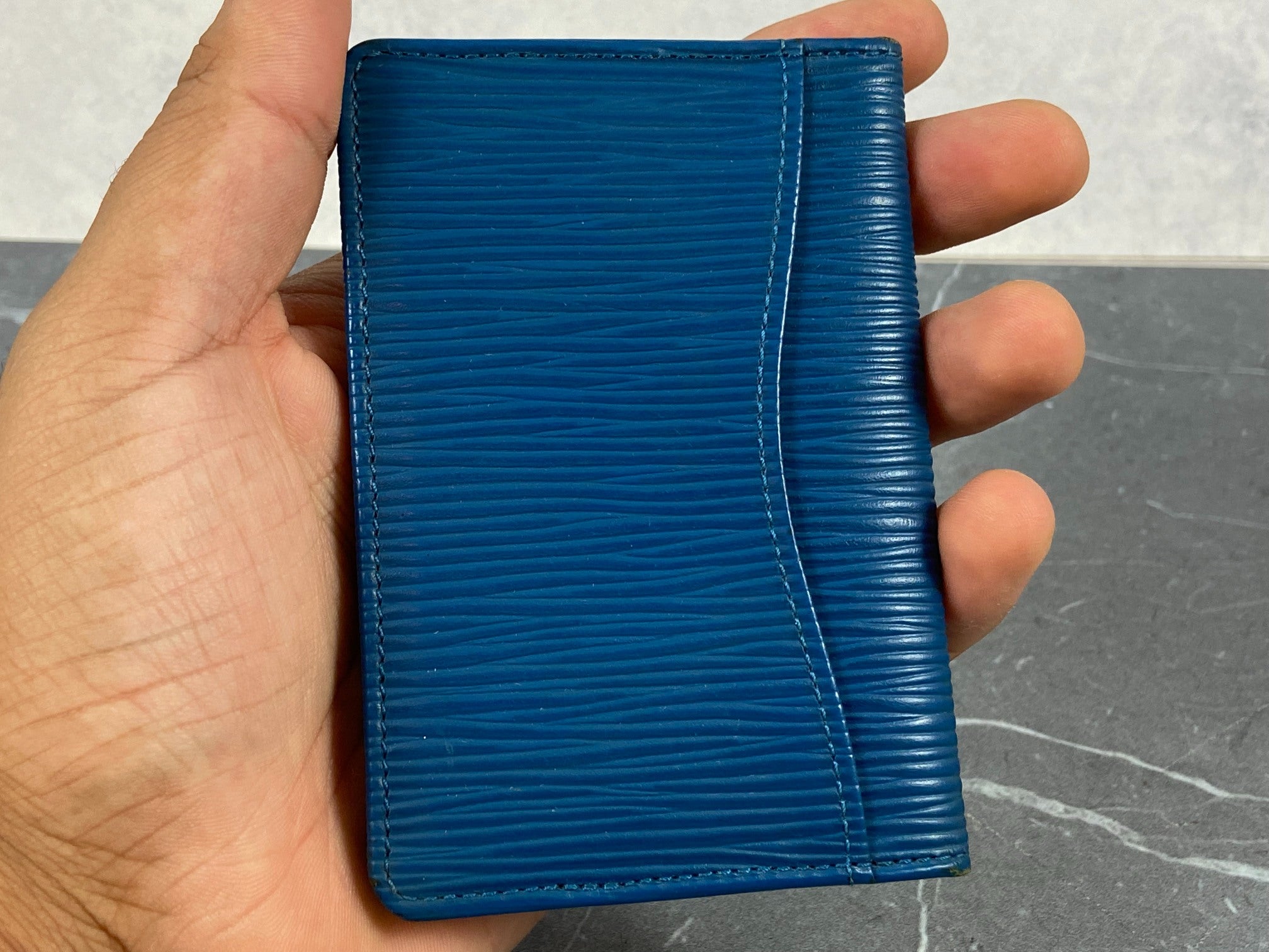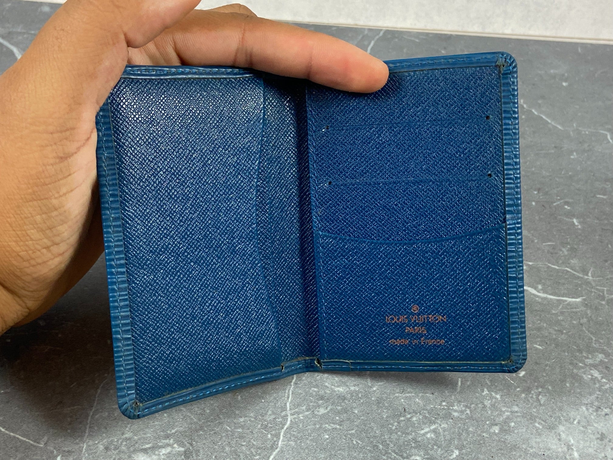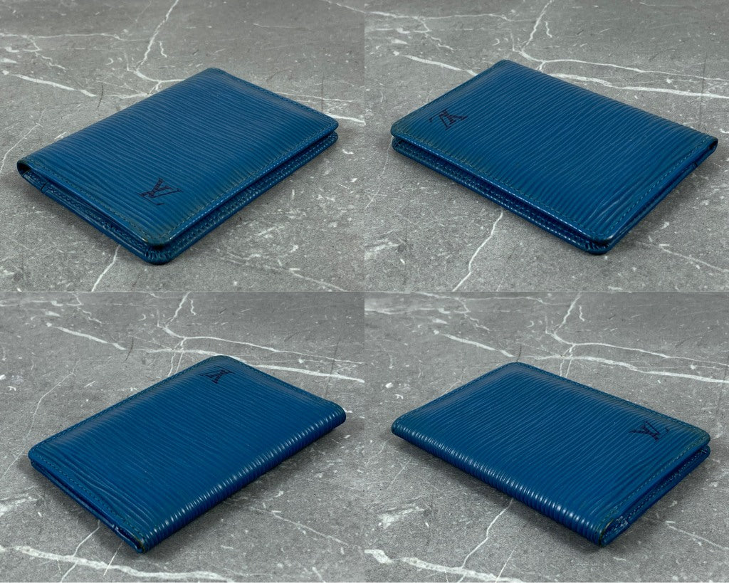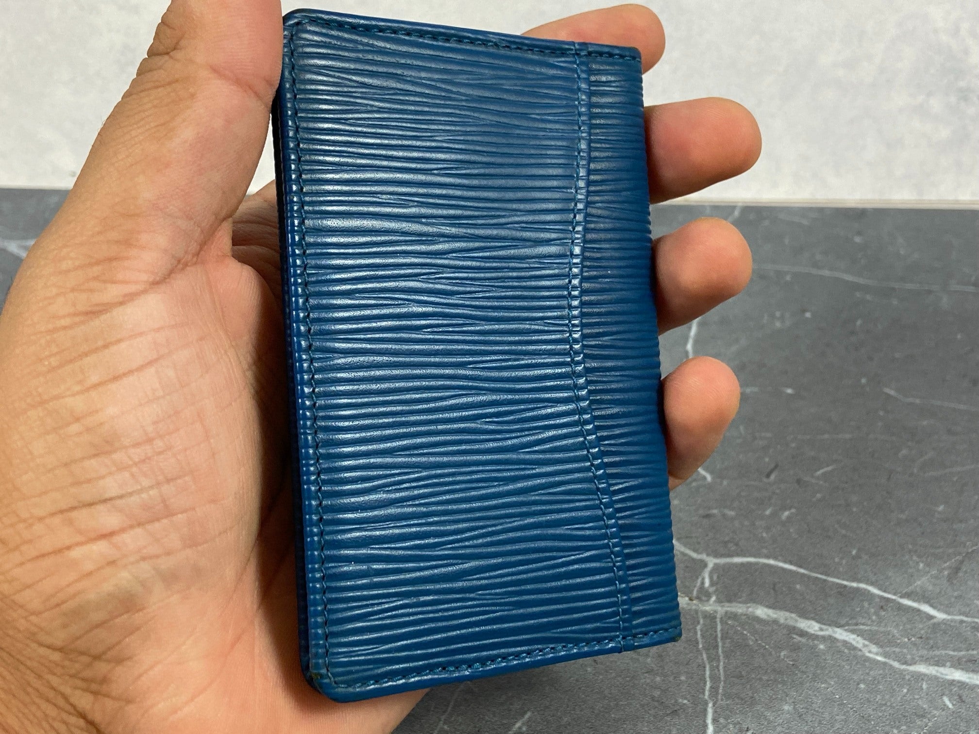 - Vintage Louis Vuitton Bifold Card Case with multiple compartments in Blue Epi Leather