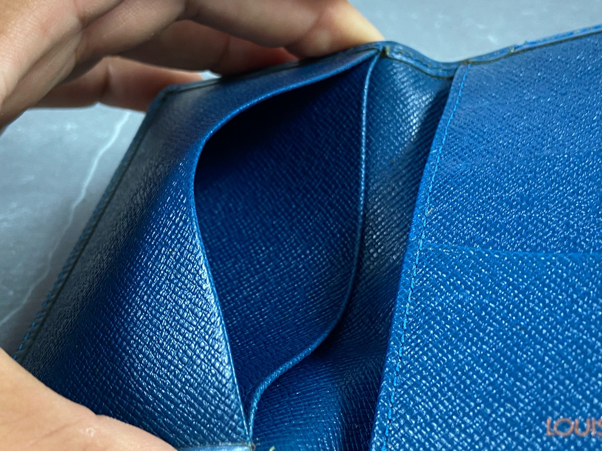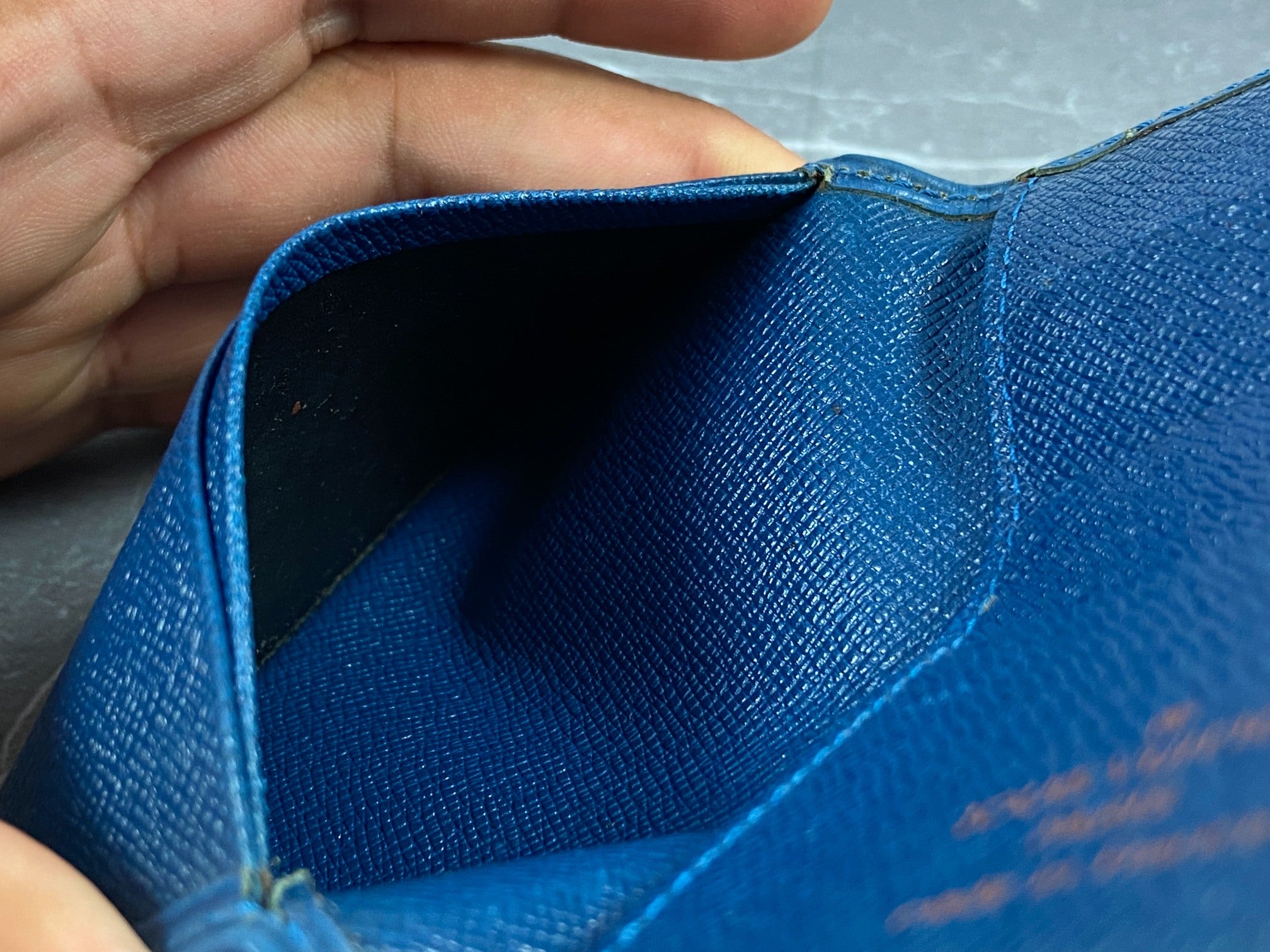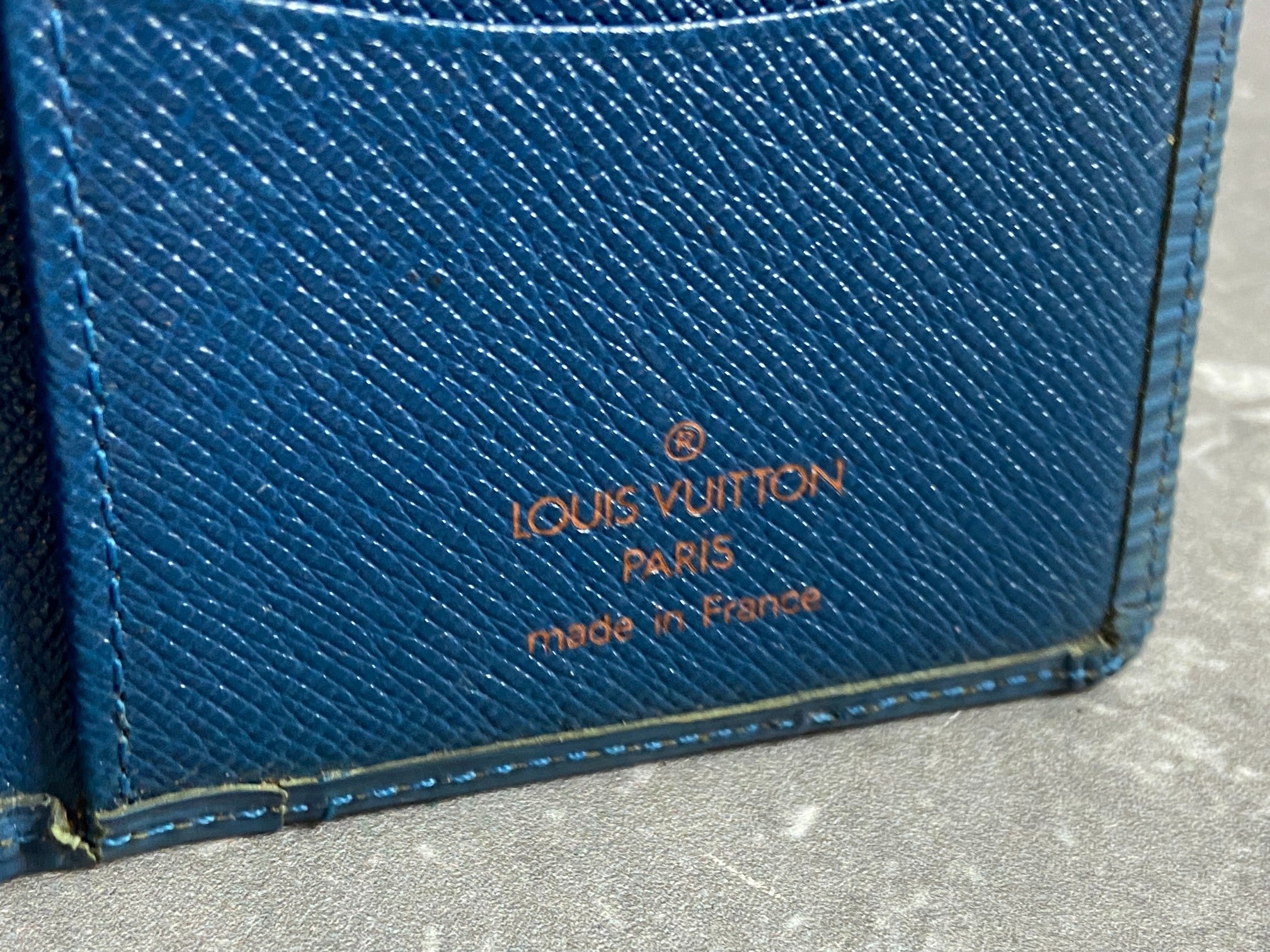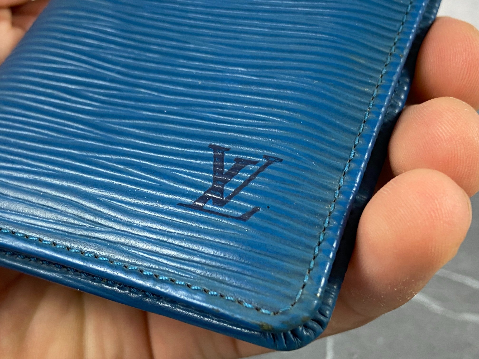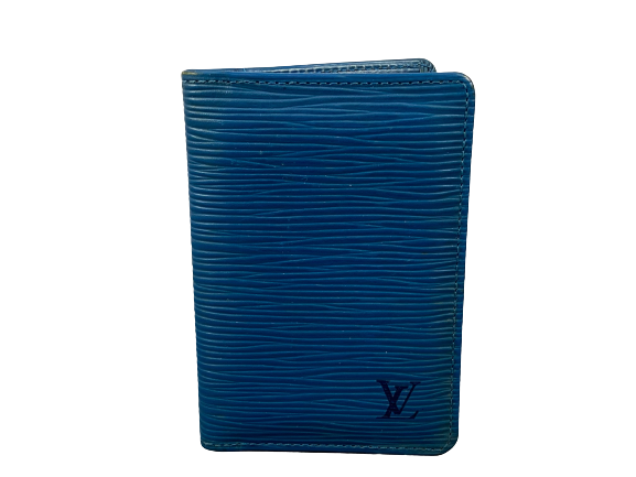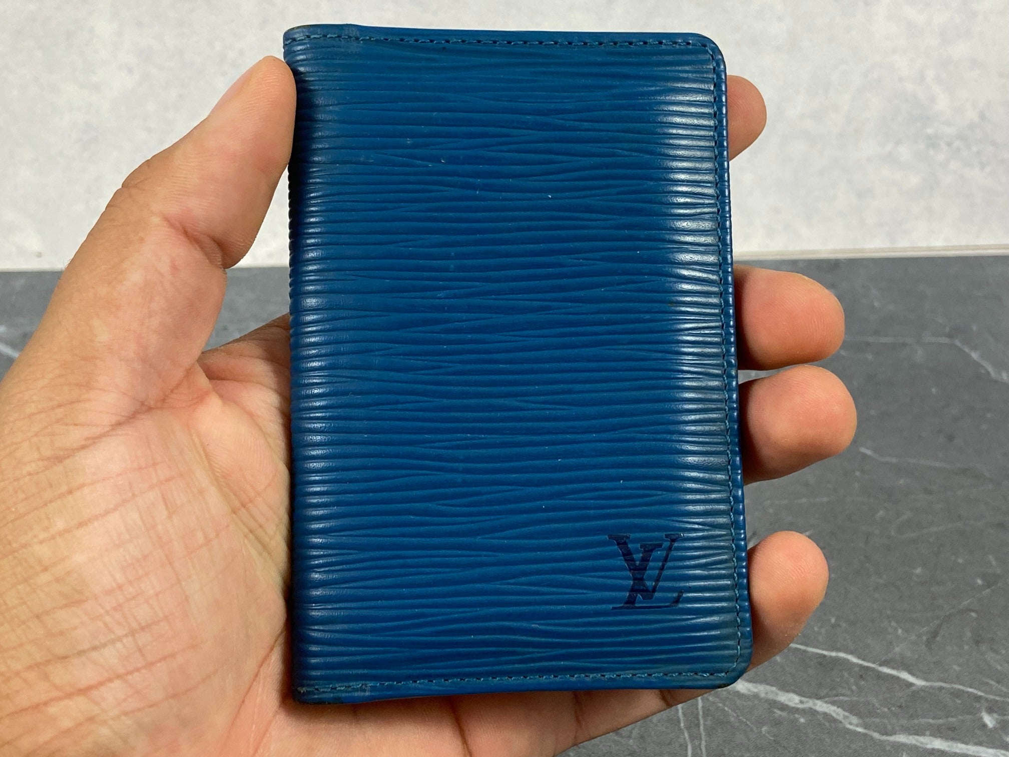 - Vintage Louis Vuitton Bifold Card Case with multiple compartments in Blue Epi Leather