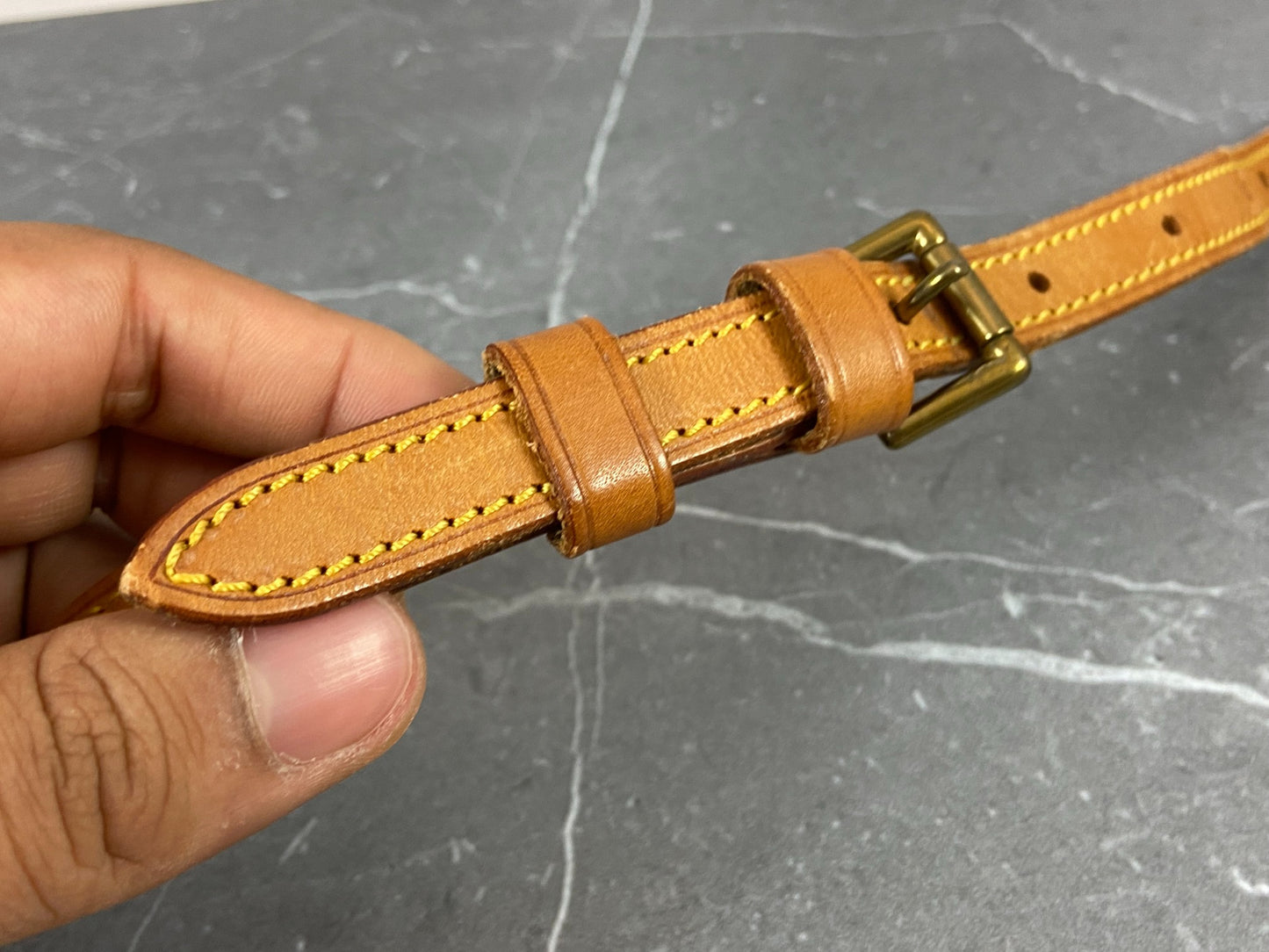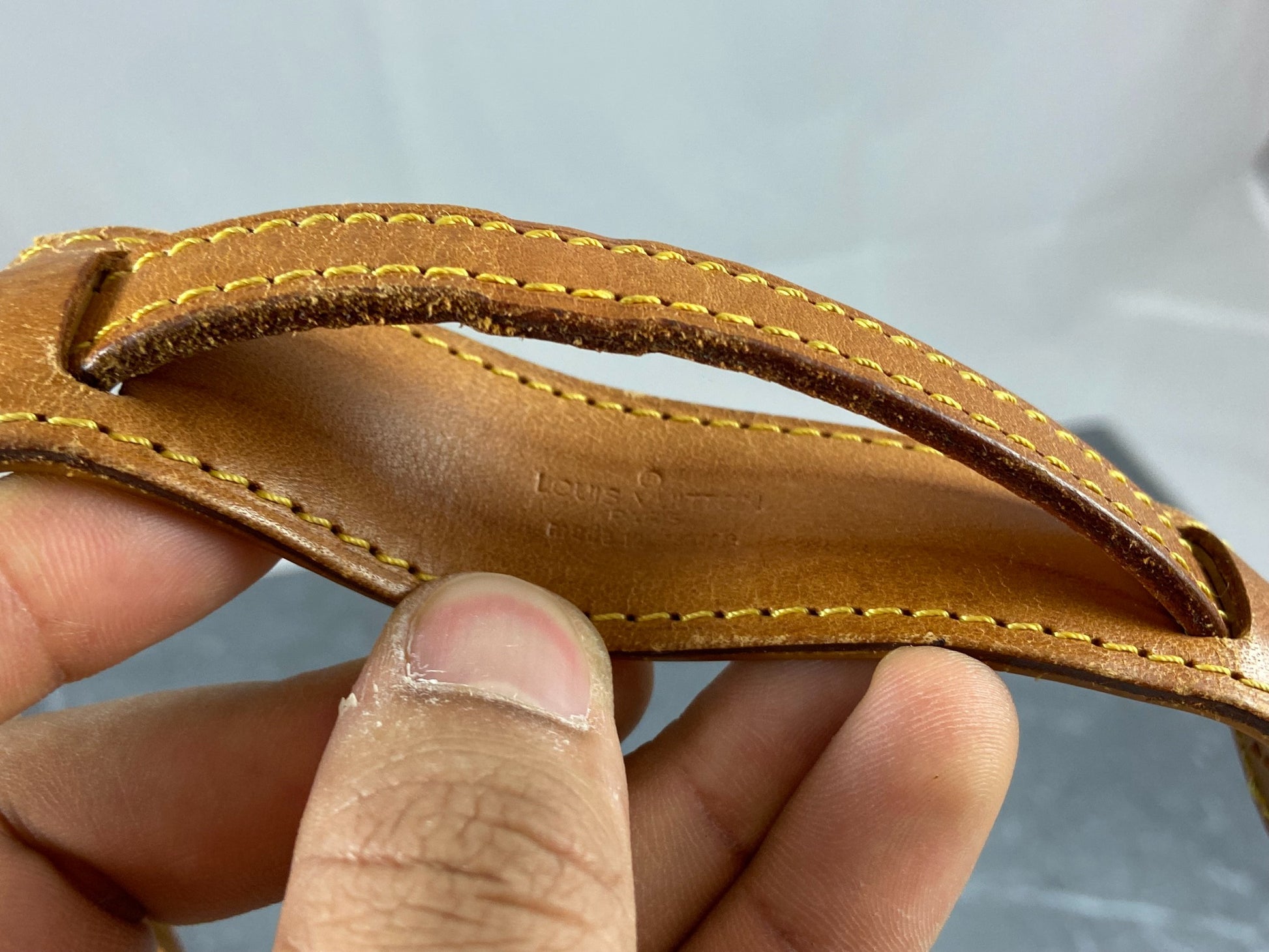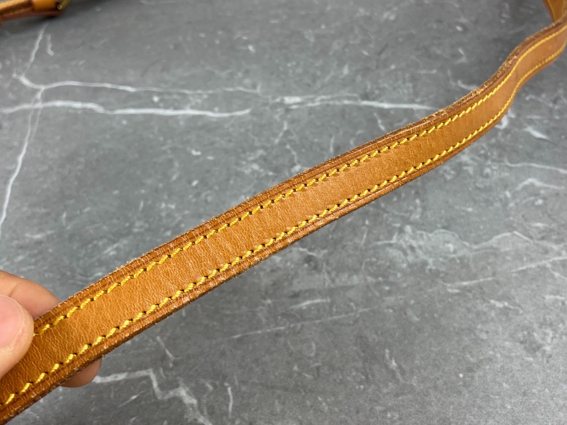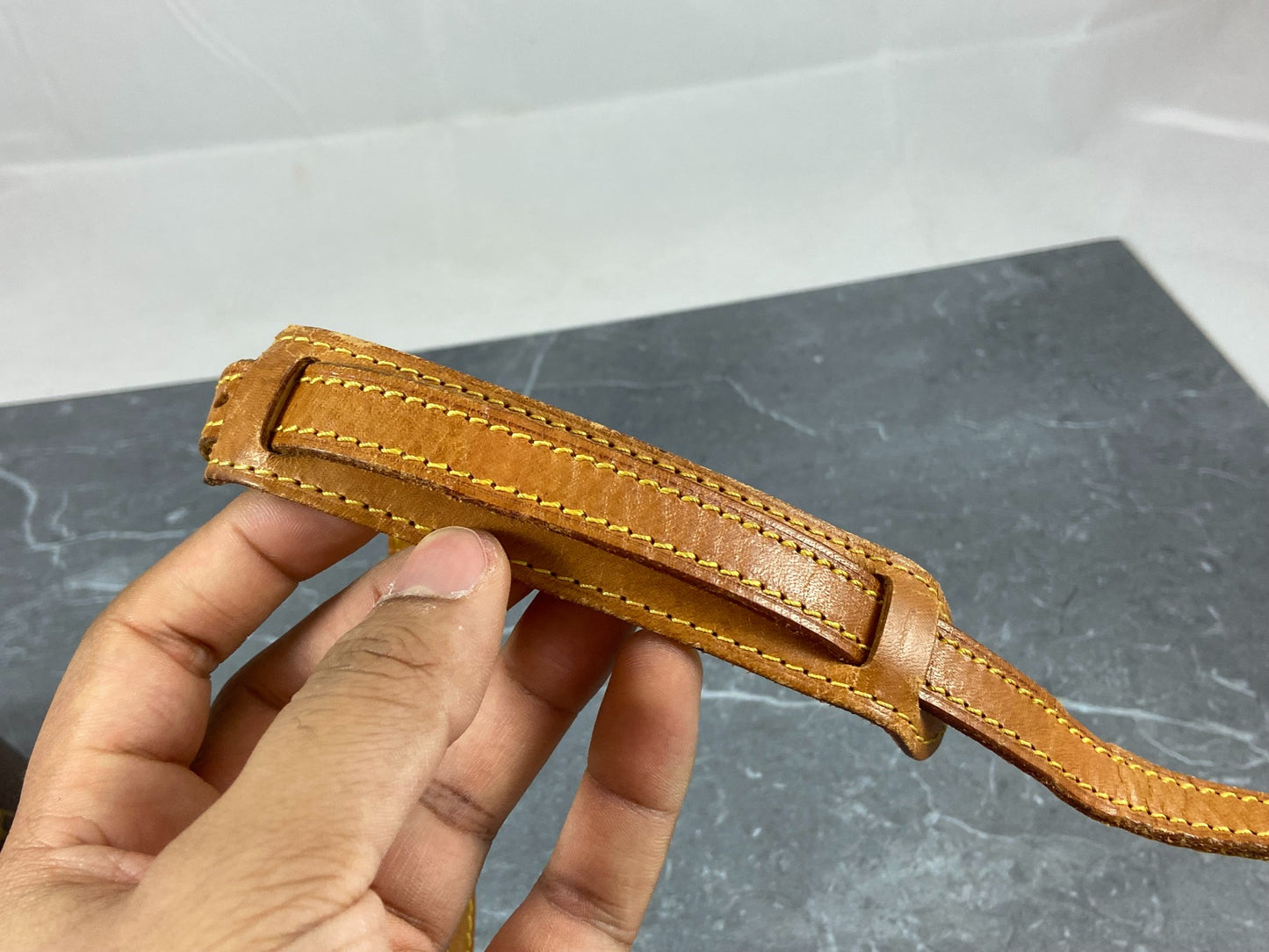 condition as pictured (in pretty good condition for its age, leather has a flaw at the closure rest is fine)