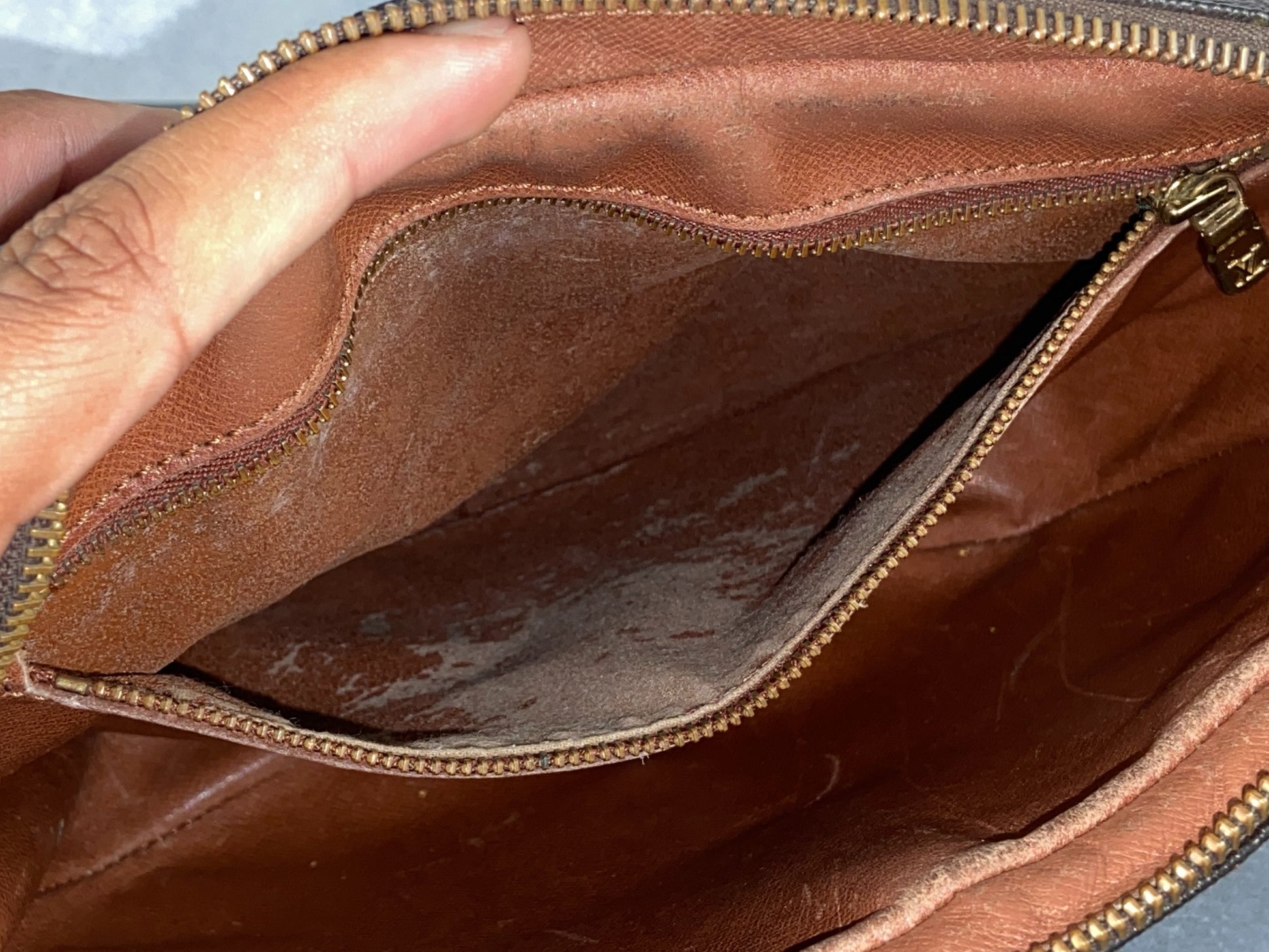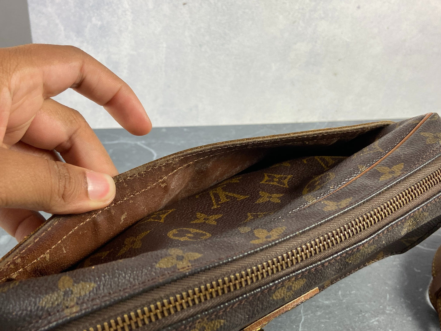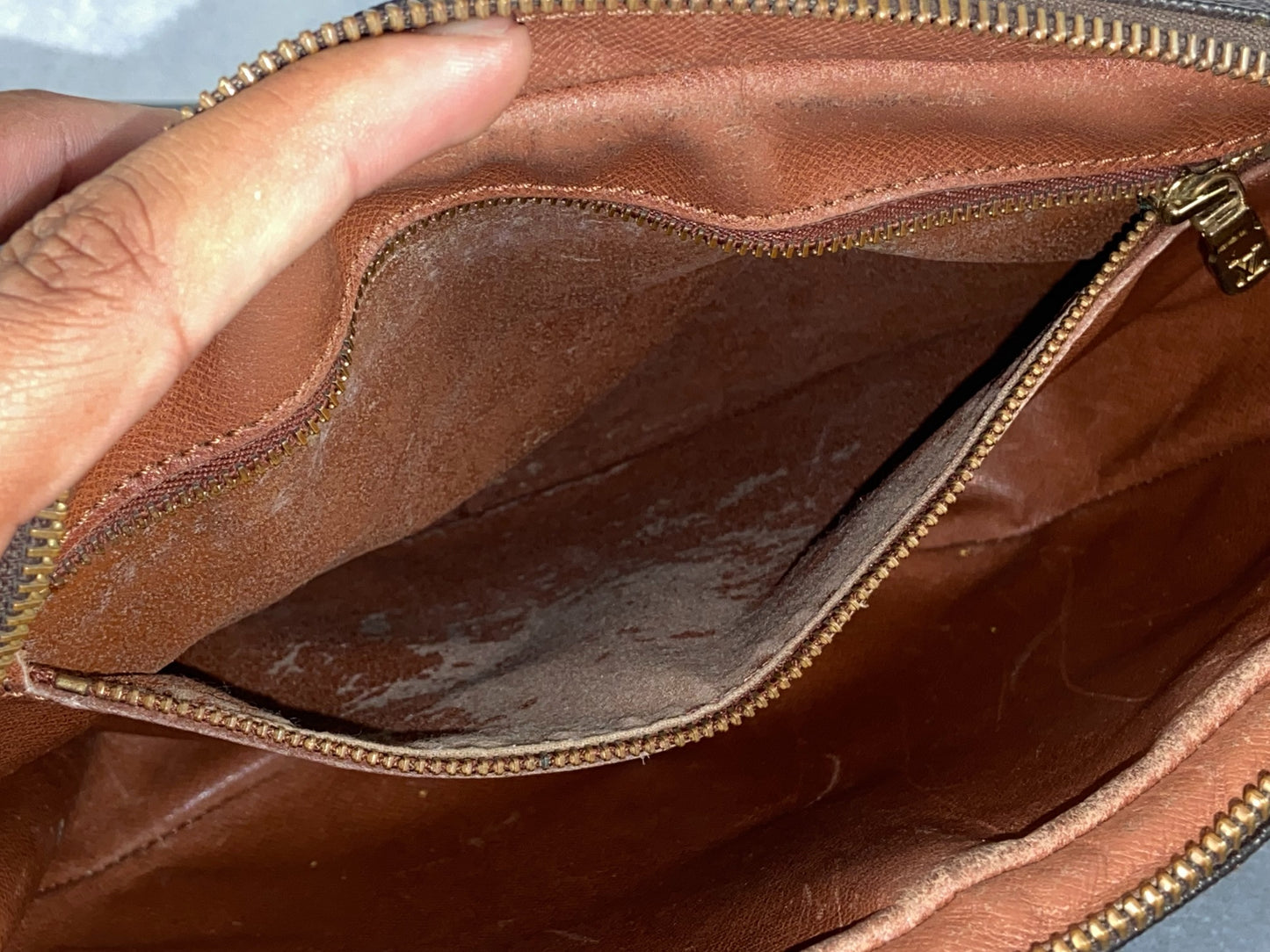- condition as pictured (in pretty nice condition for its age - has some signs of use which are normal for this age, side compartments are used but big compartment is perfectly usable)