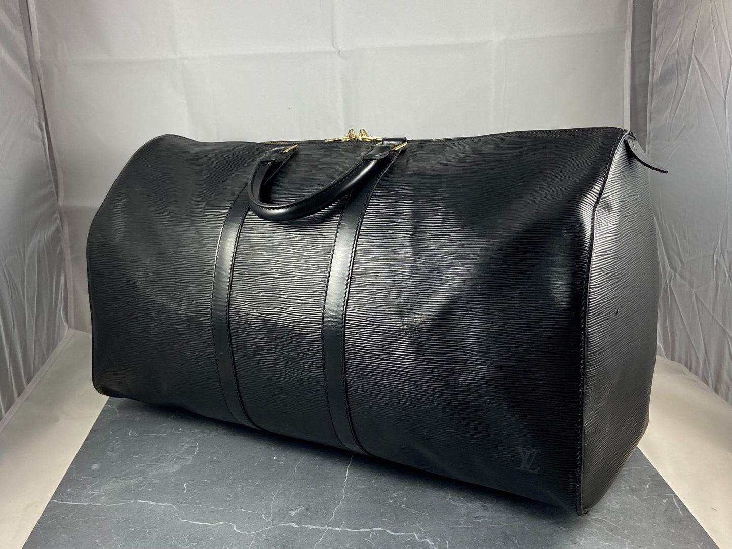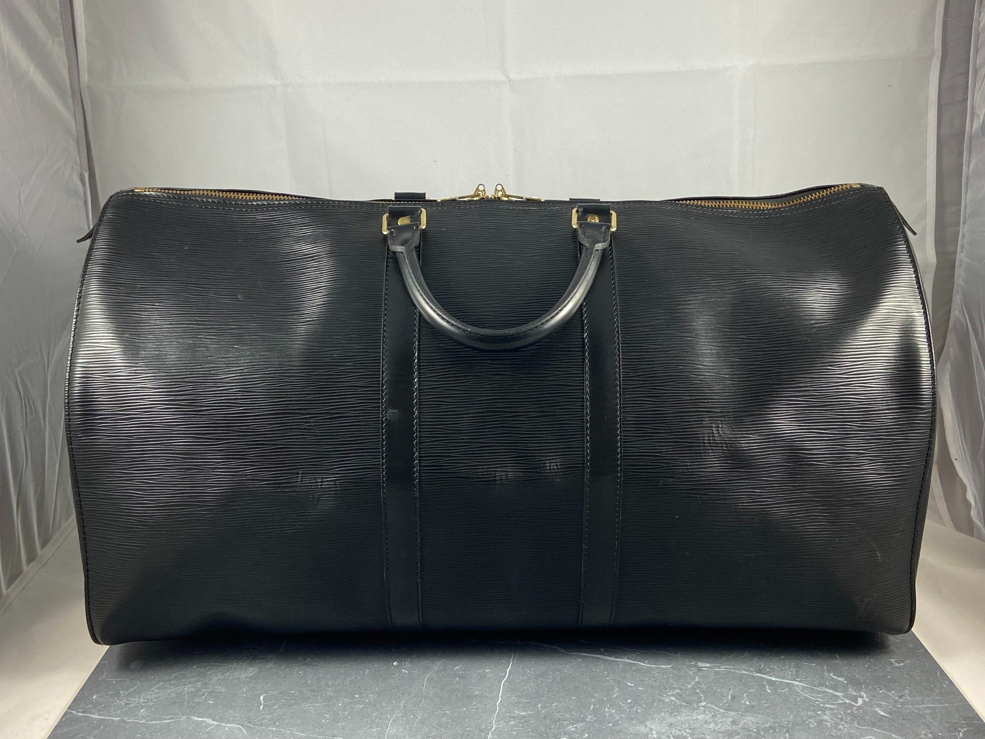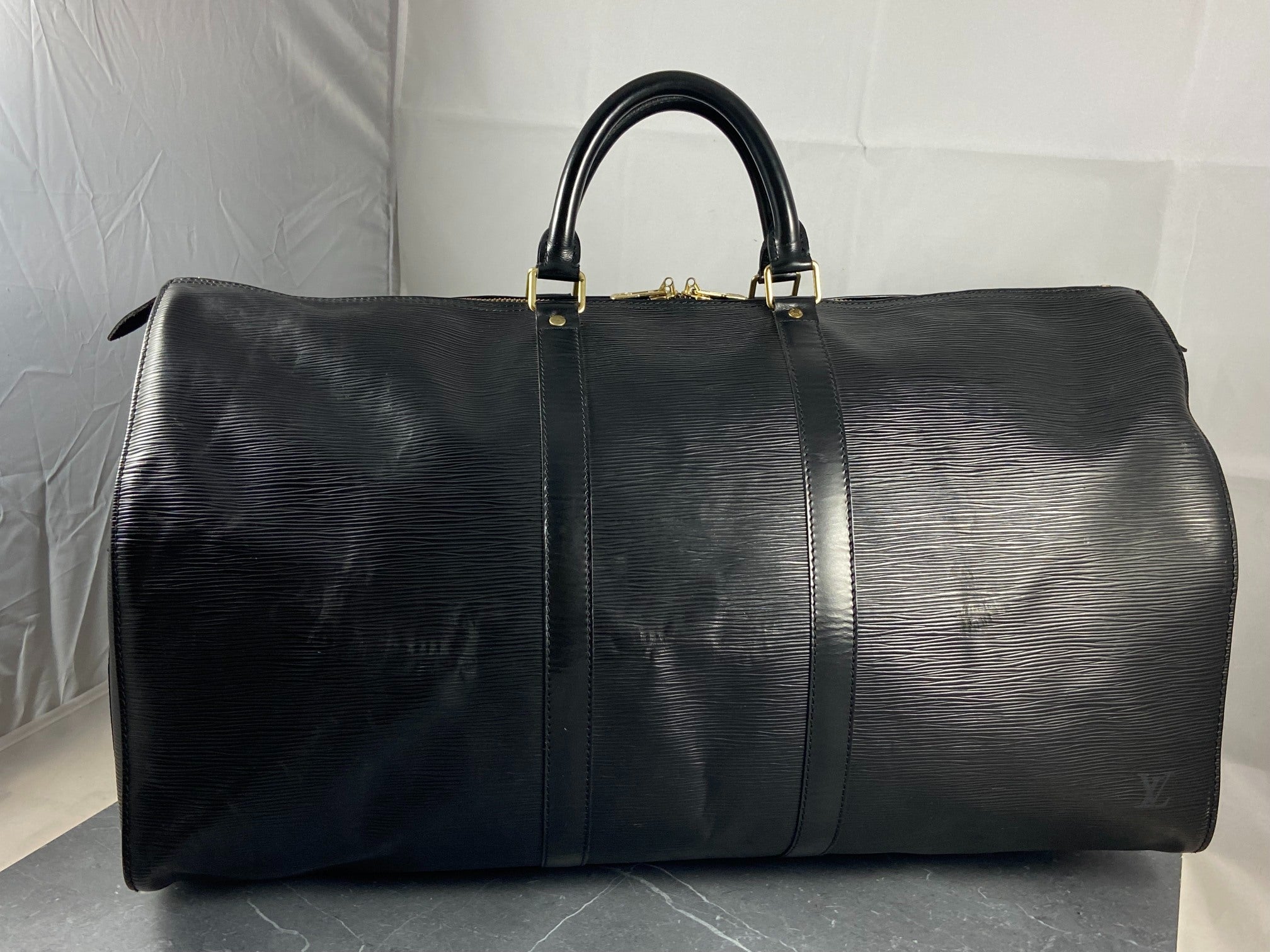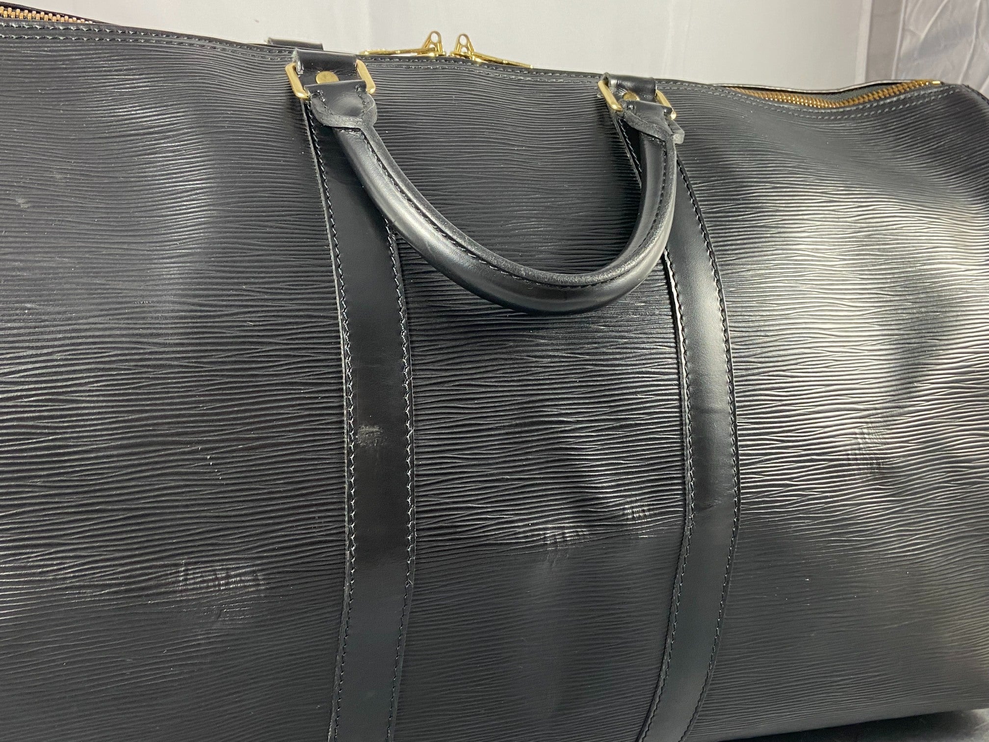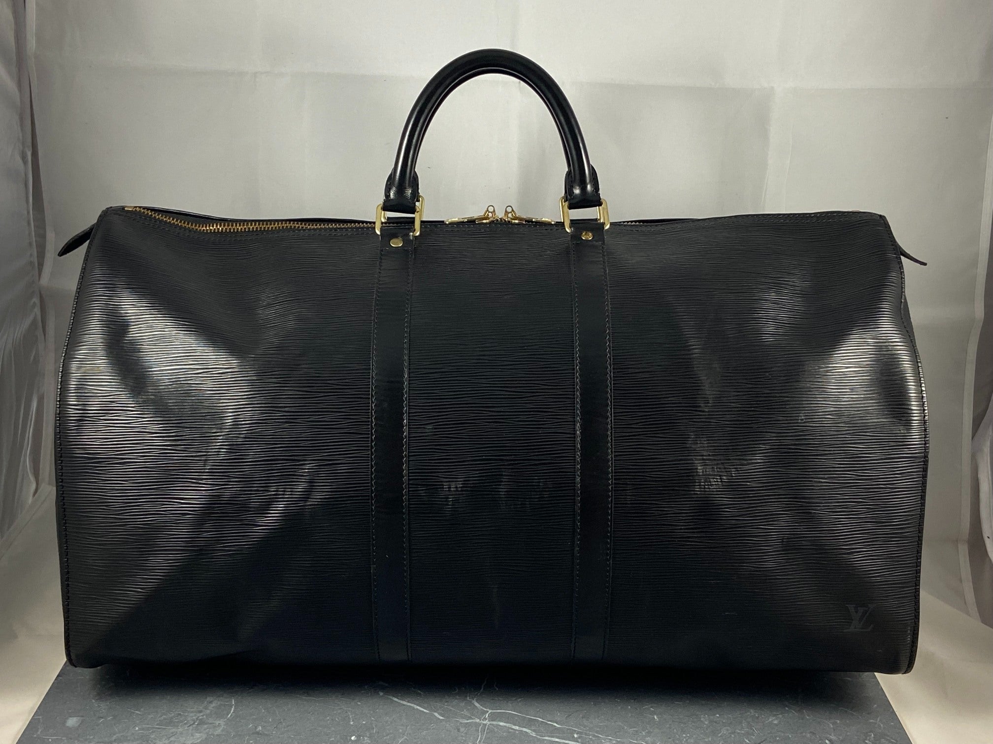 - Vintage Louis Vuitton Keepall 55 duffle bag in black epi leather