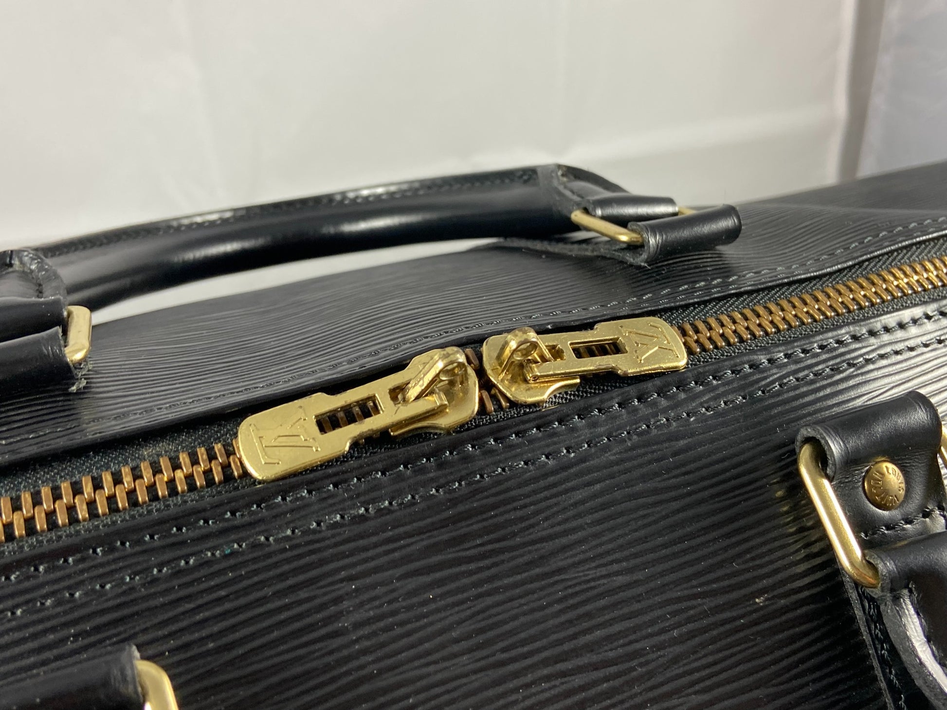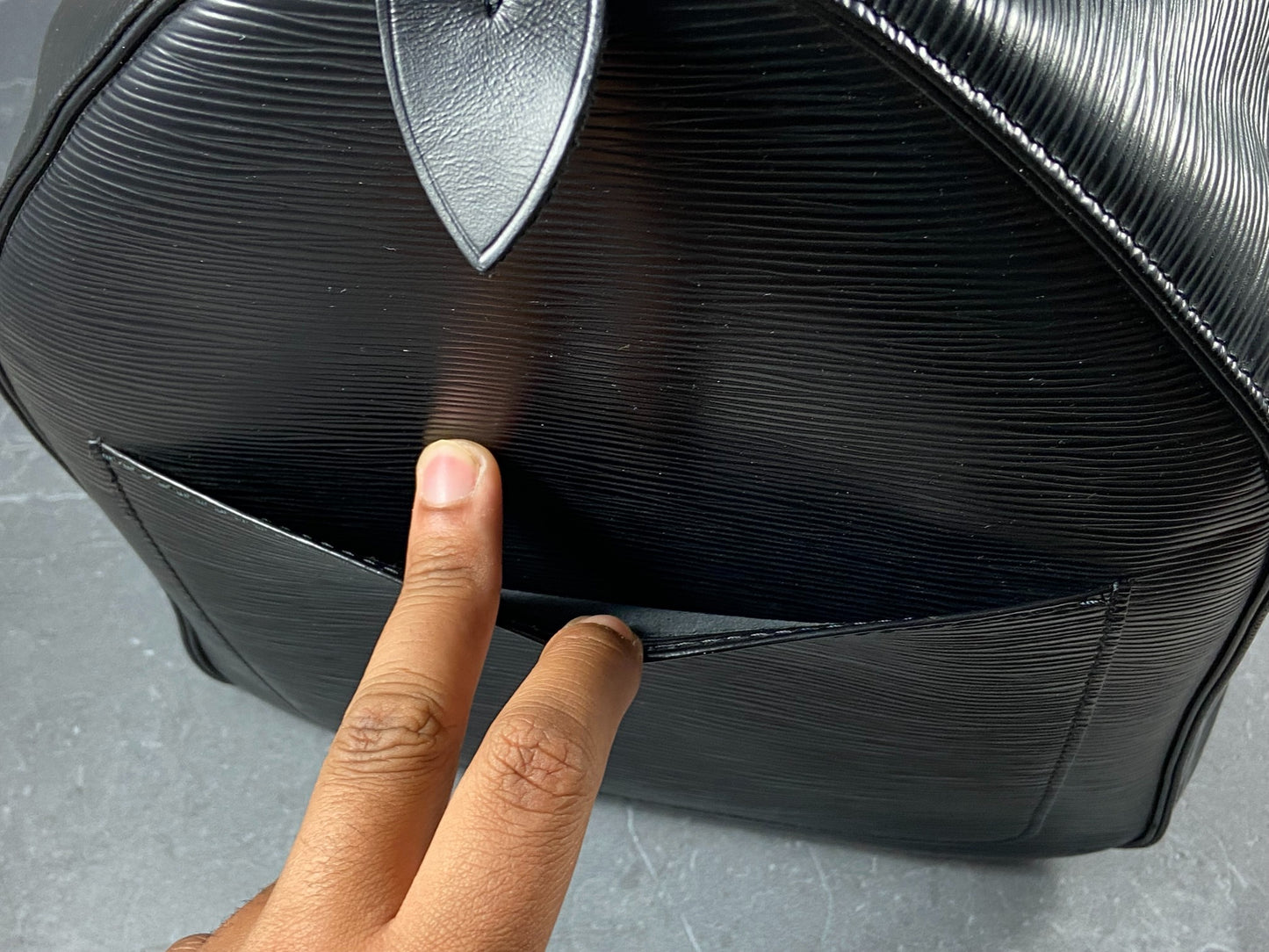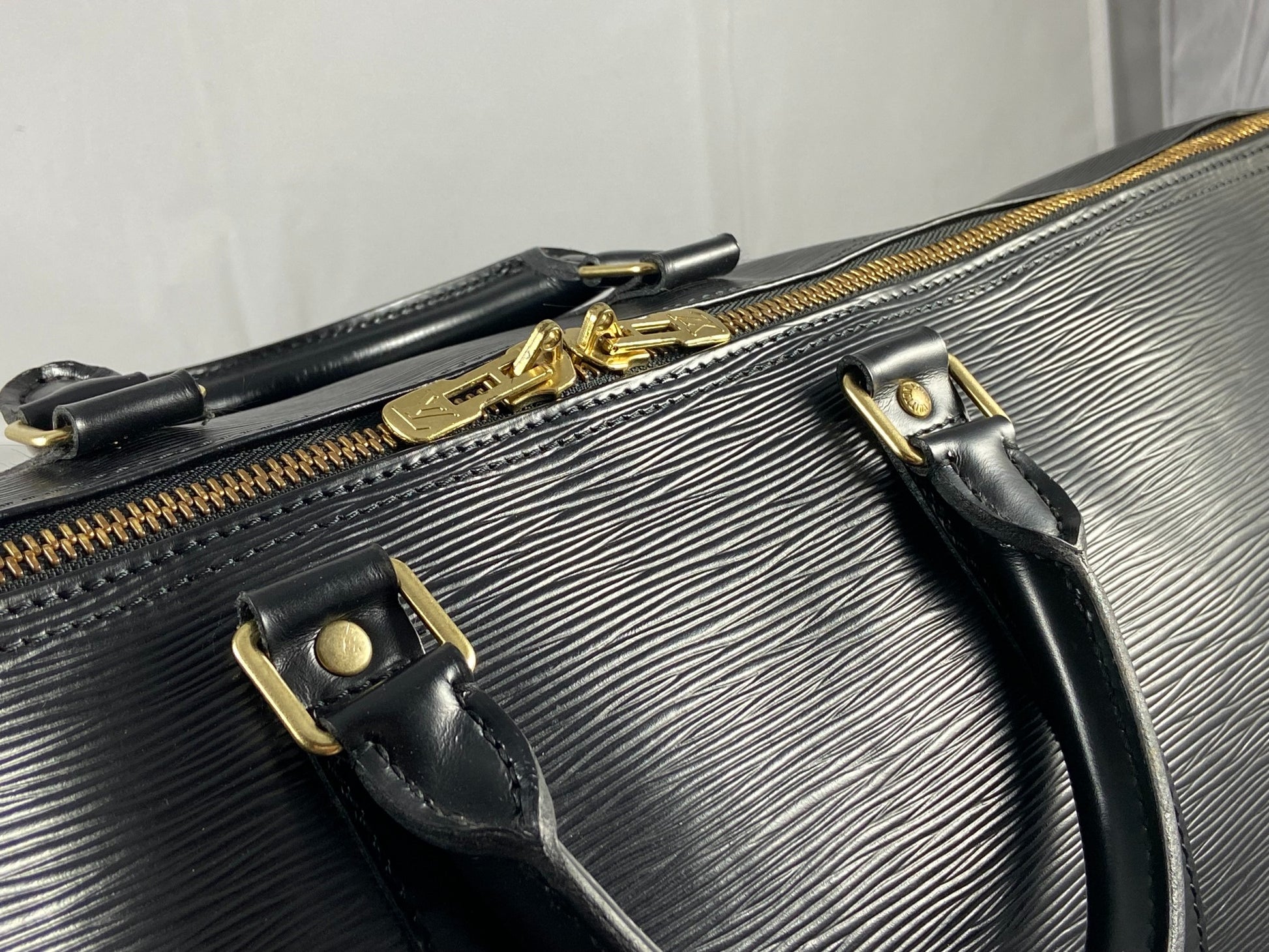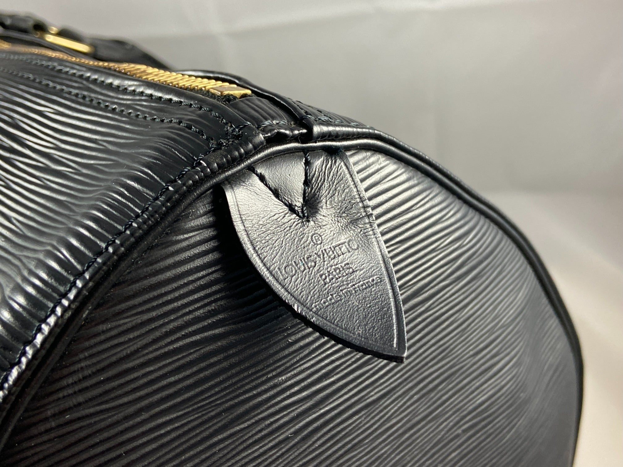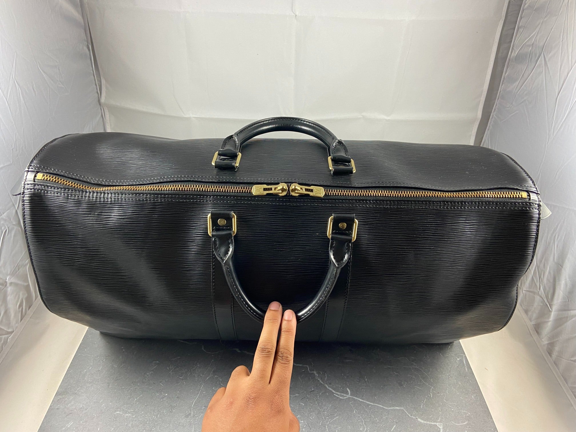- Vintage Louis Vuitton Keepall 55 duffle bag in black epi leather