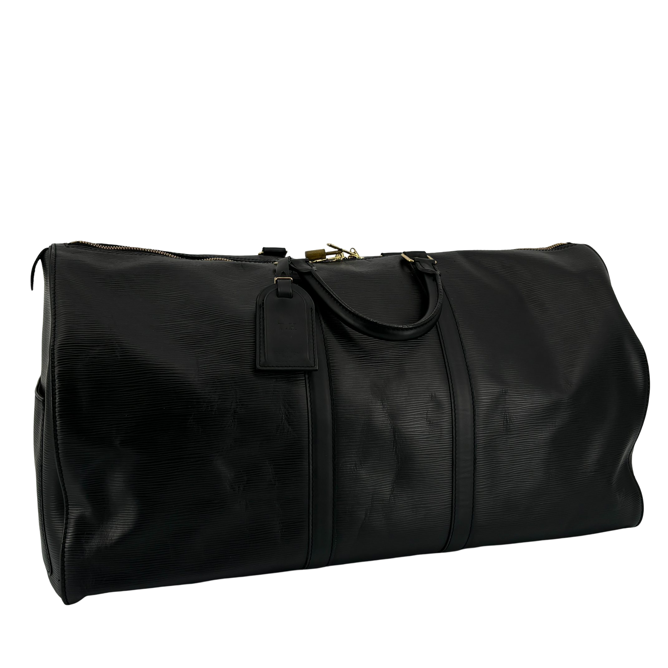 - Vintage Louis Vuitton Keepall 55 duffle bag in black epi leather