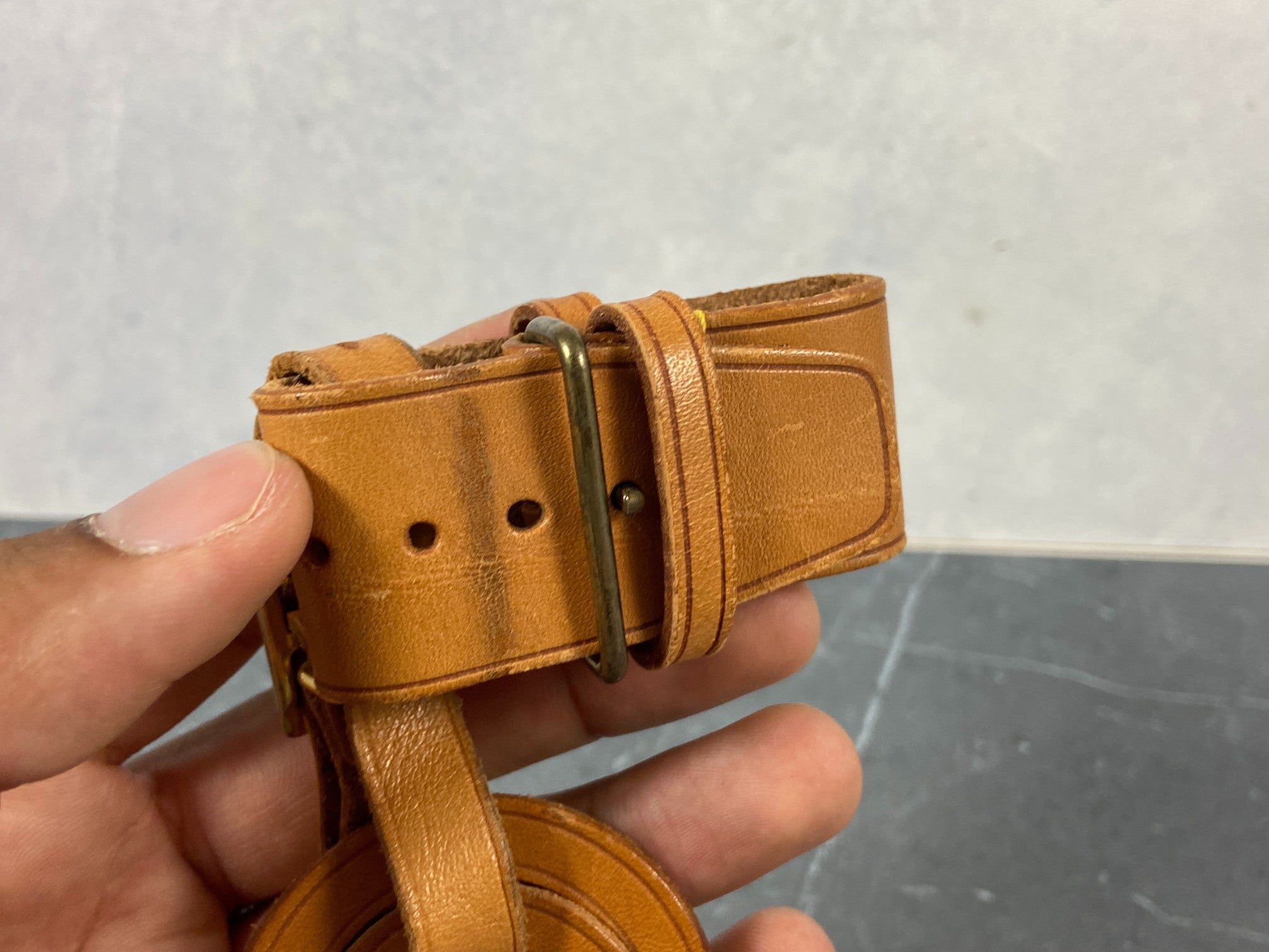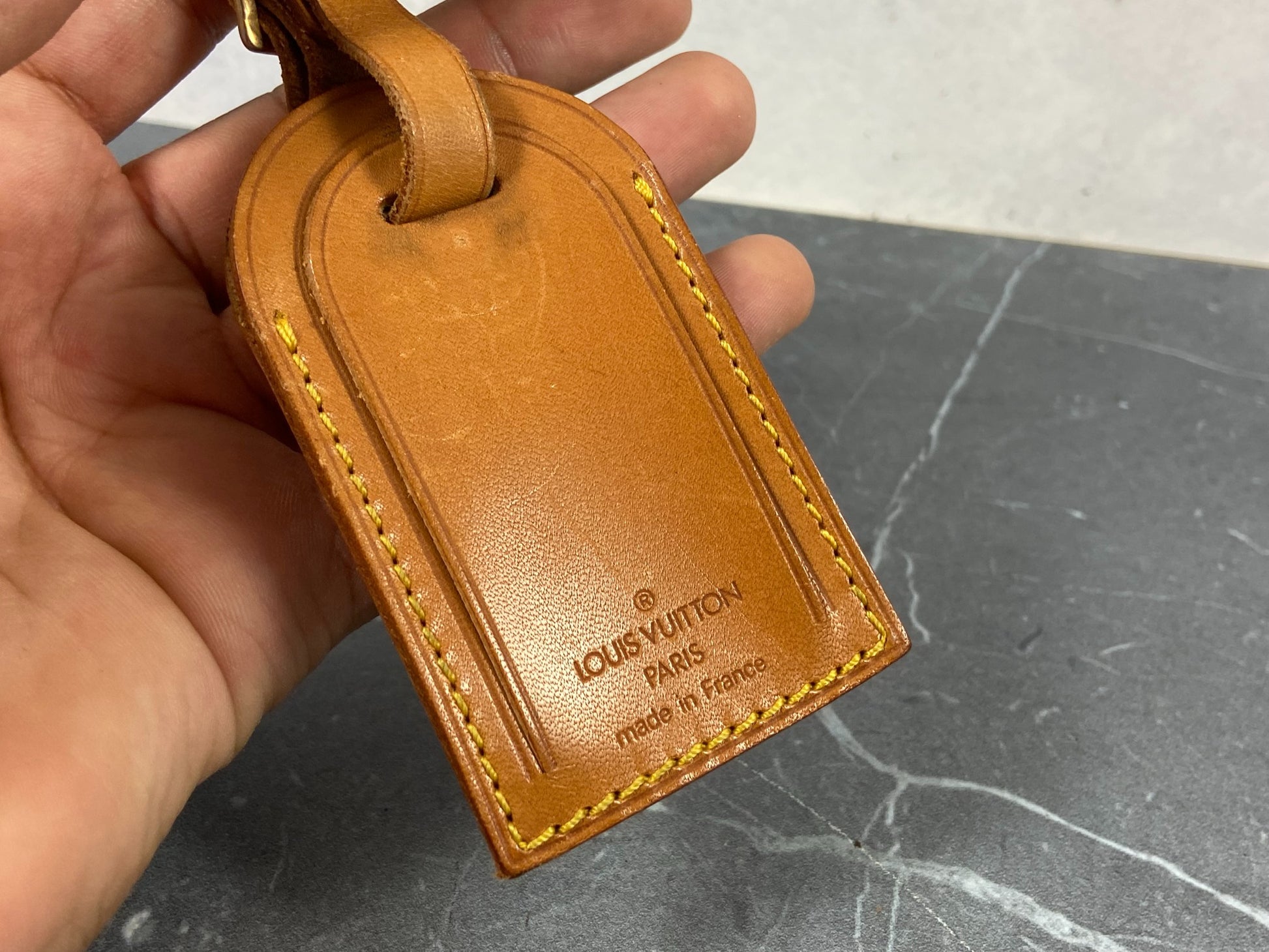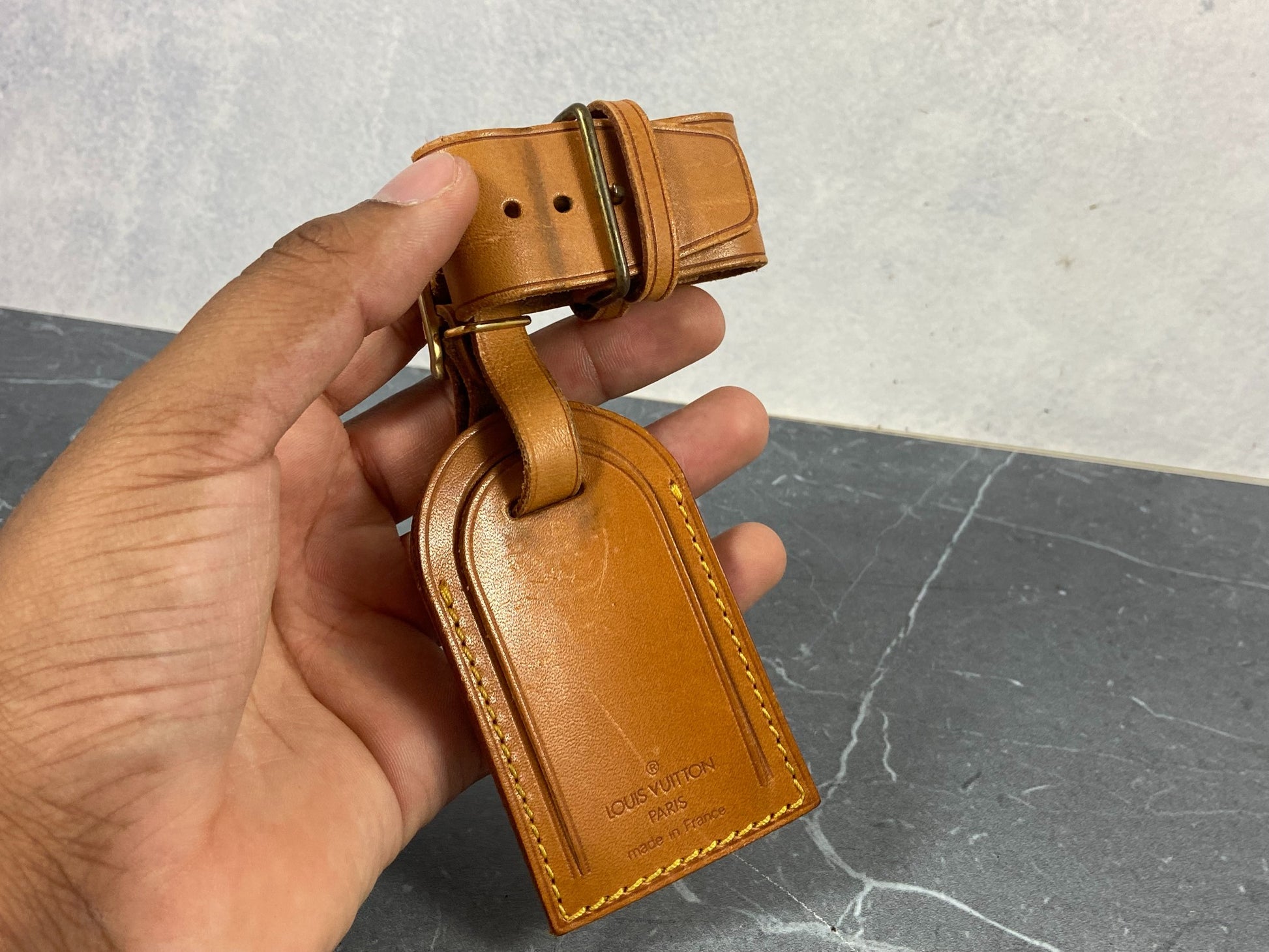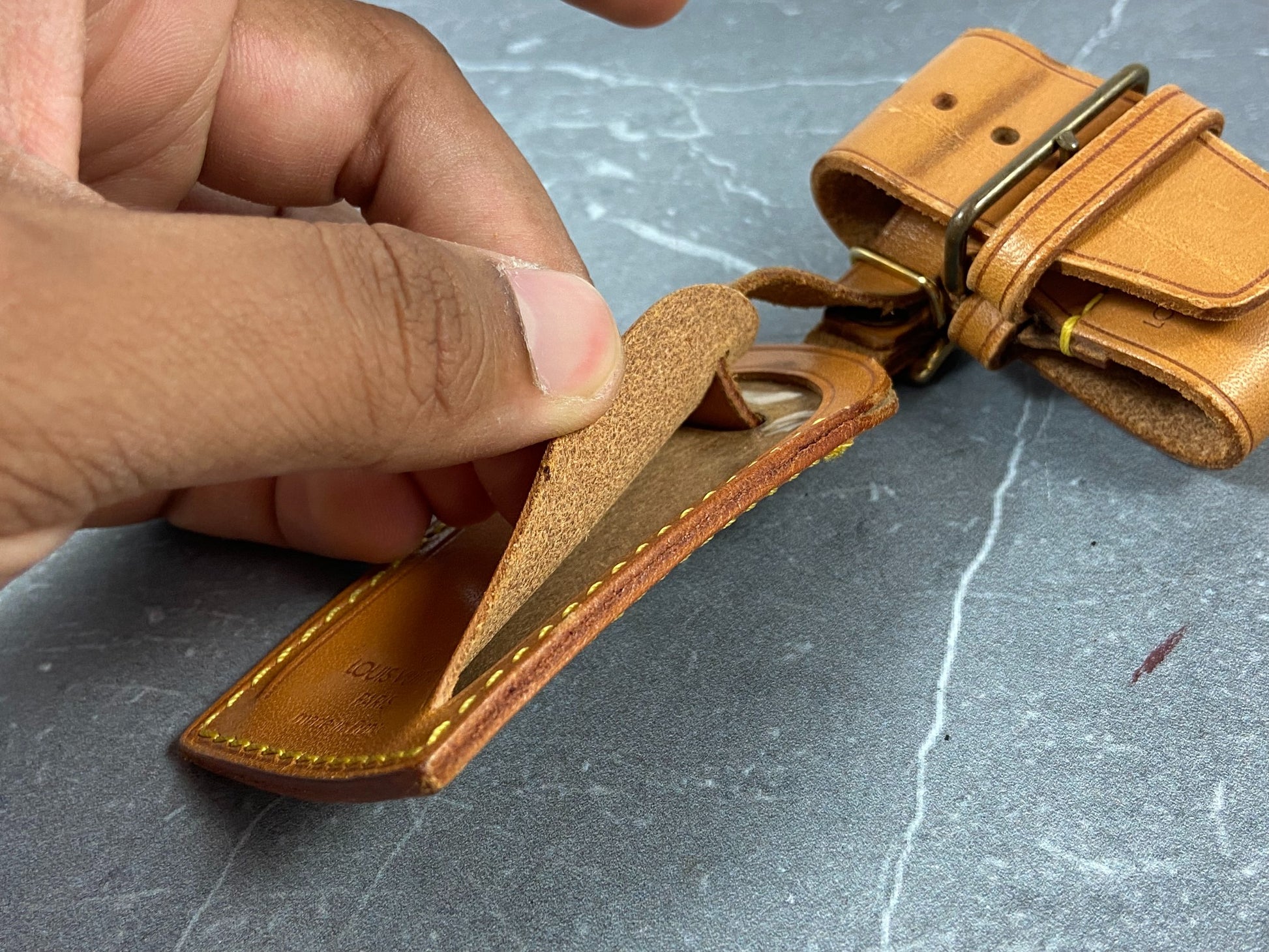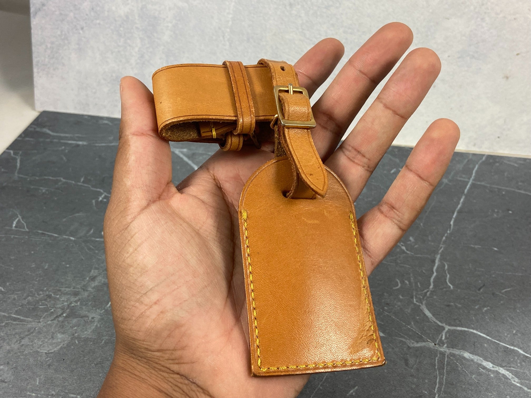 - Louis Vuitton Luggage Tag & Handle Belt Beige Vachetta Leather