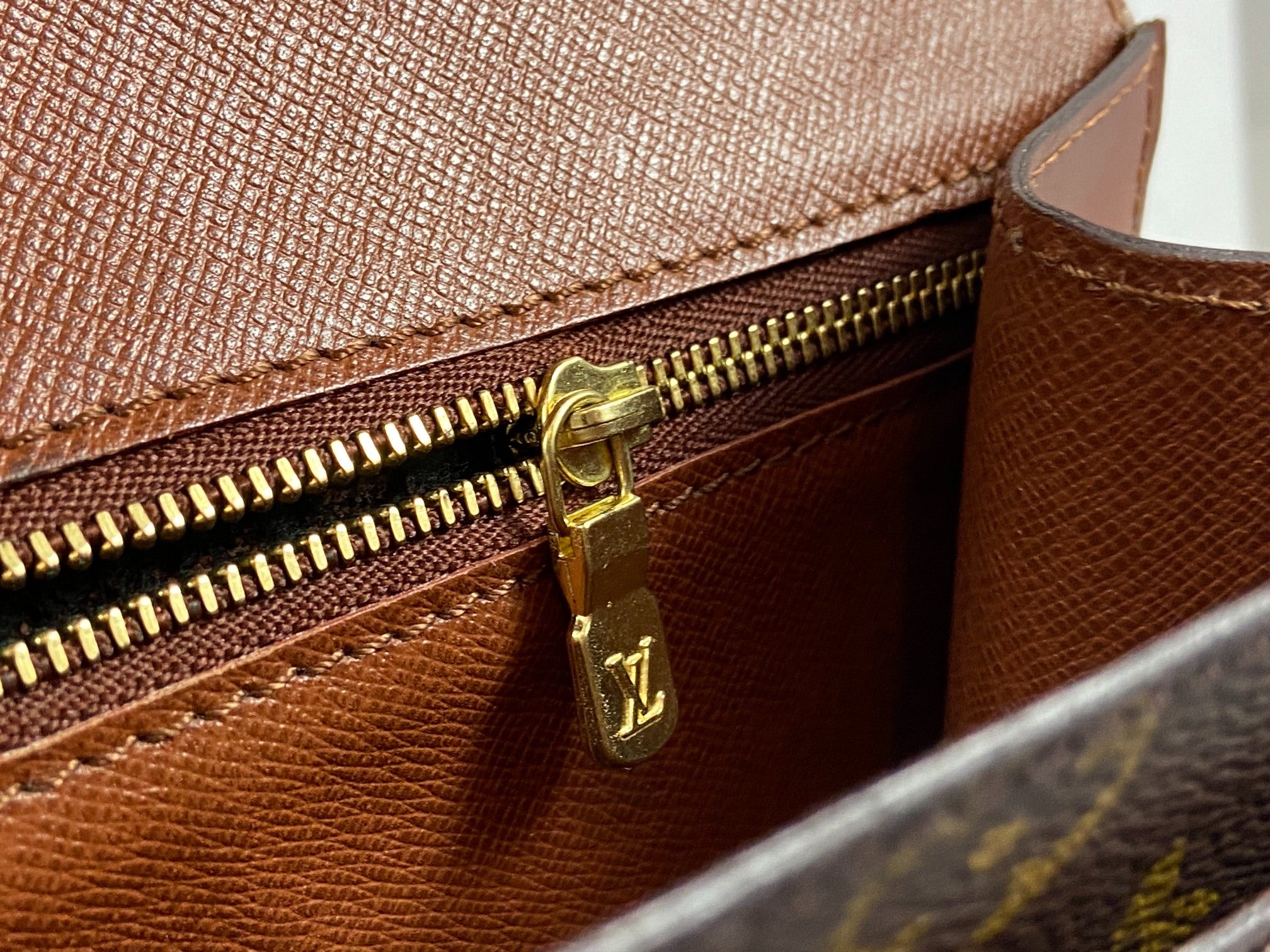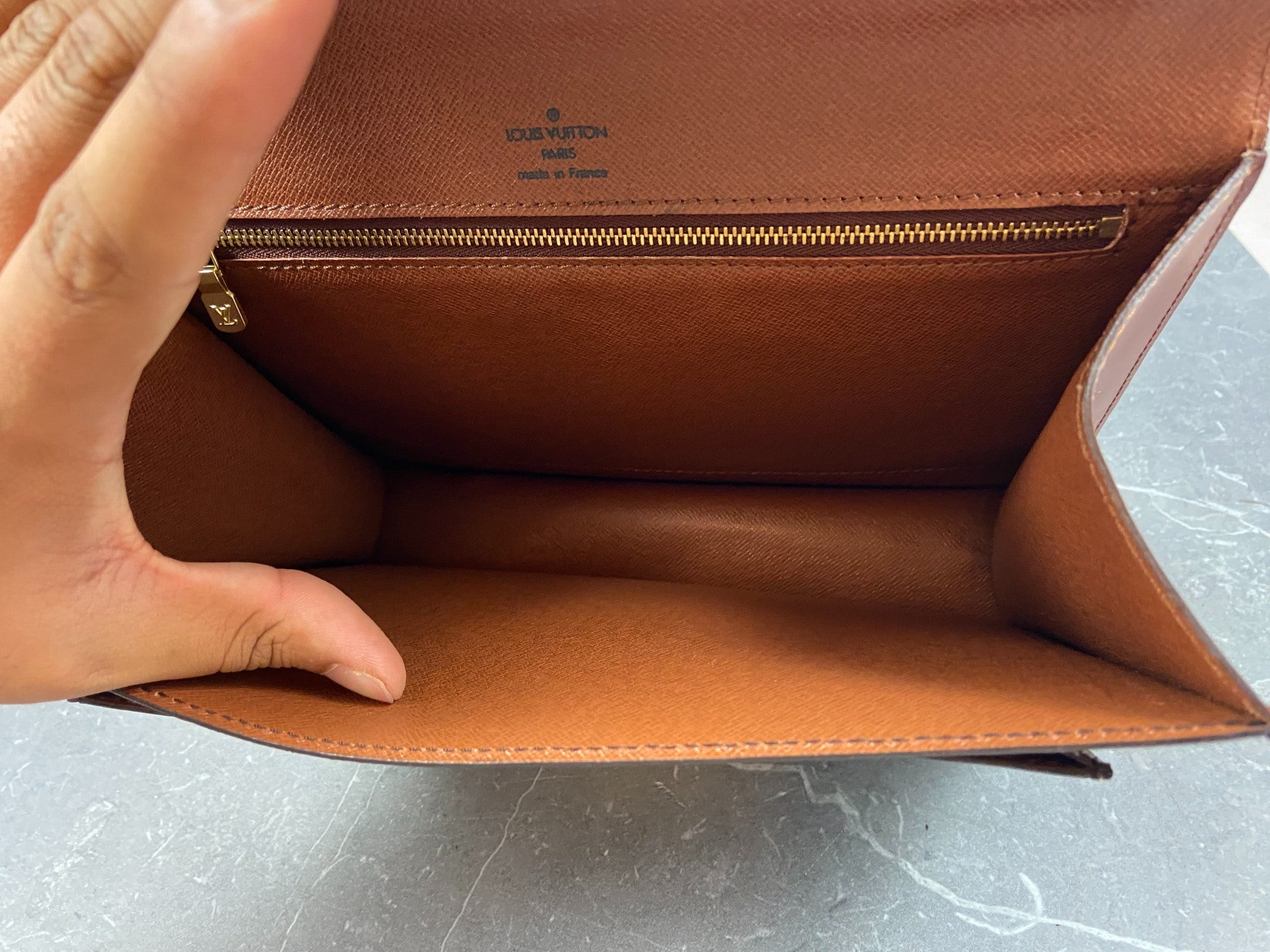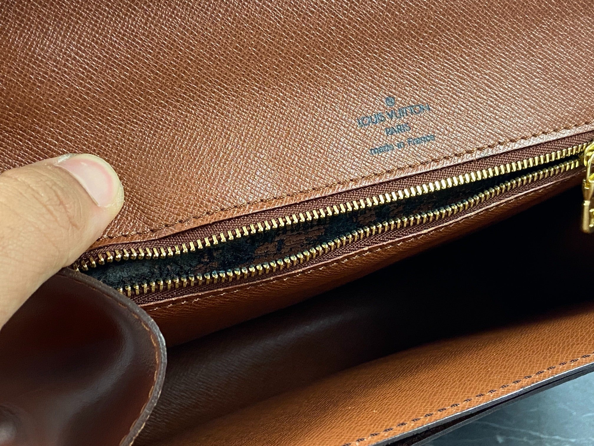 - flaw: inside zip side compartment is sticky - we recommend using only the large compartments - typical vintage LV Flaw