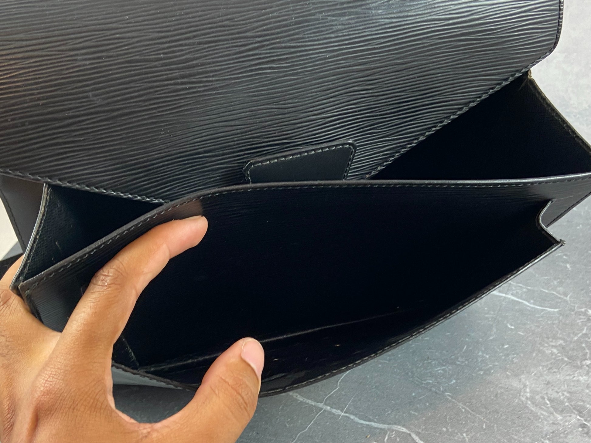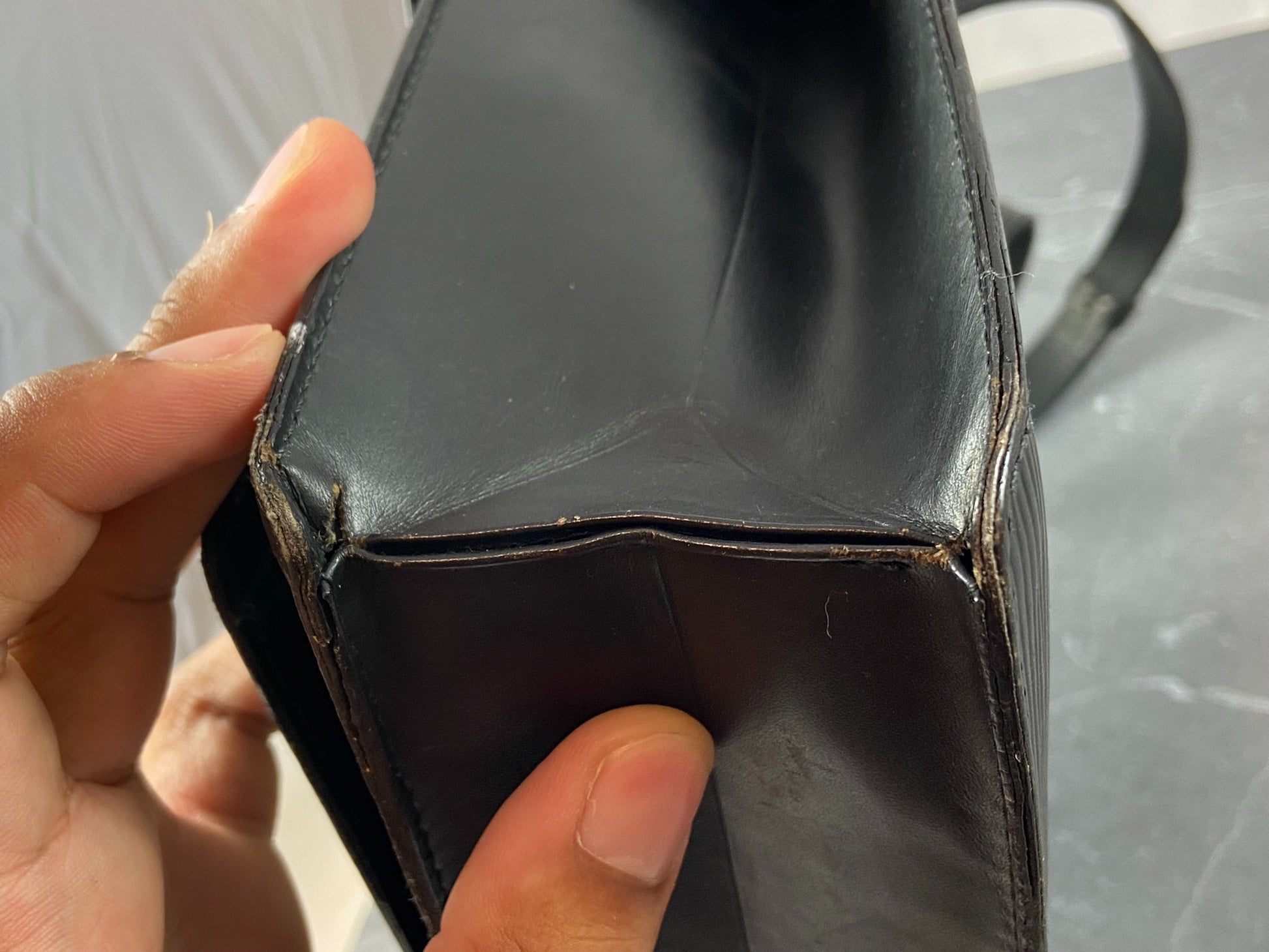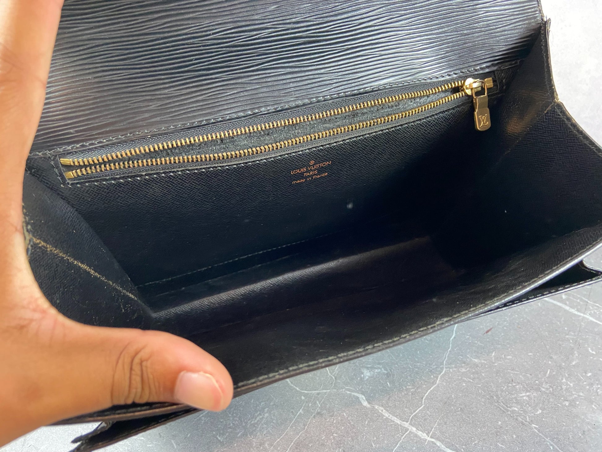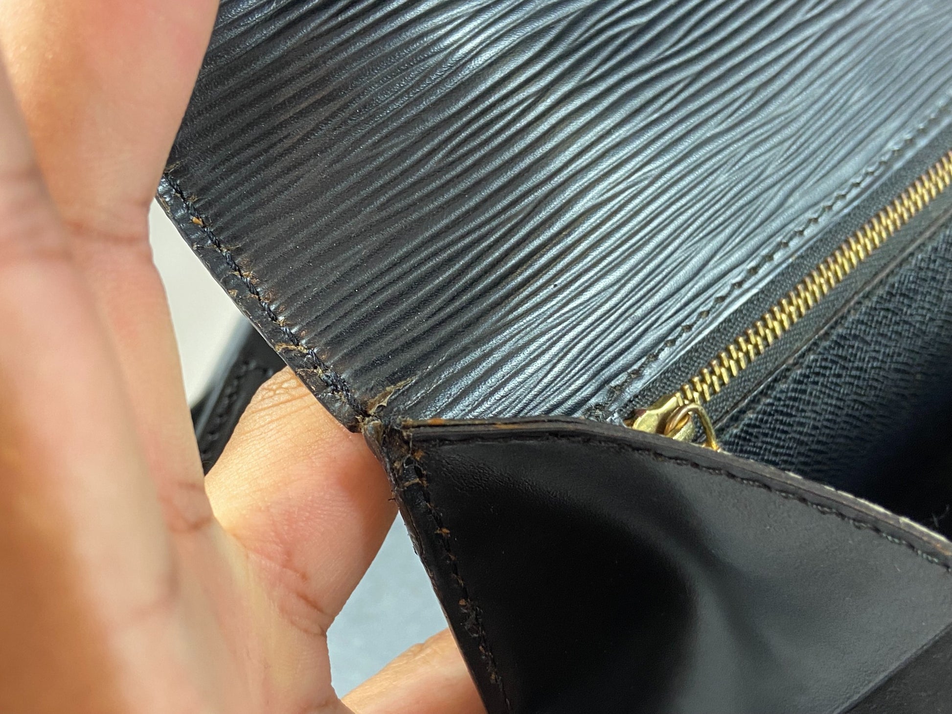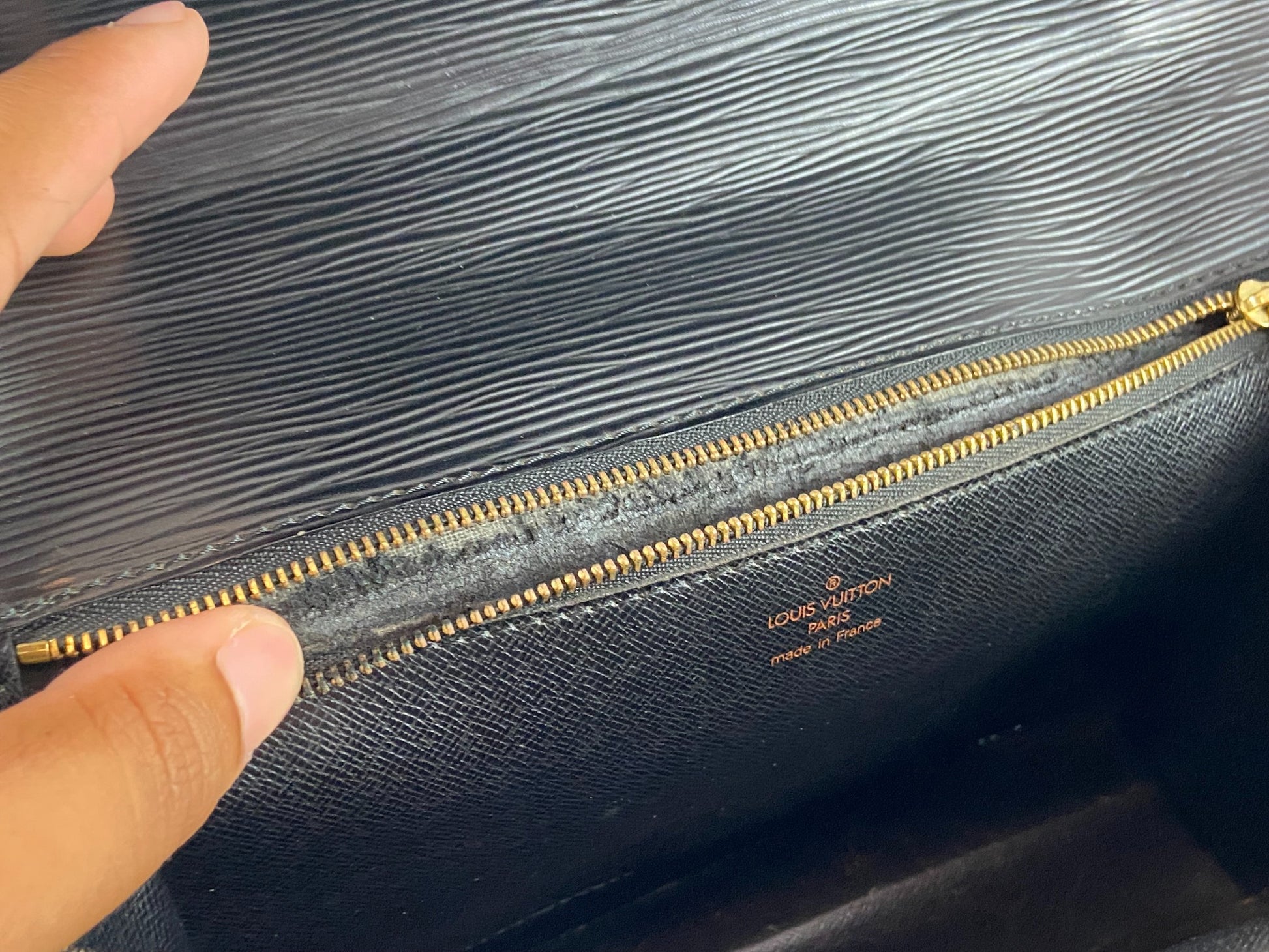 - the inside zip compartment which is sticky - normal vintage LV flaw - rest is fine