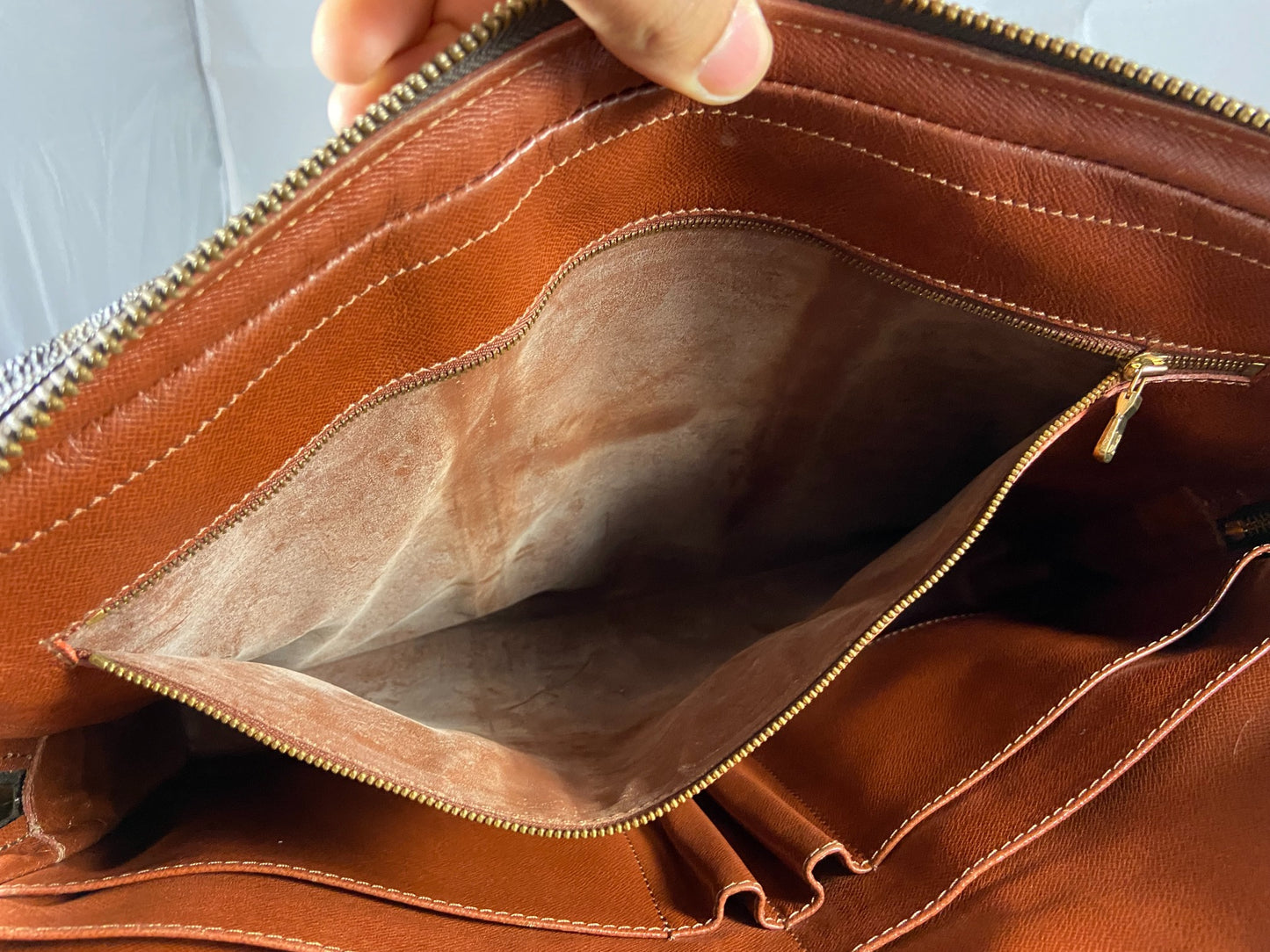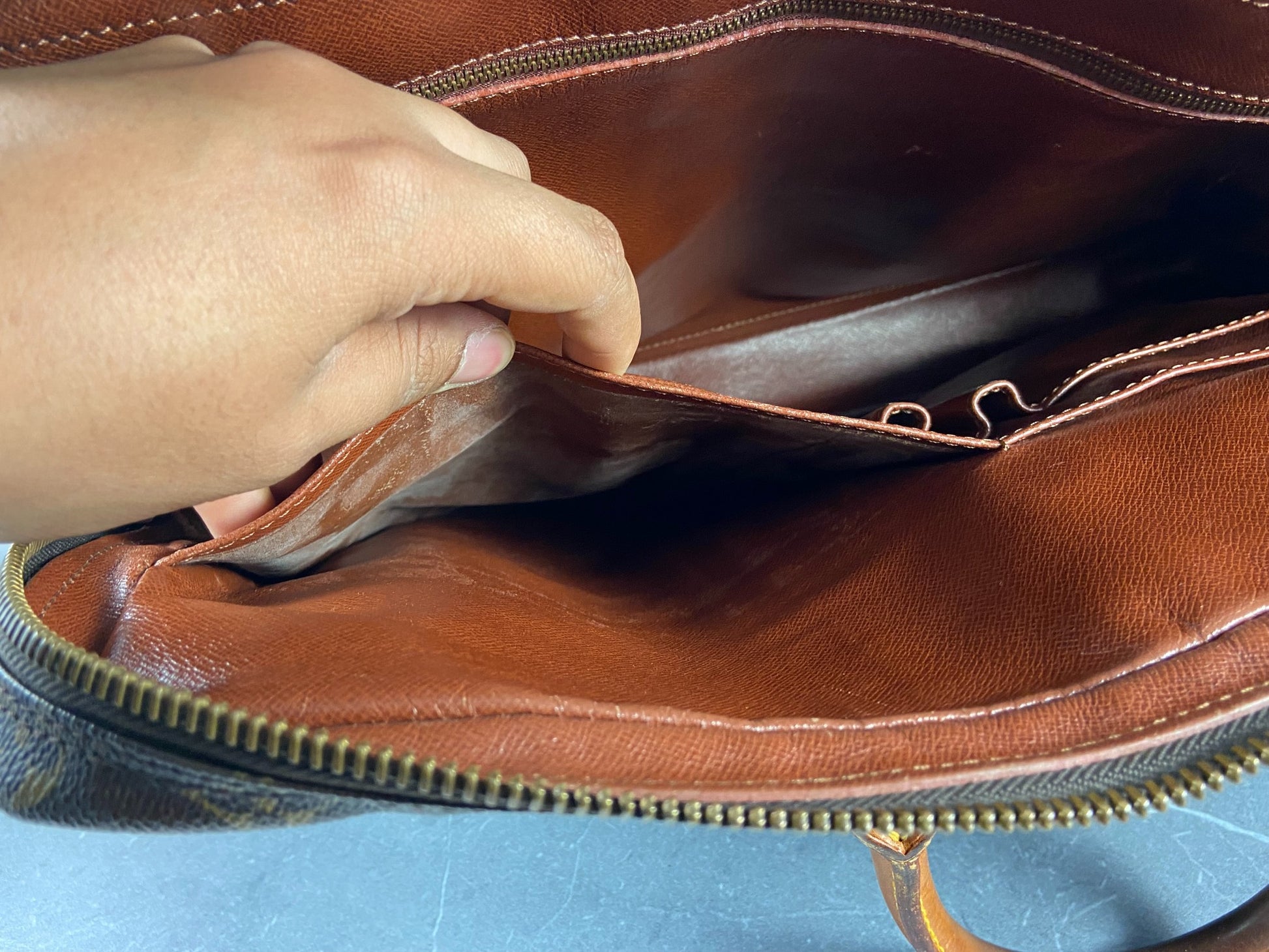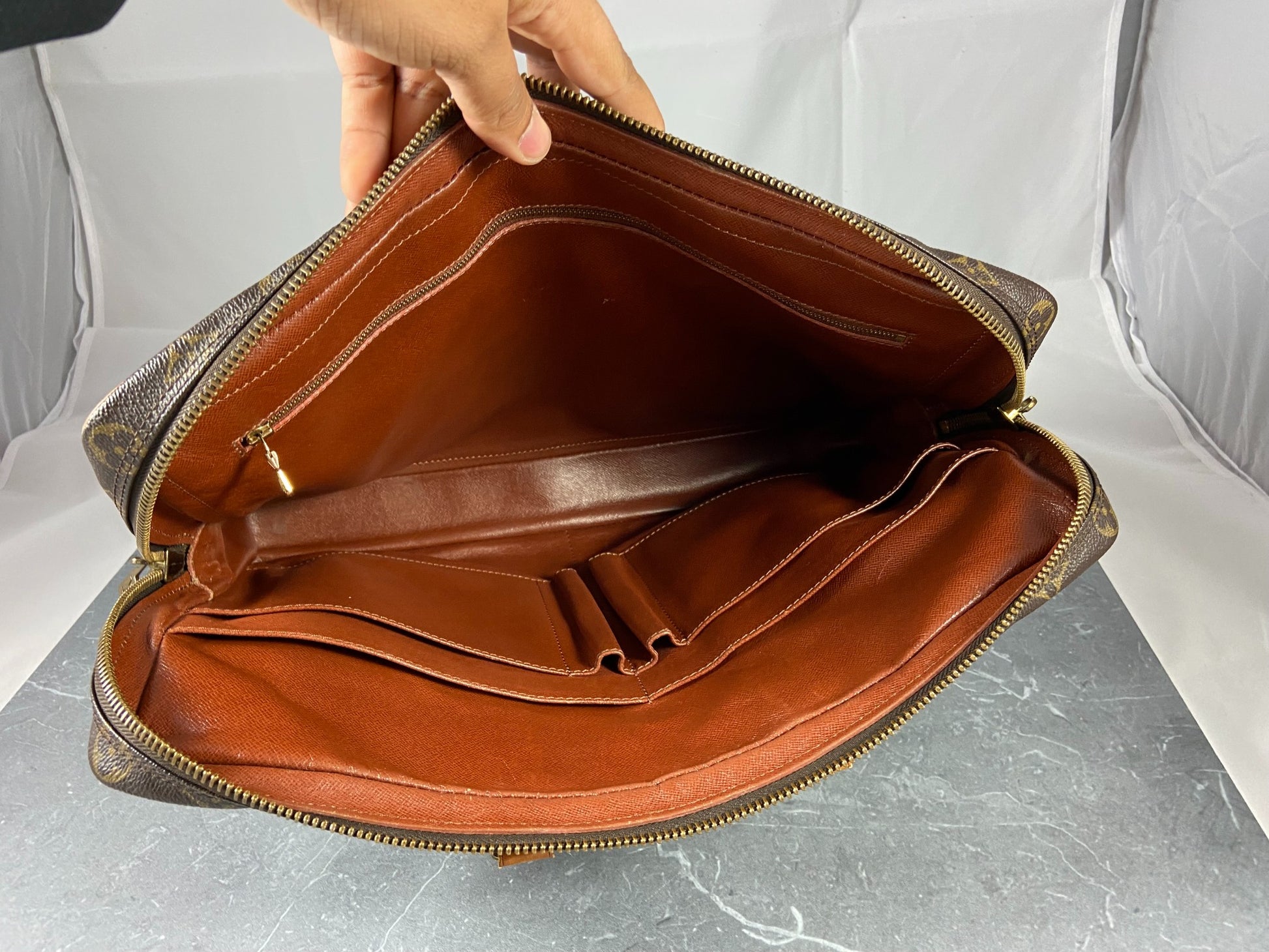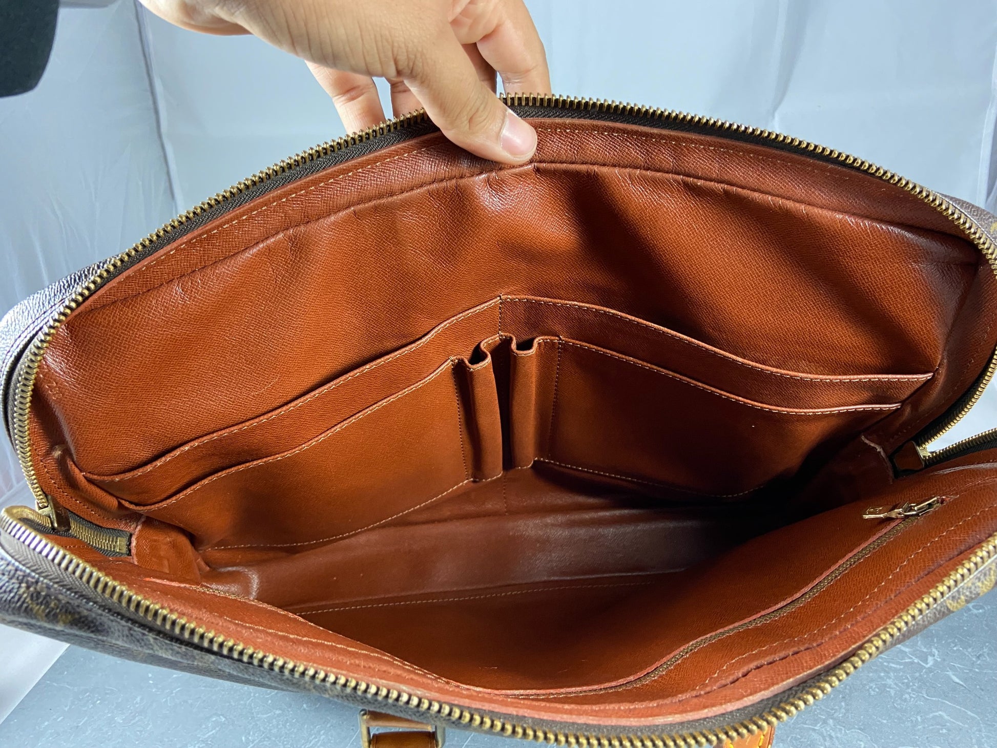 - flaw: side compartments are partially sticky - we recommend using only the large compartments - typical vintage LV Flaw