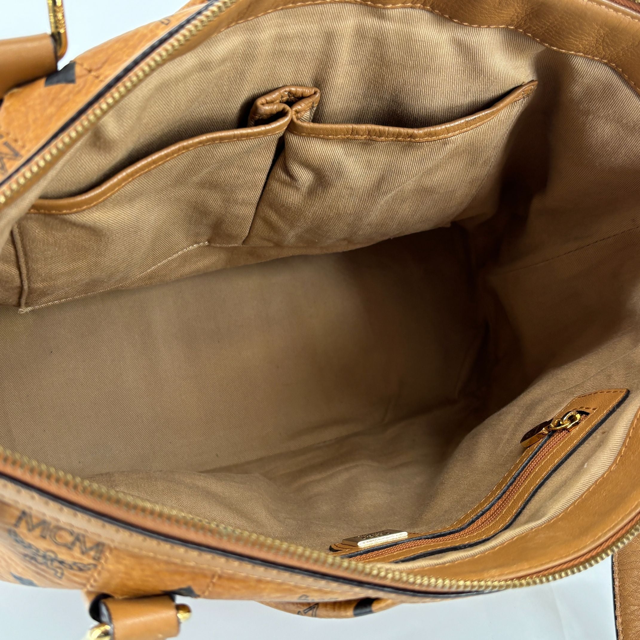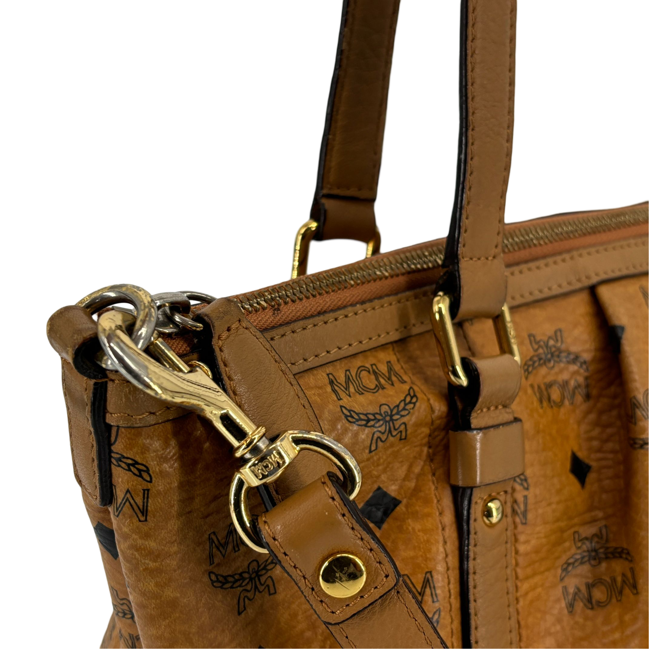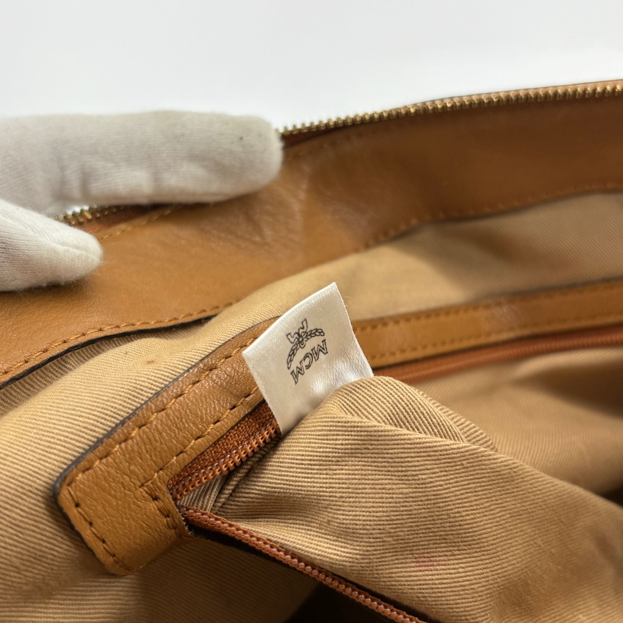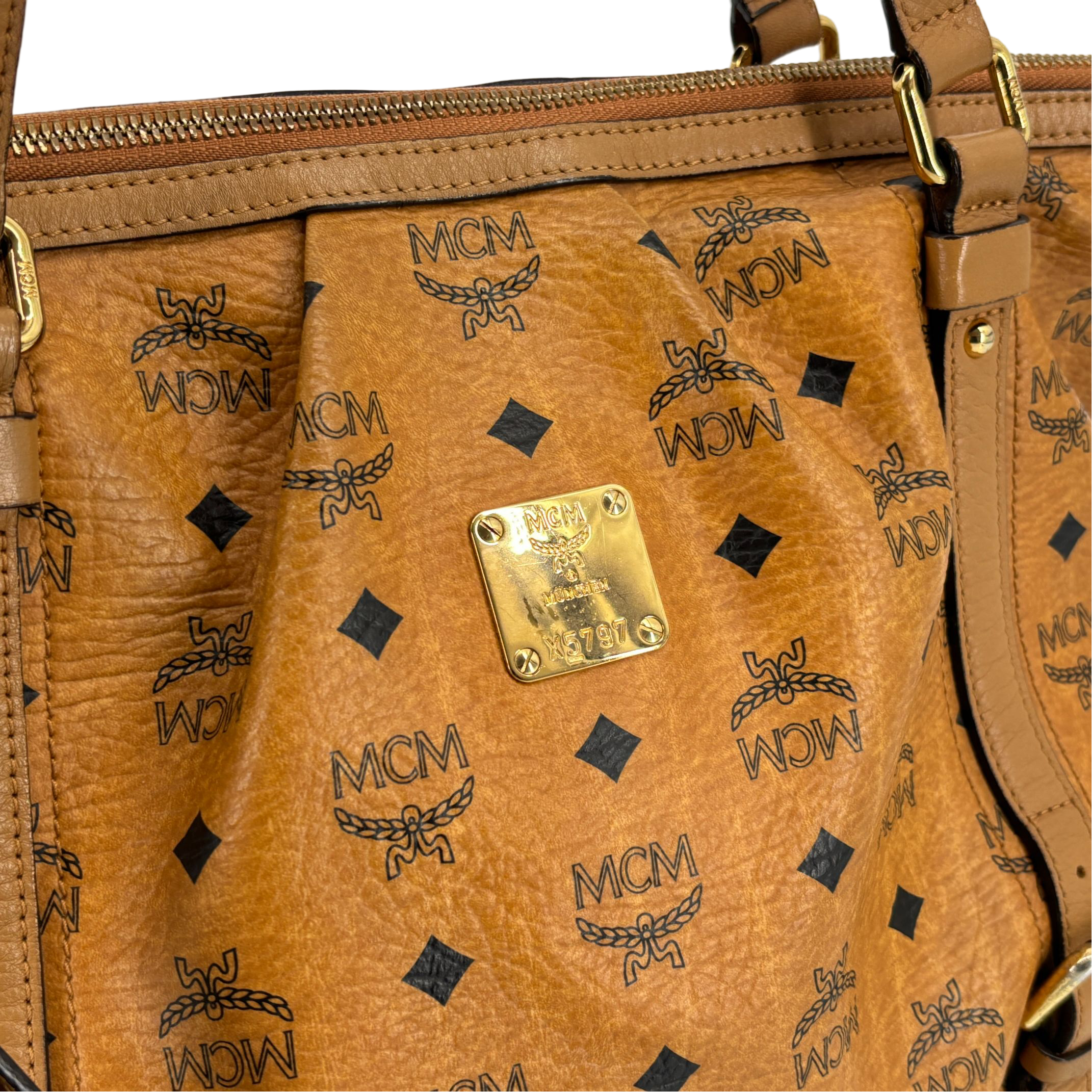MCM 2Way Tote Bag Beige Visetos Cognac Monogram