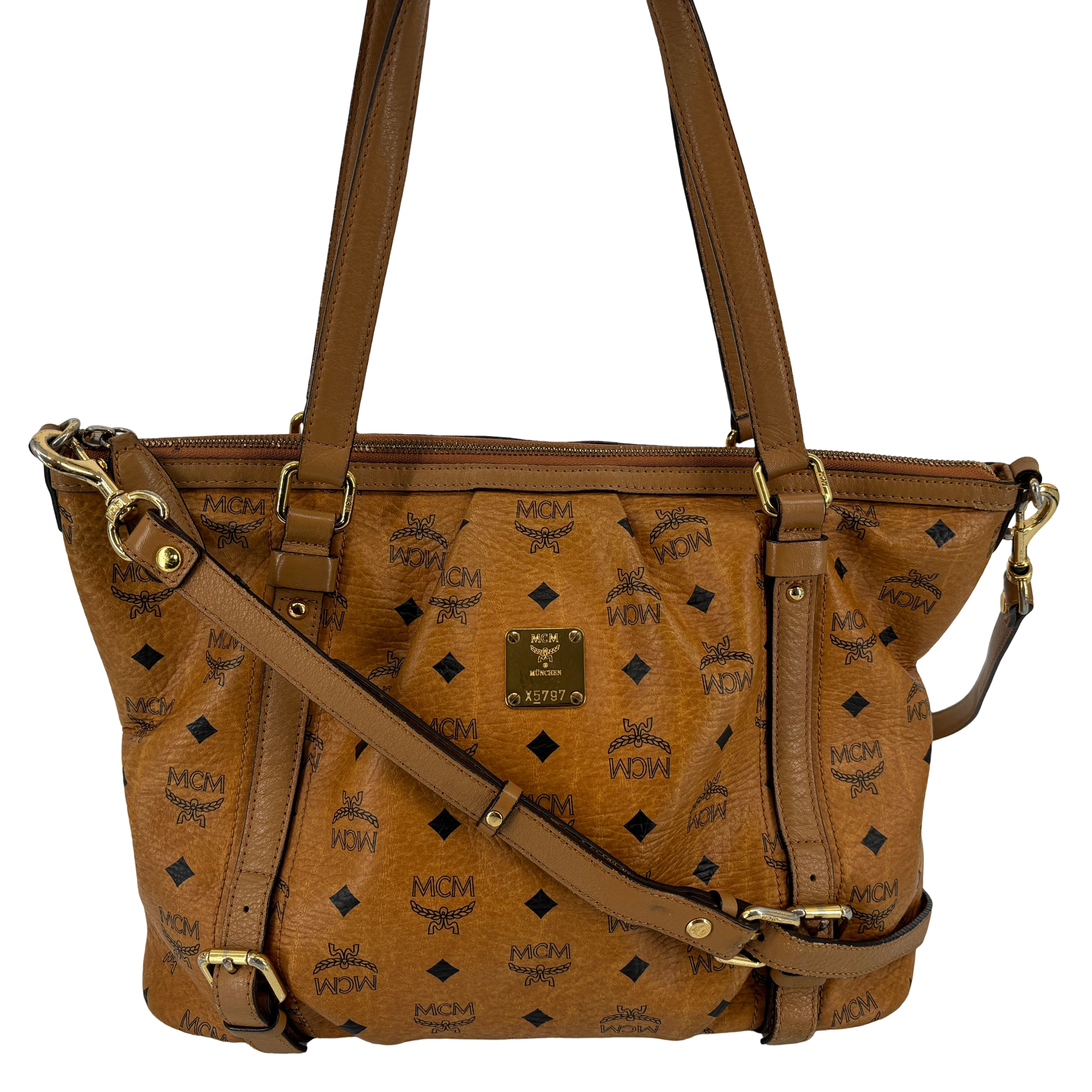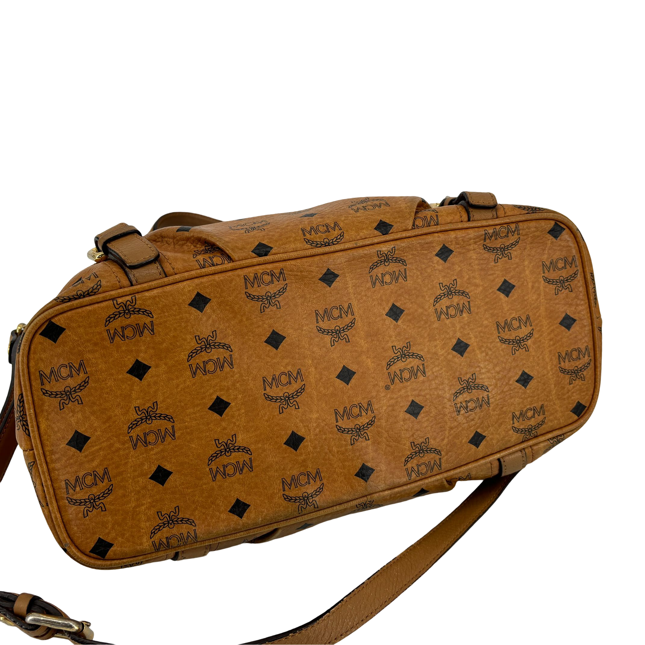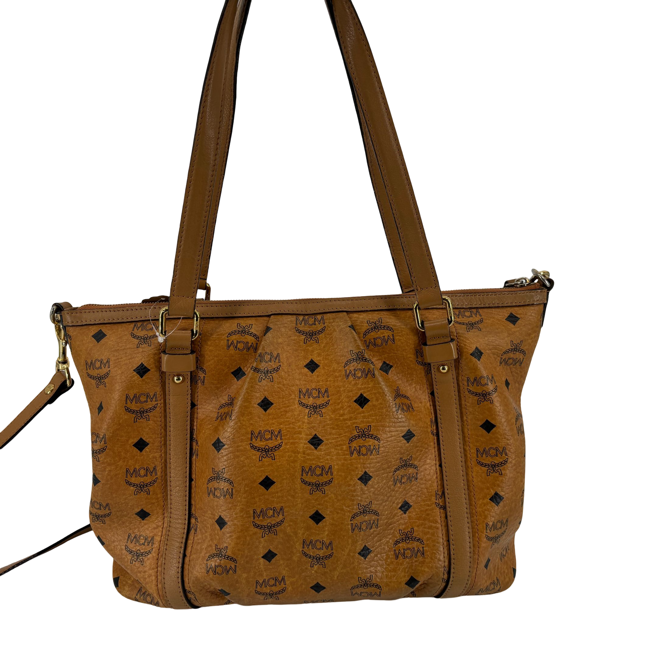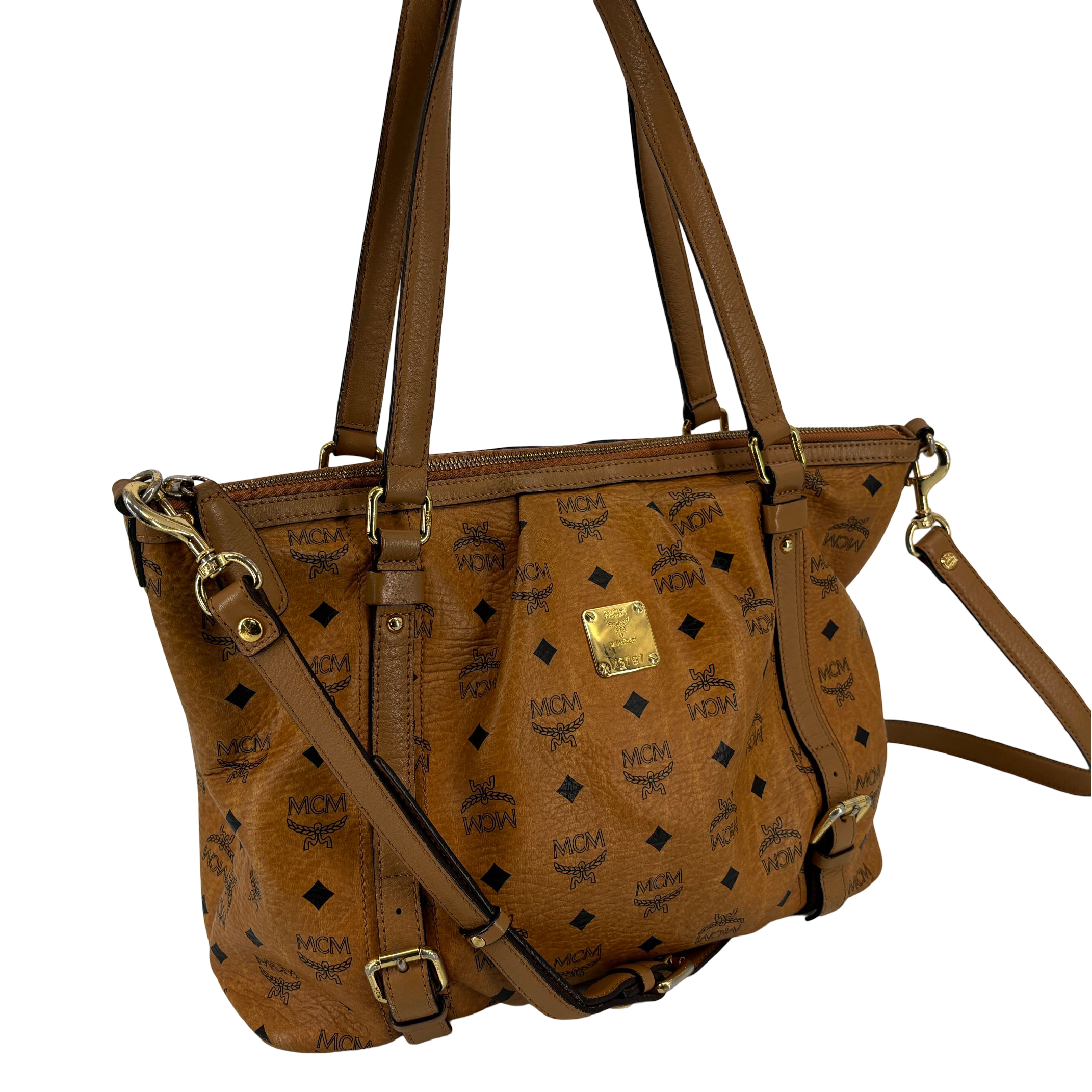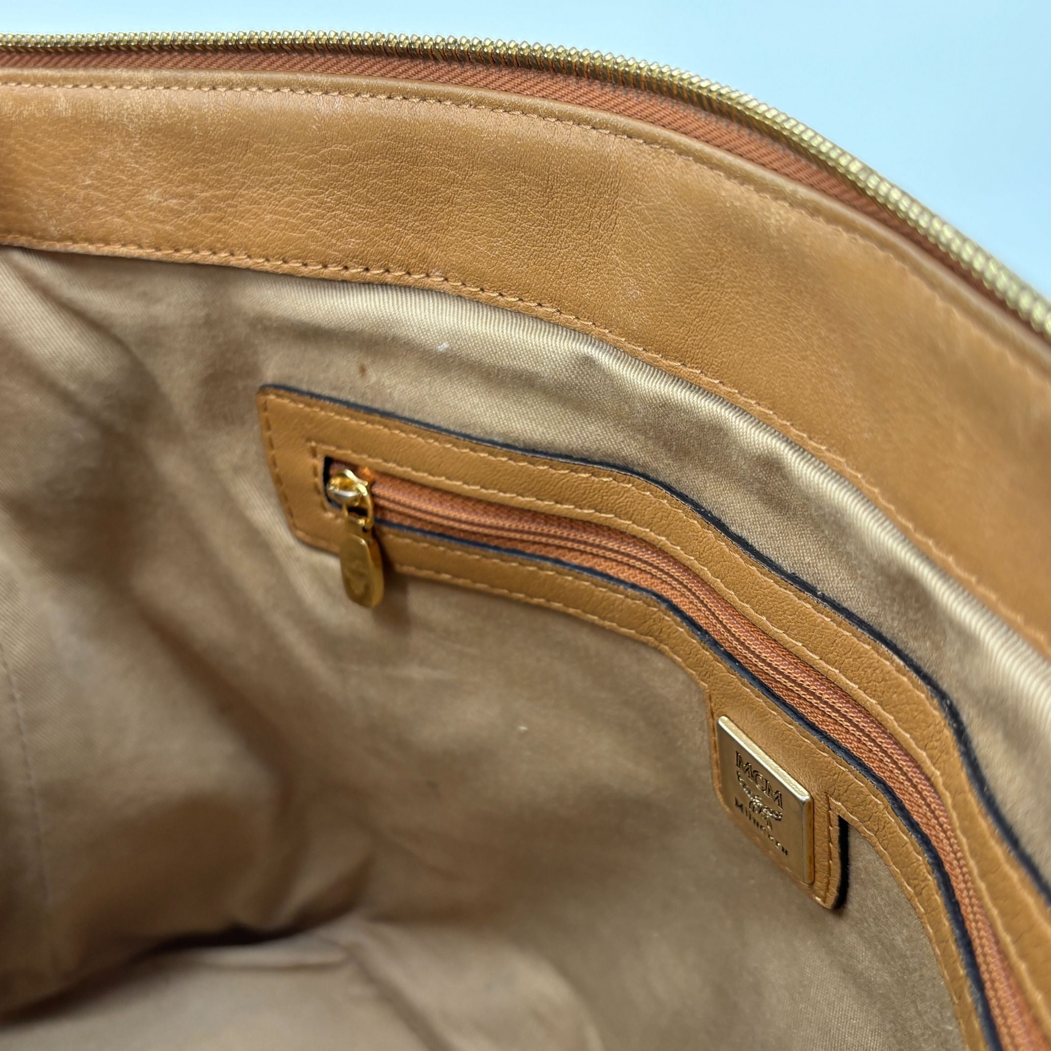 MCM 2Way Tote Bag Beige Visetos Cognac Monogram