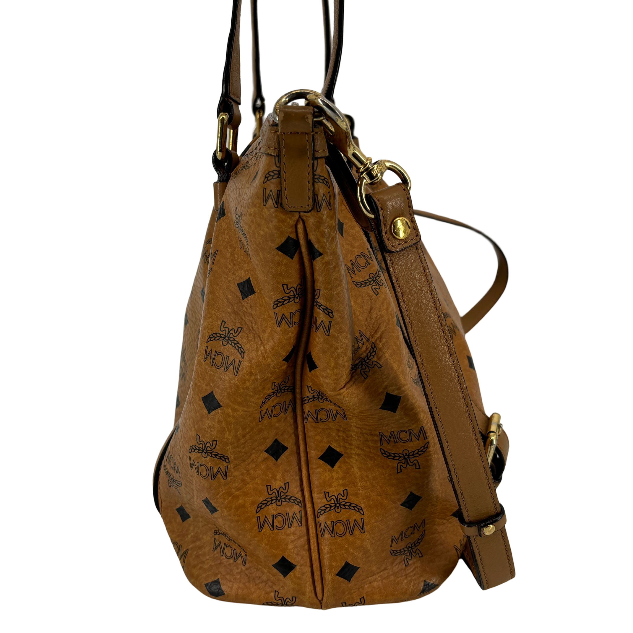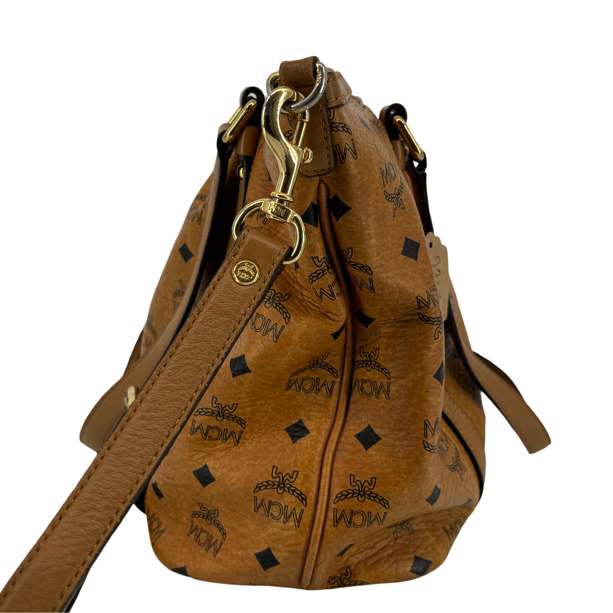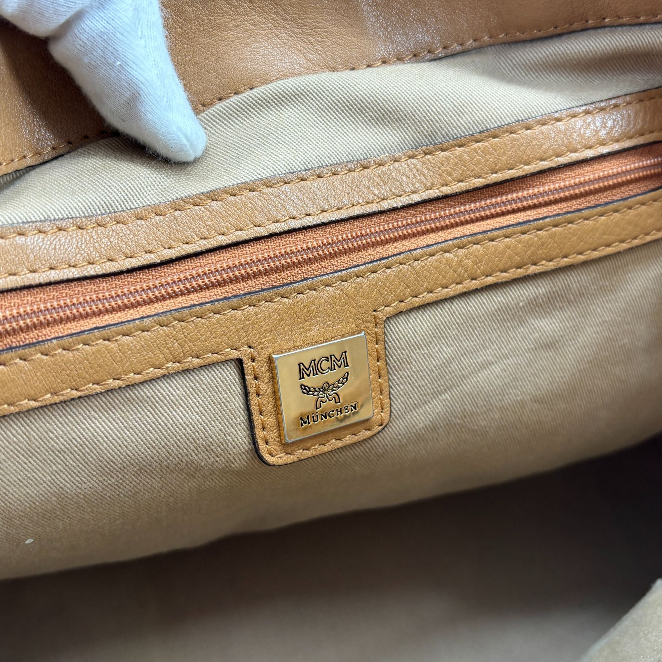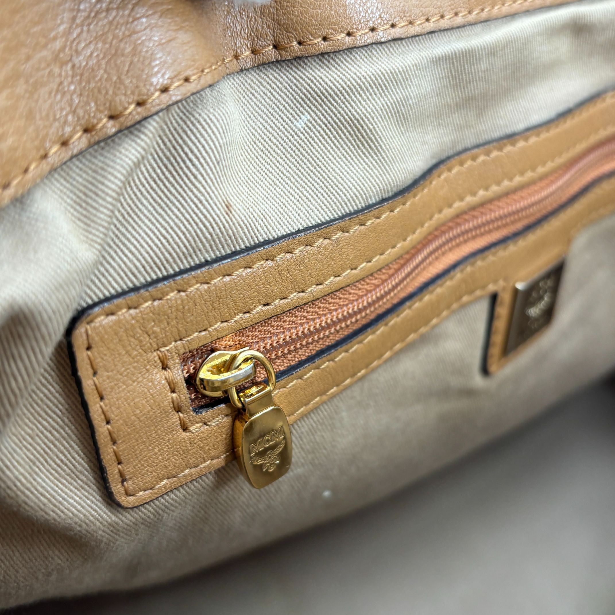 MCM 2Way Tote Bag Beige Visetos Cognac Monogram