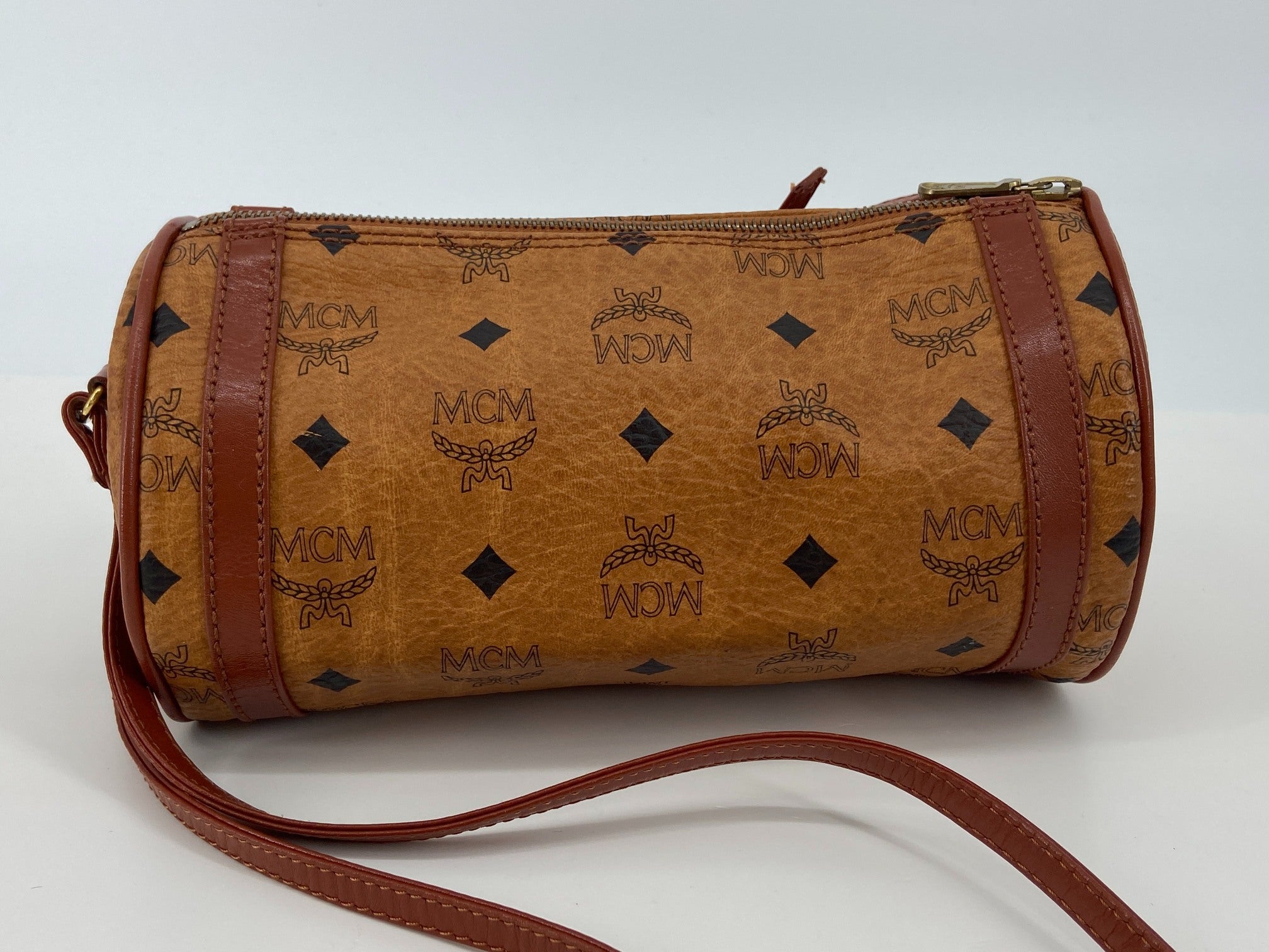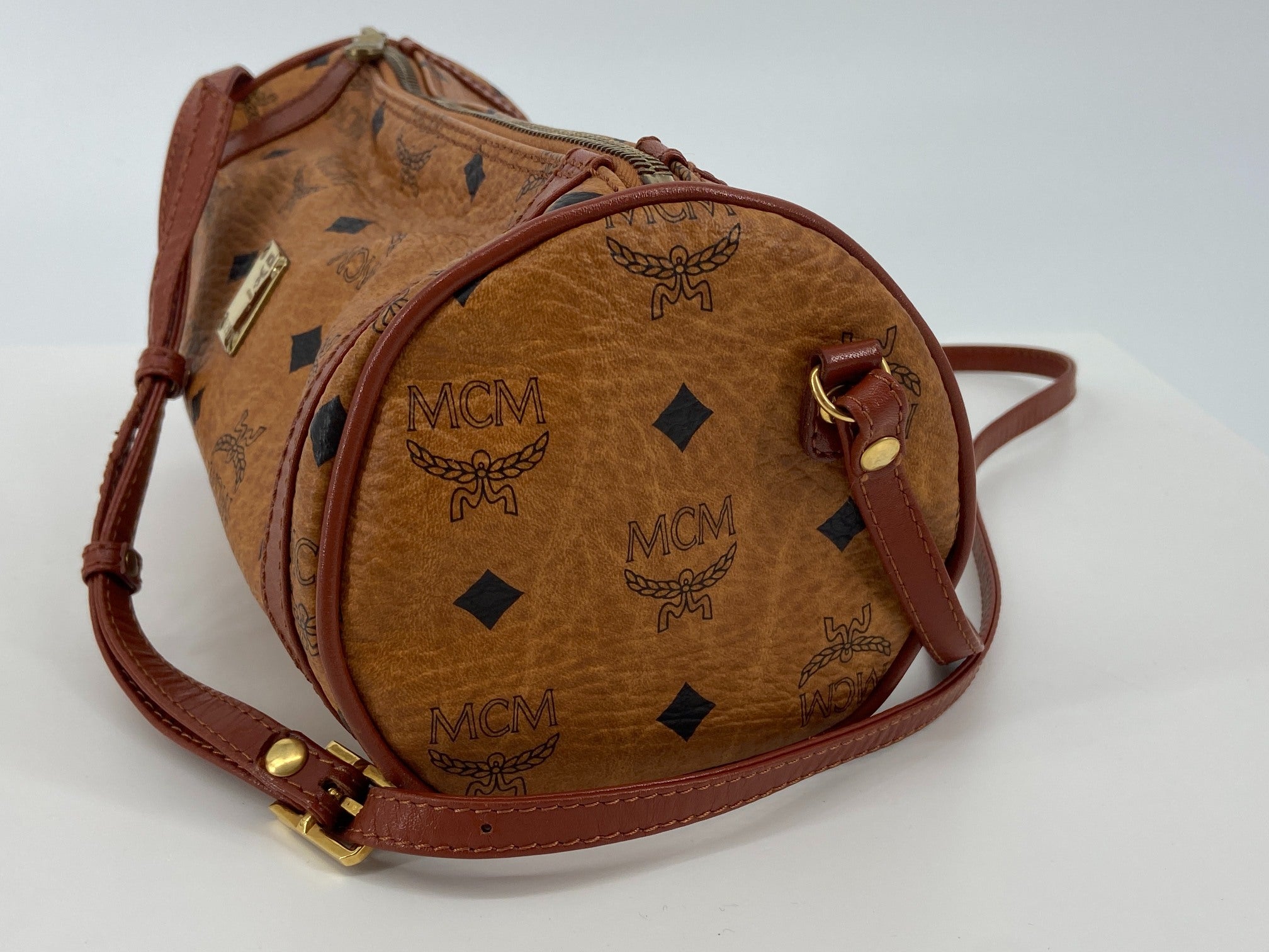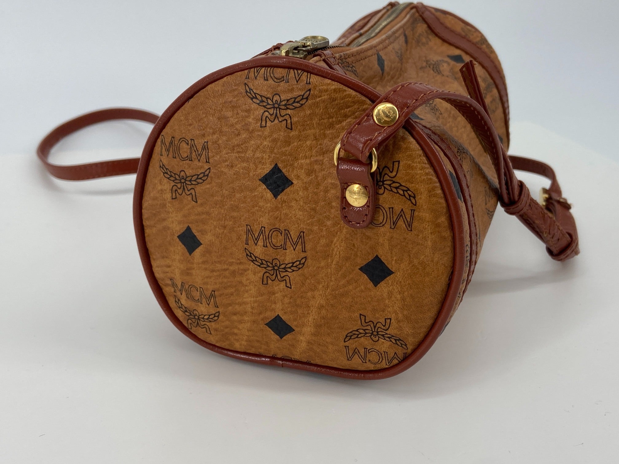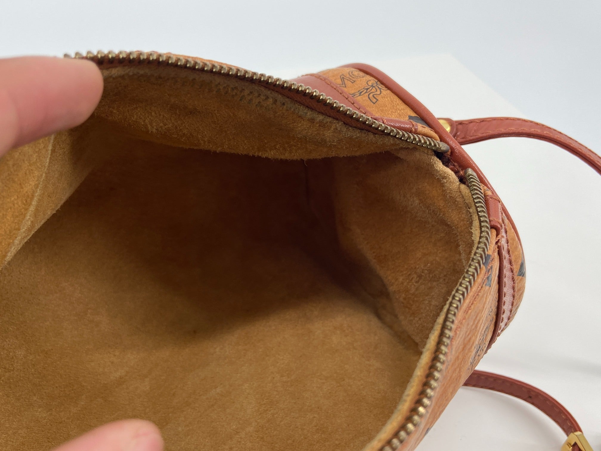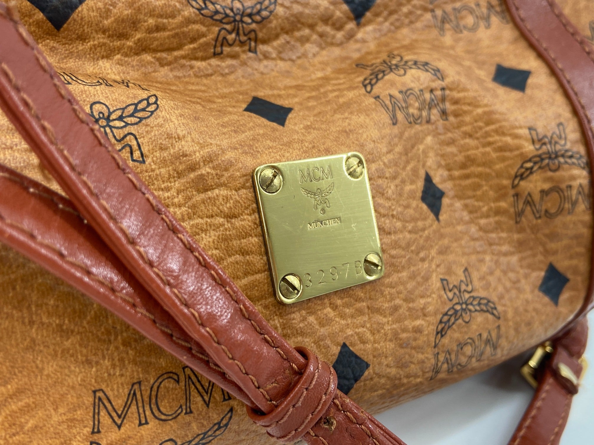 MCM Shoulder Bag Beige Visetos Cognac Monogram
