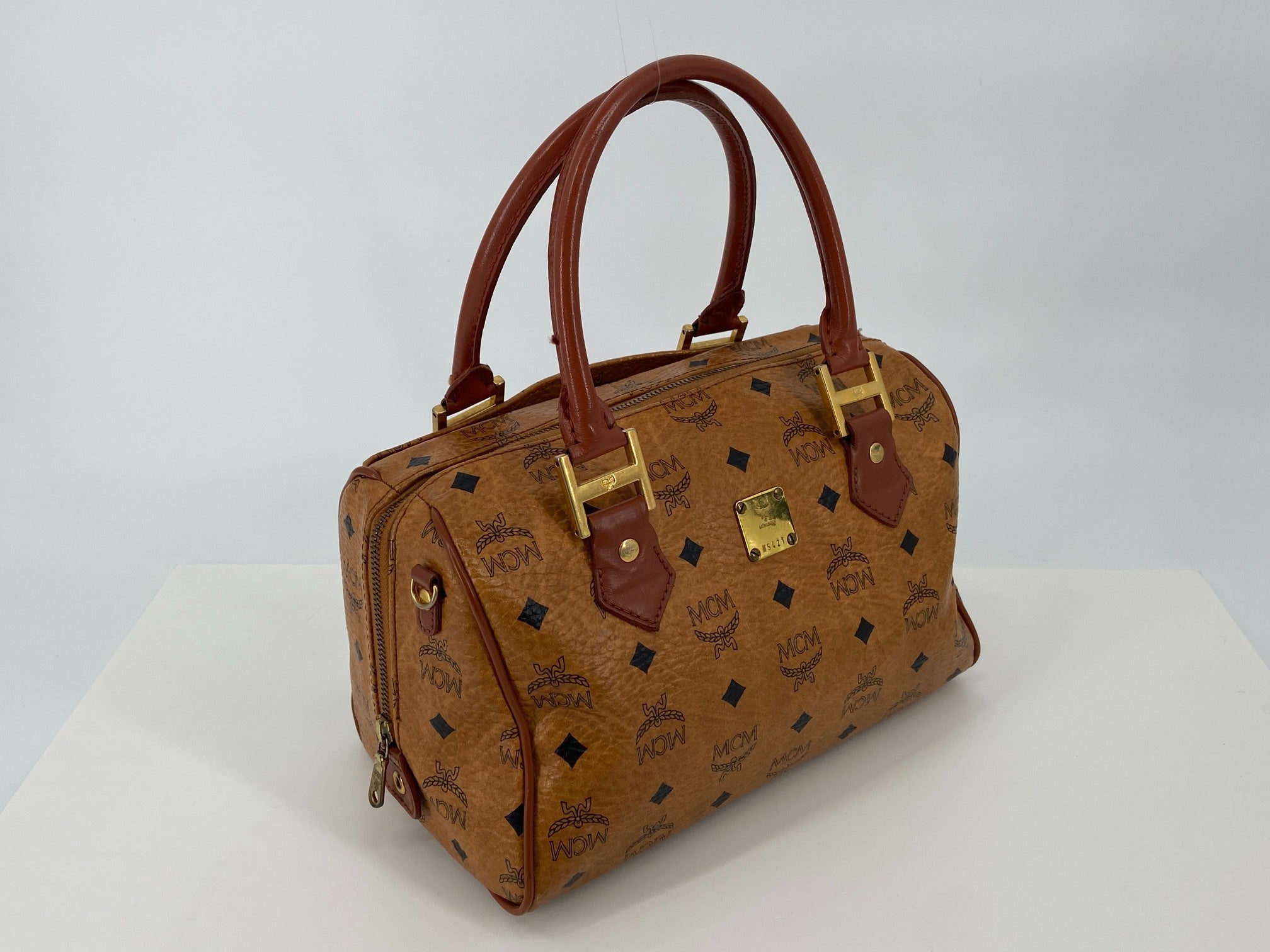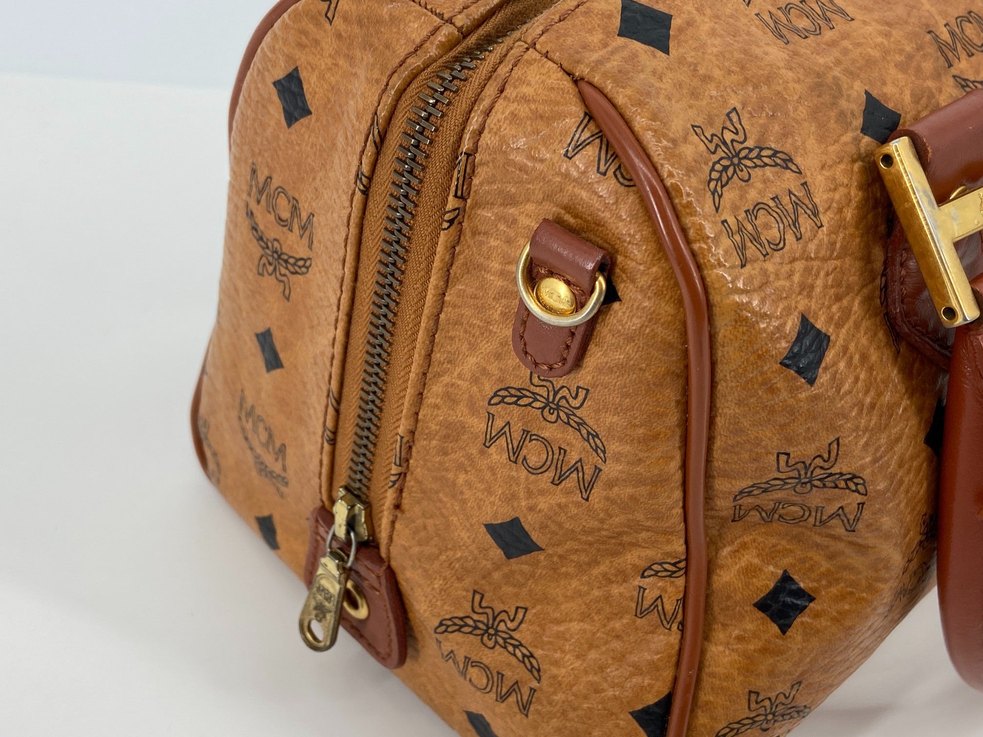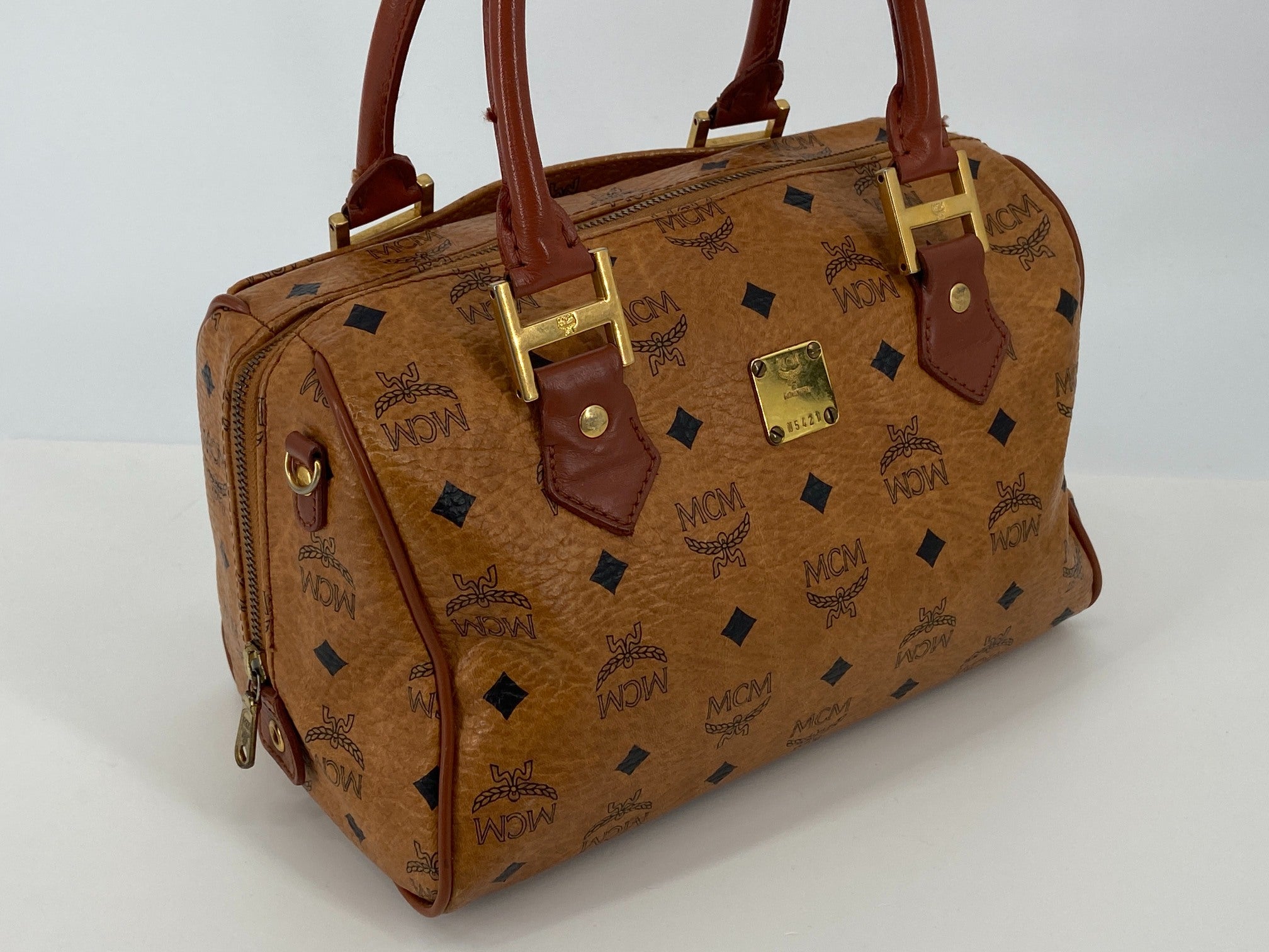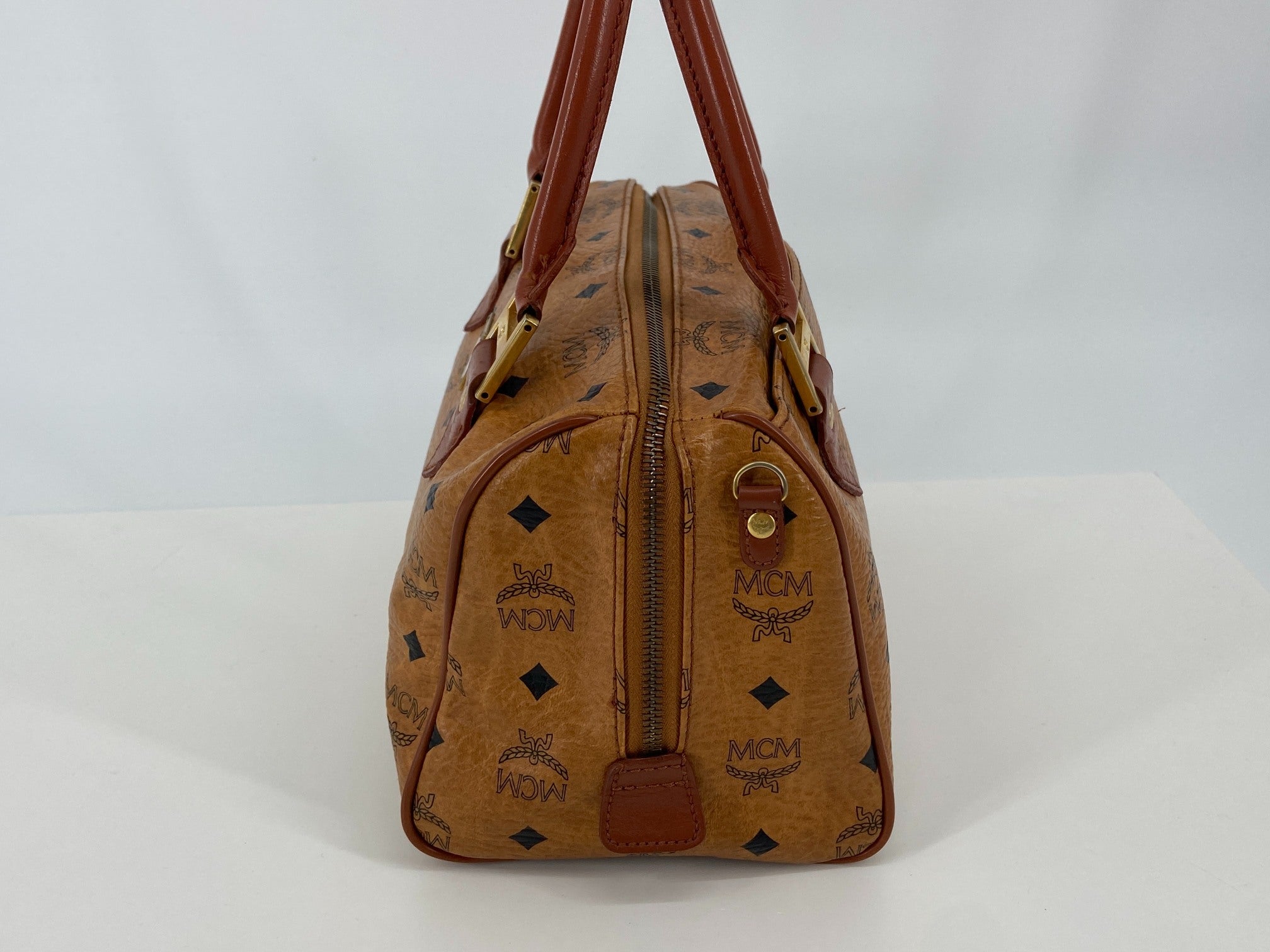 MCM Hand / Boston Bag Beige Visetos Cognac Monogram