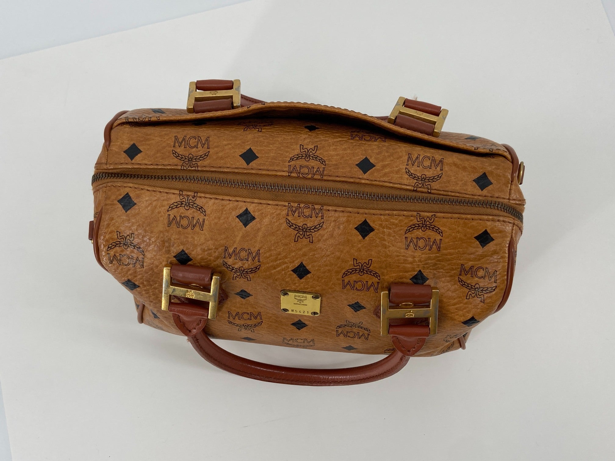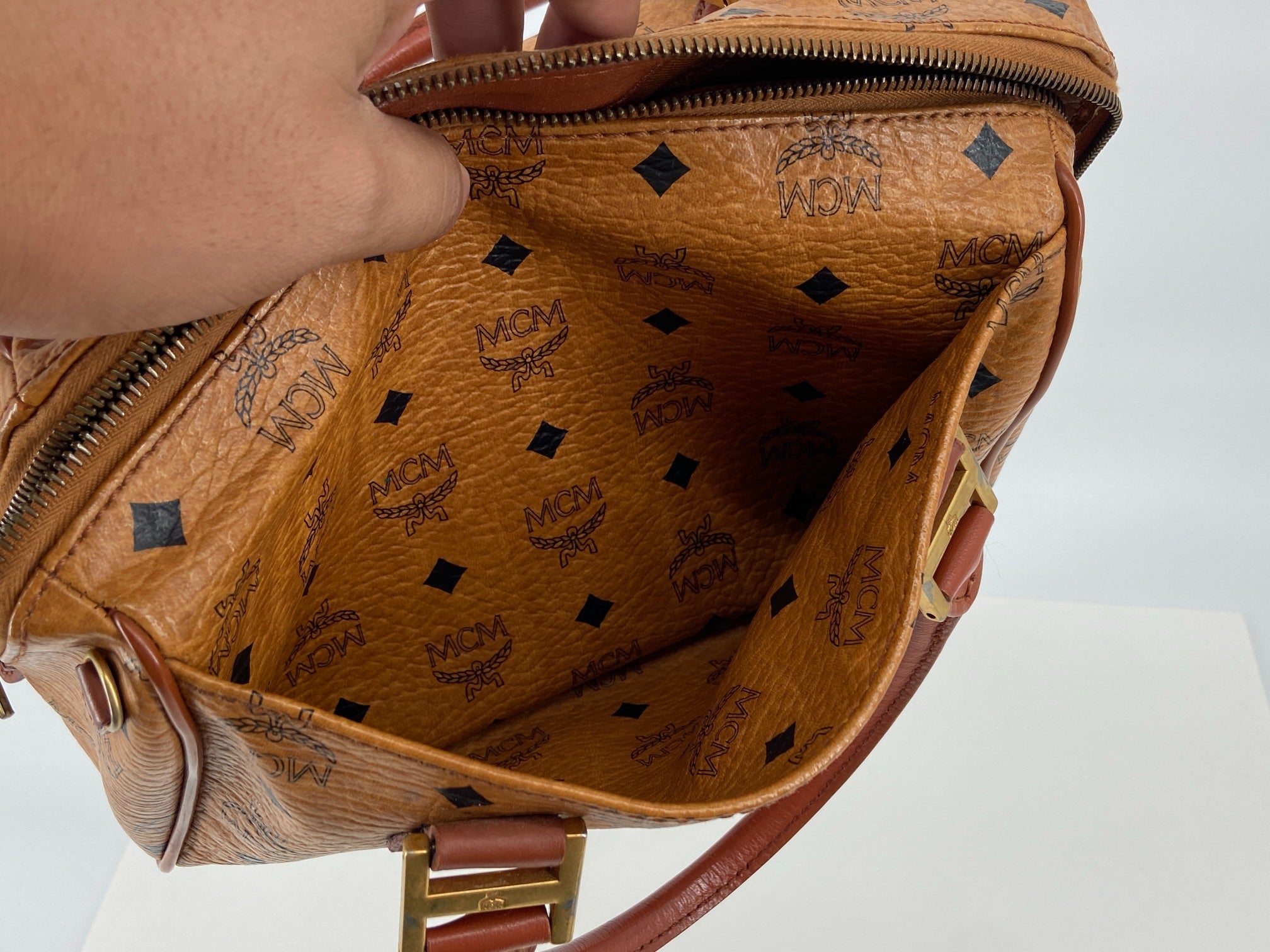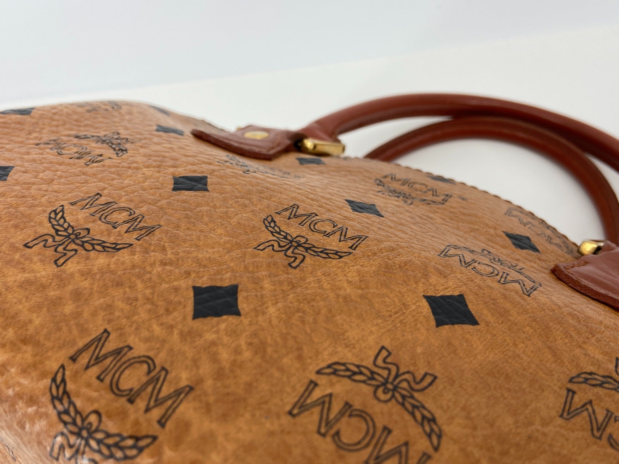 MCM Hand / Boston Bag Beige Visetos Cognac Monogram