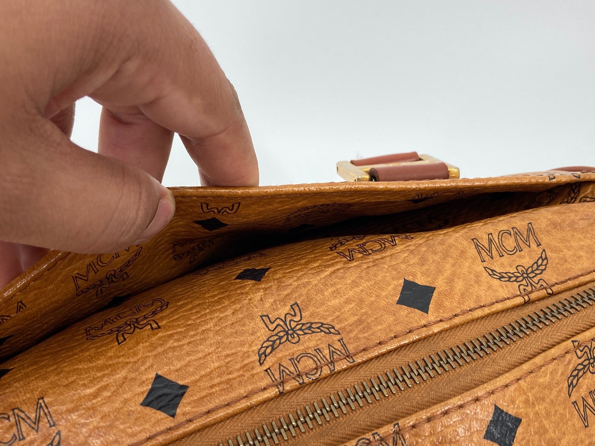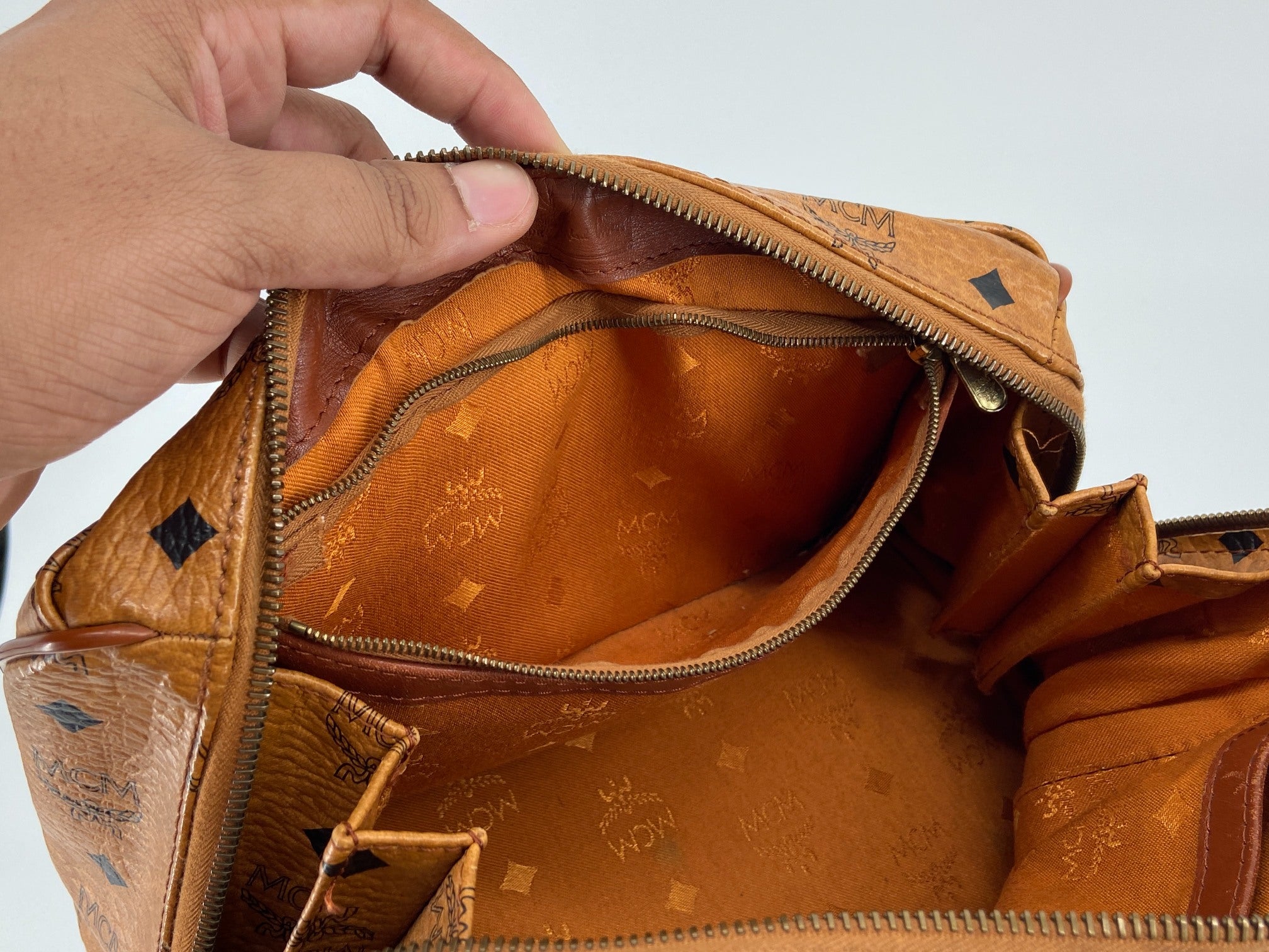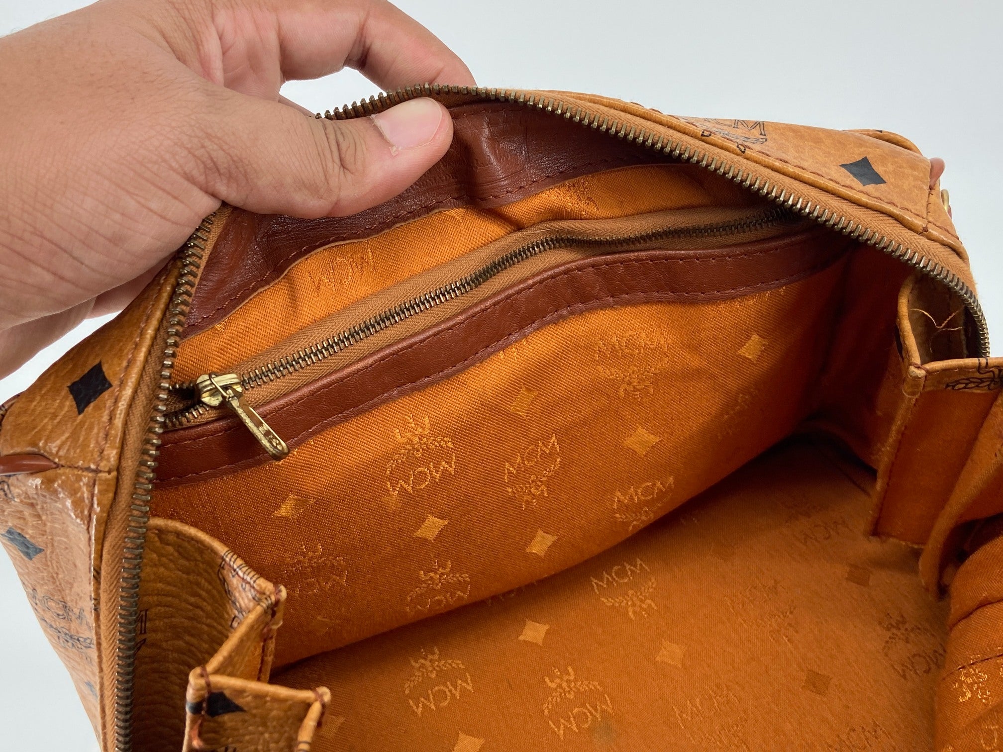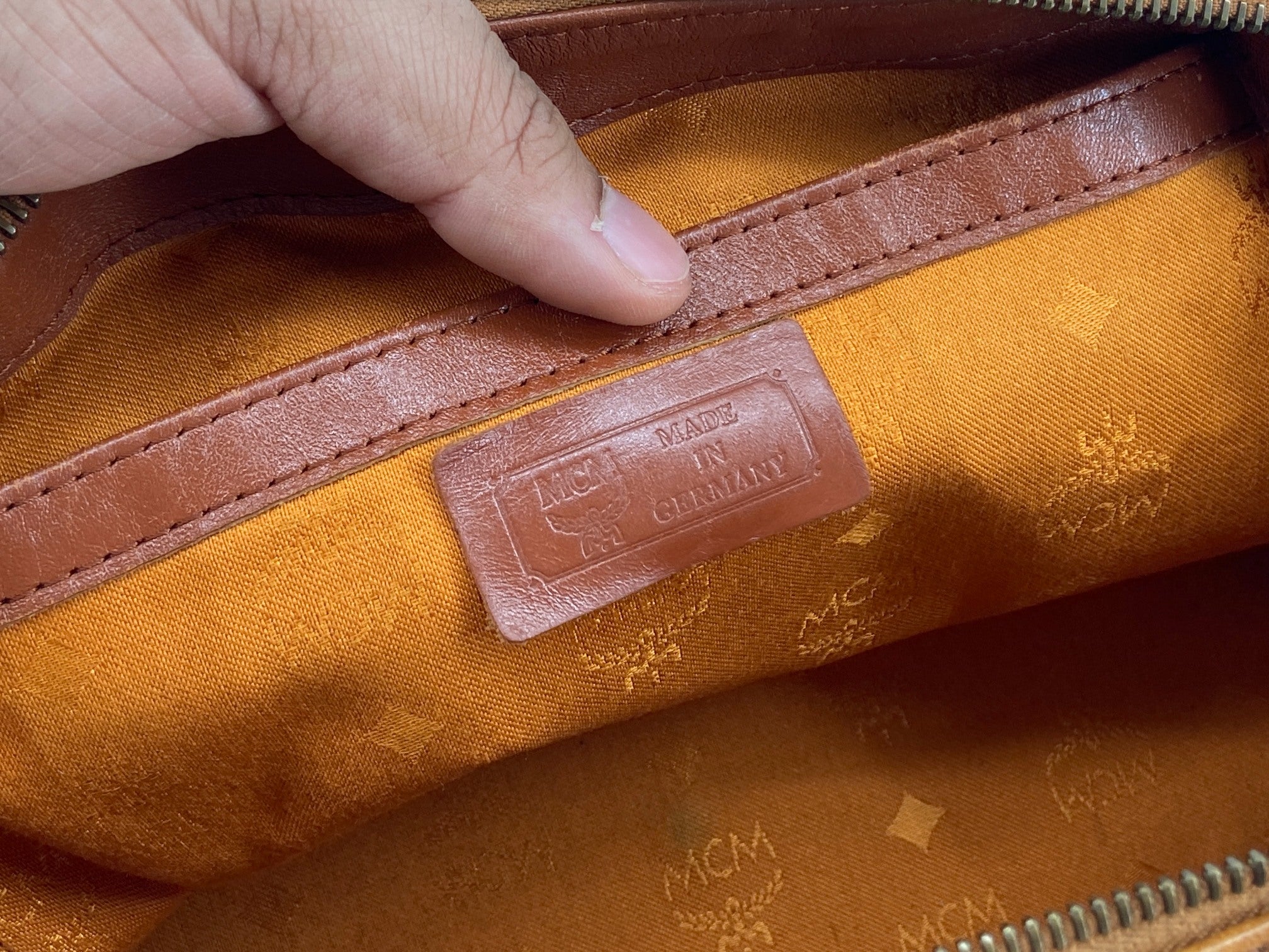 MCM Hand / Boston Bag Beige Visetos Cognac Monogram