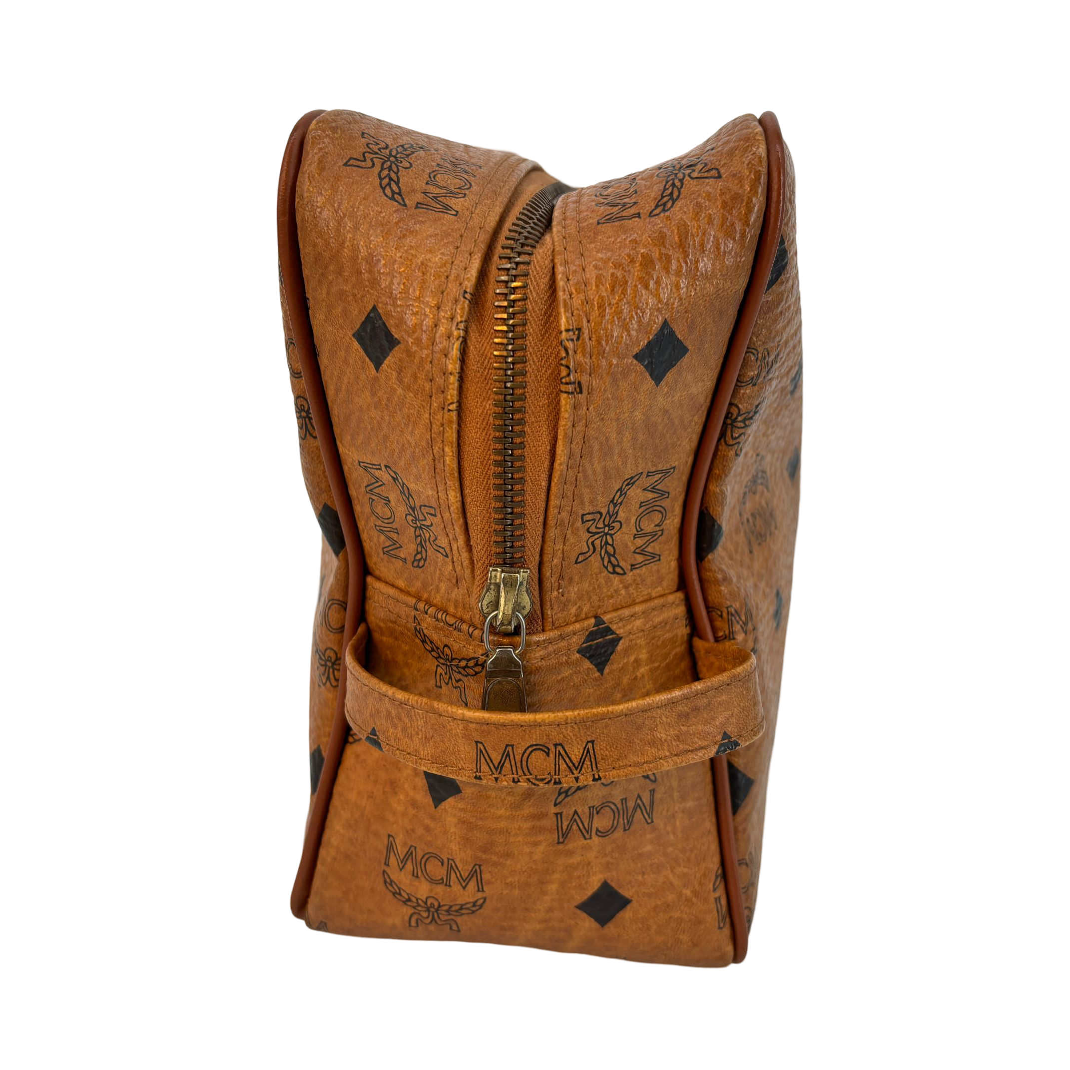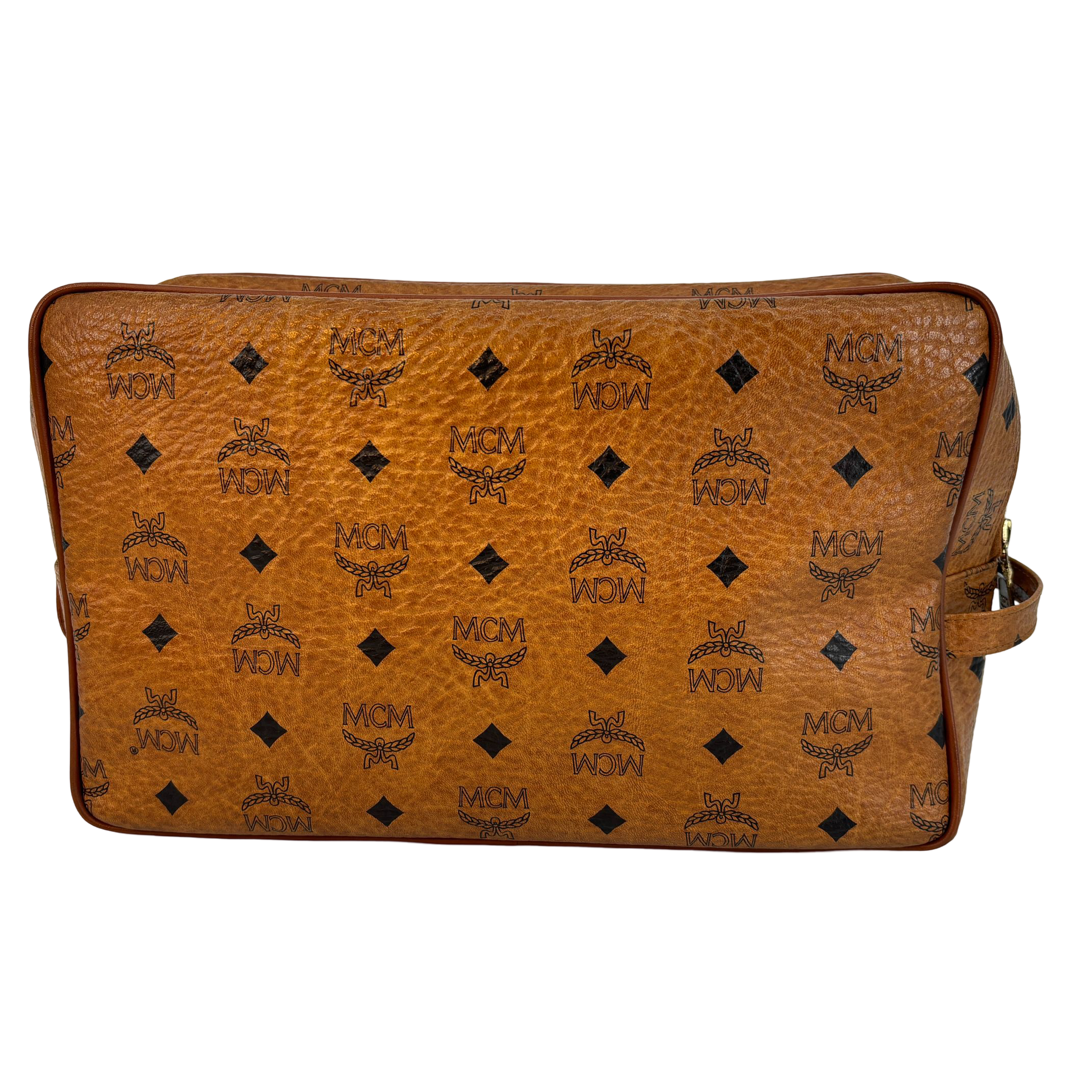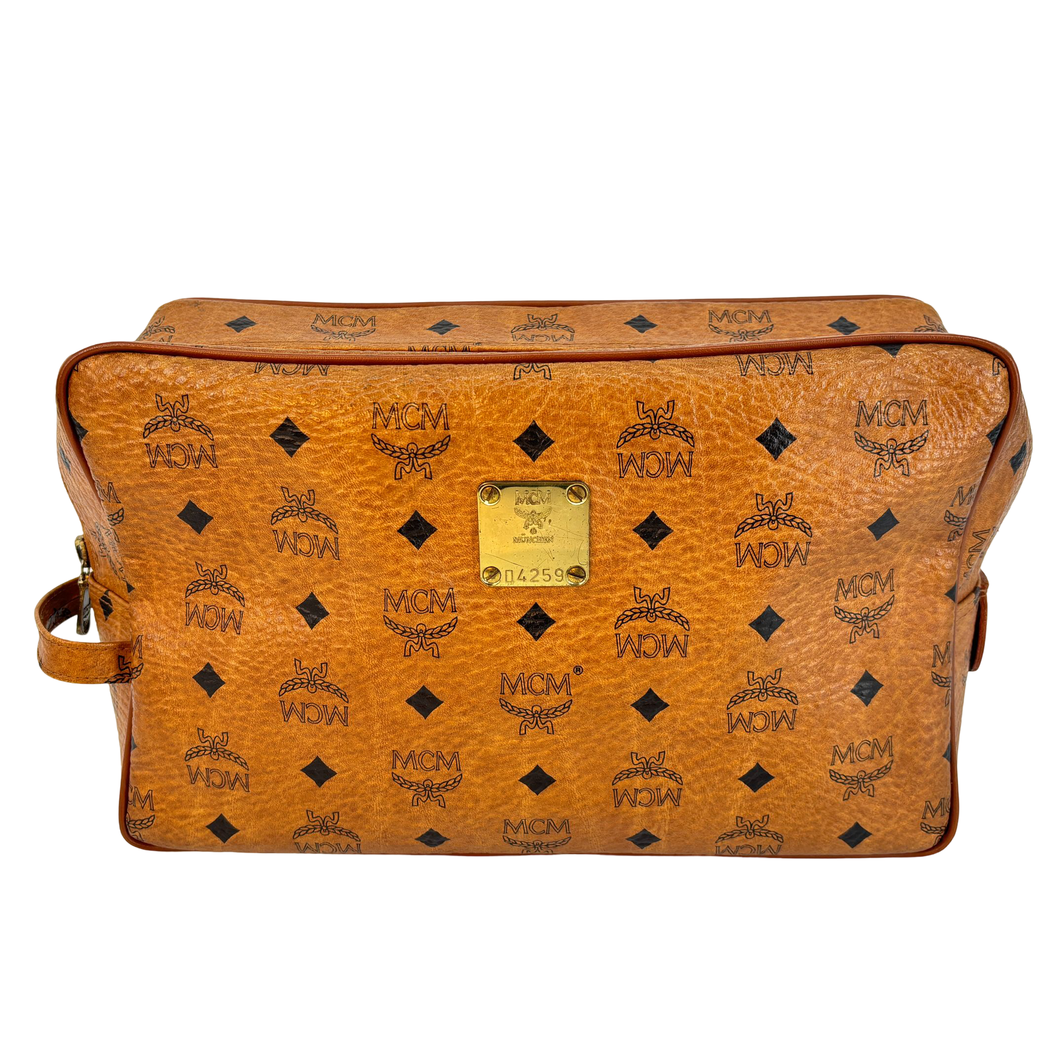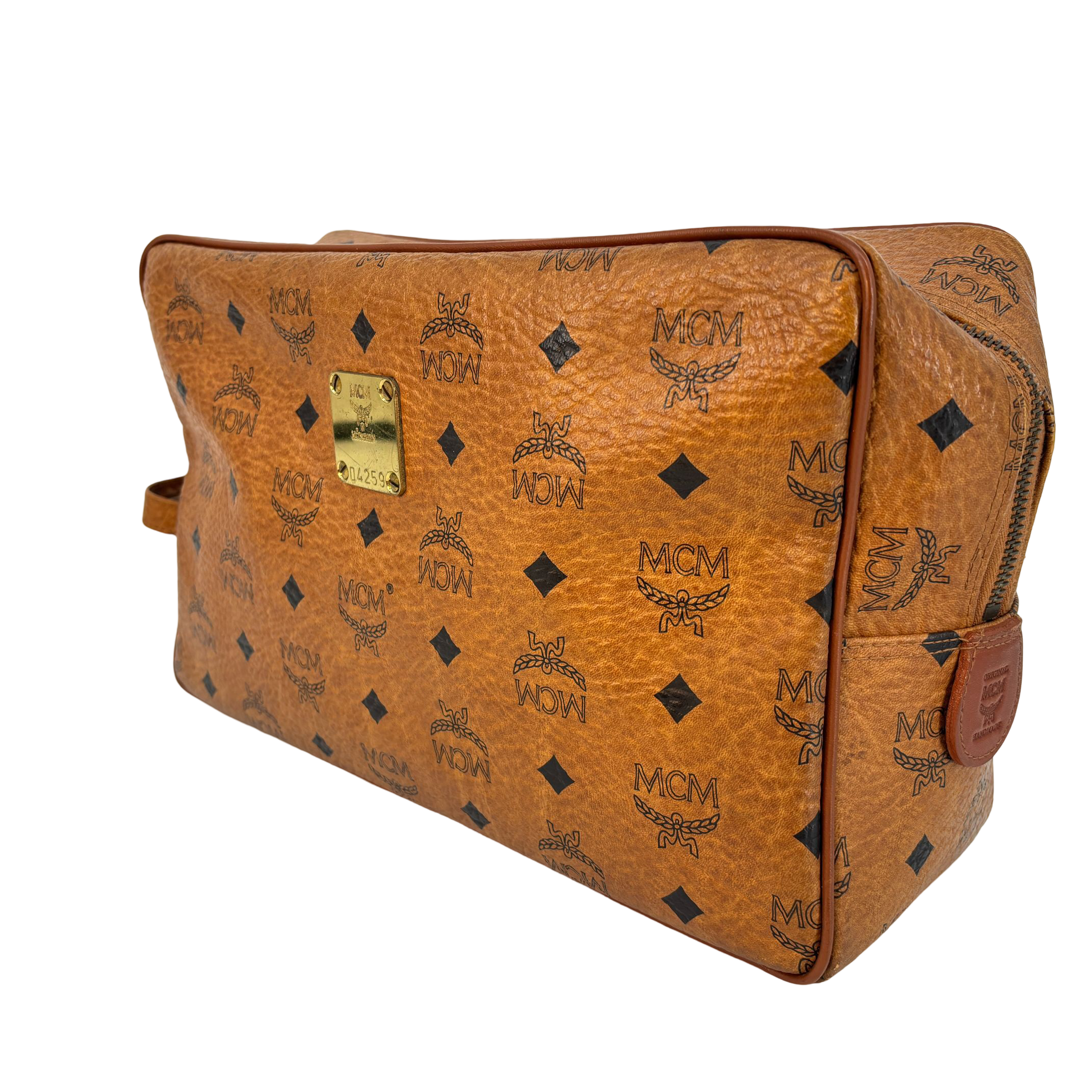 MCM Toiletry Pouch Beige Visetos Cognac Monogram