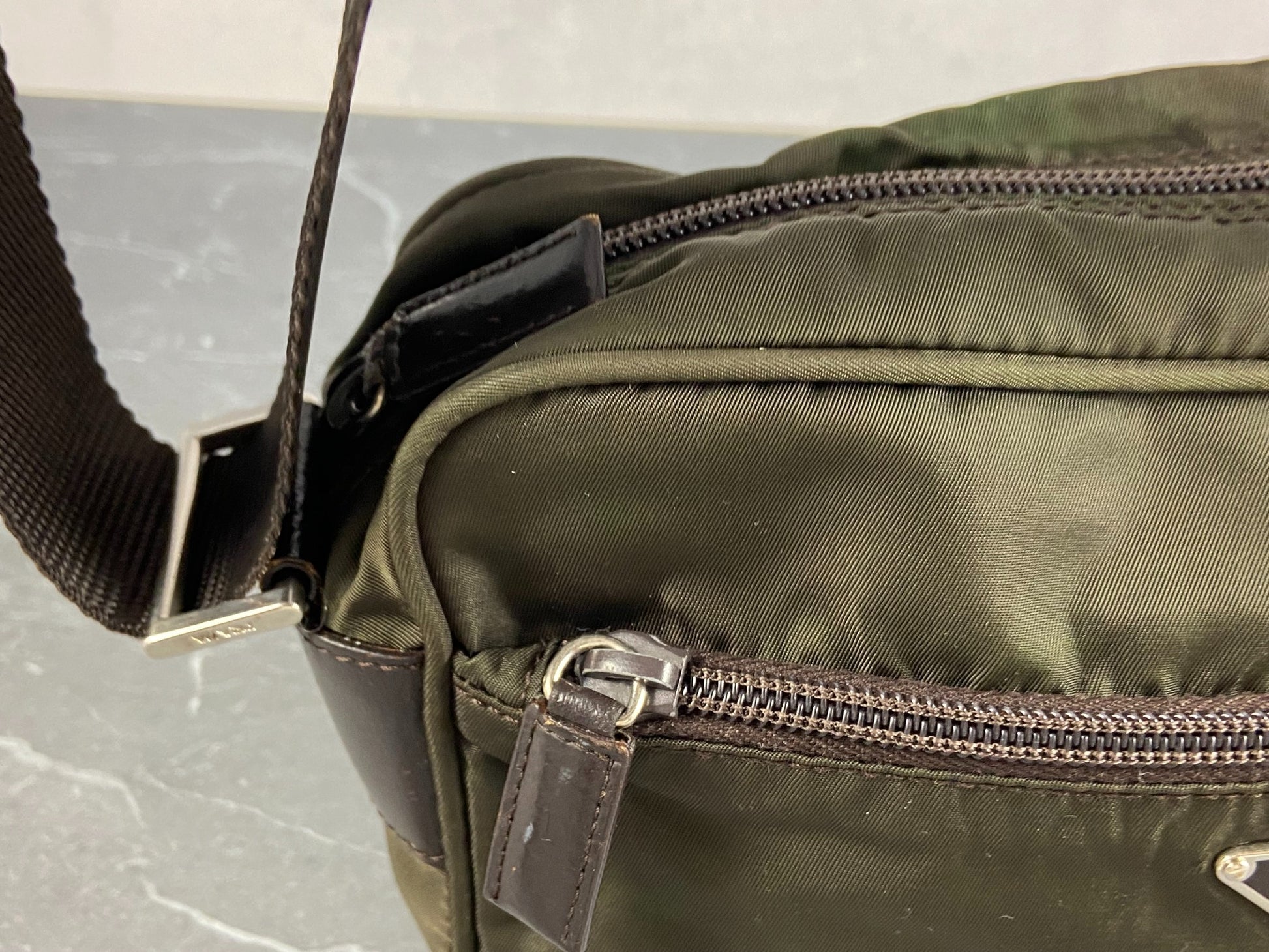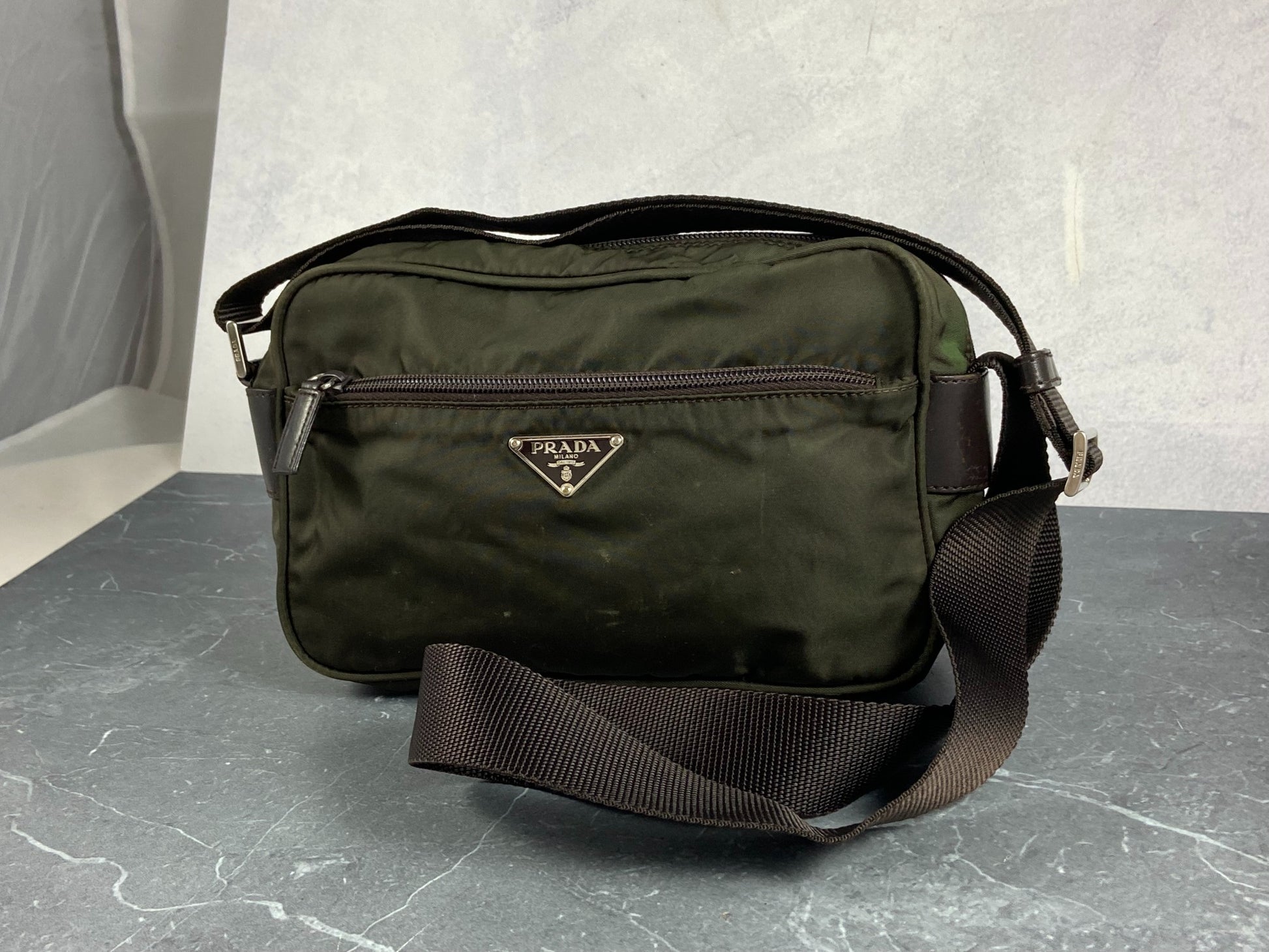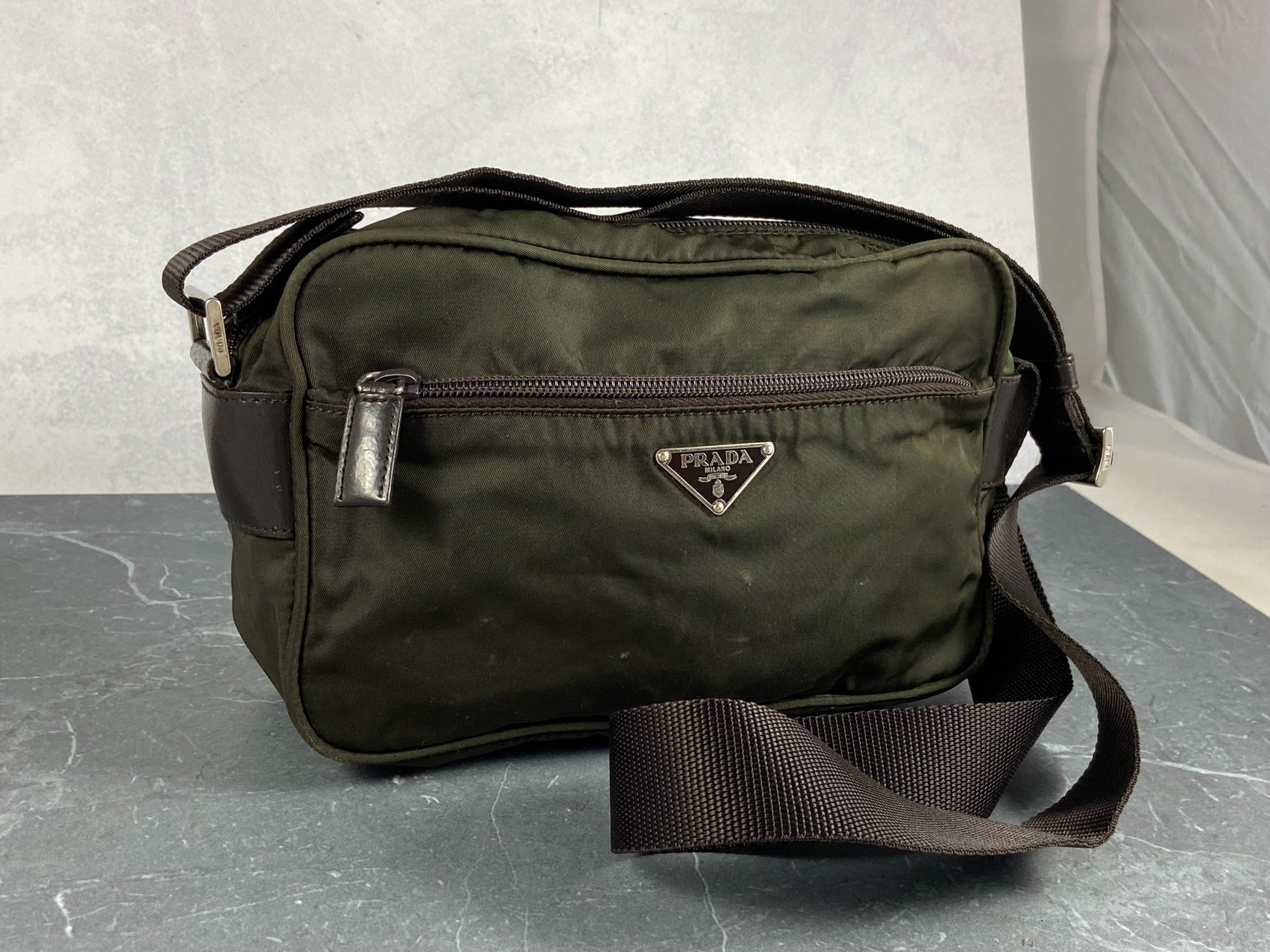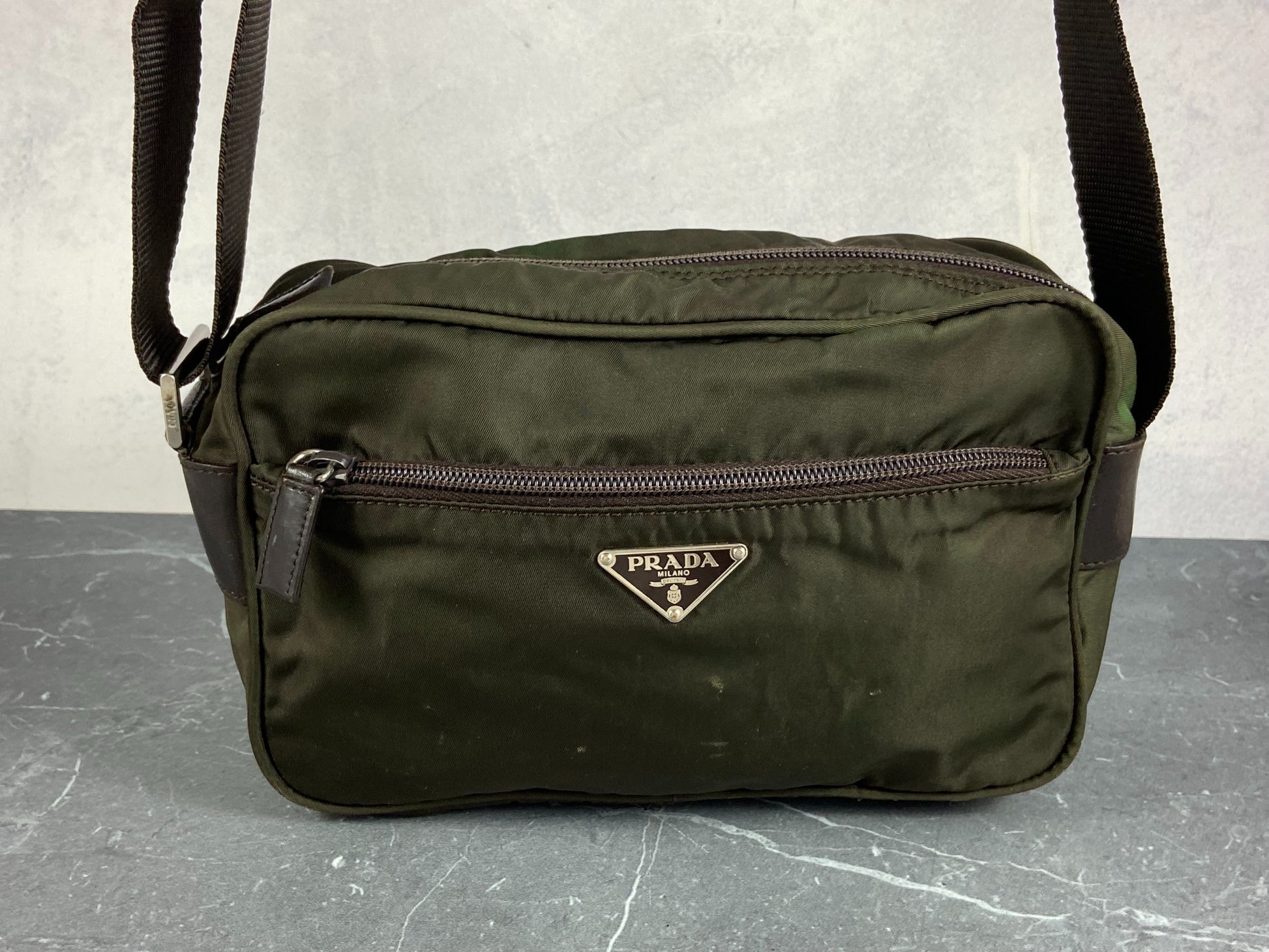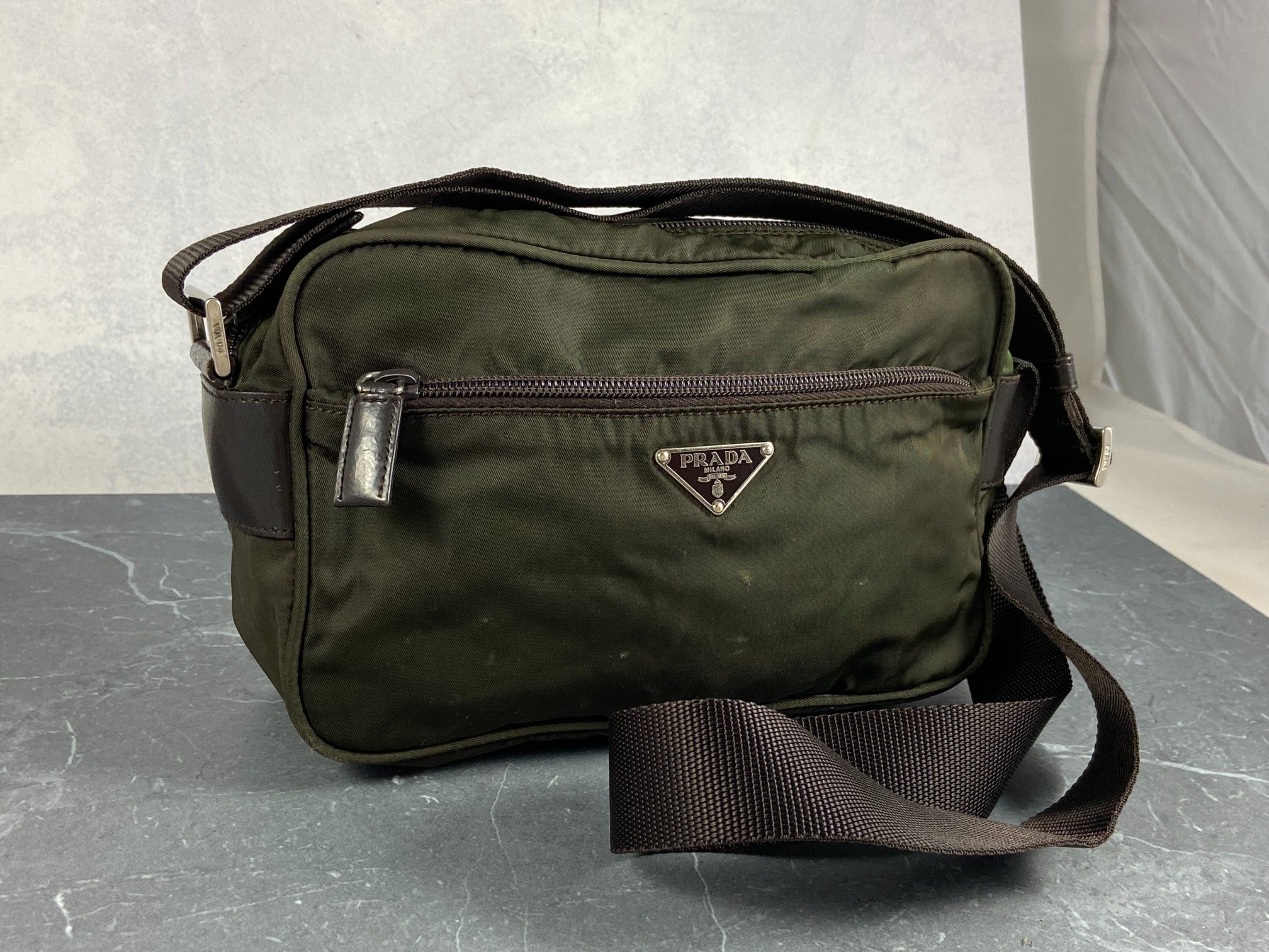 - Vintage Prada shoulder / crossbody / messenger bag in Dark Green