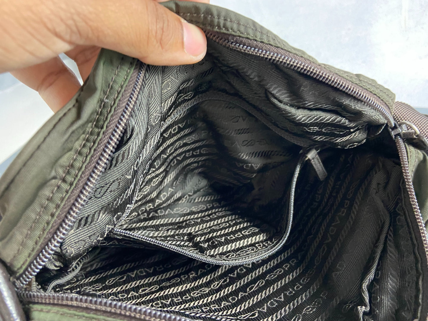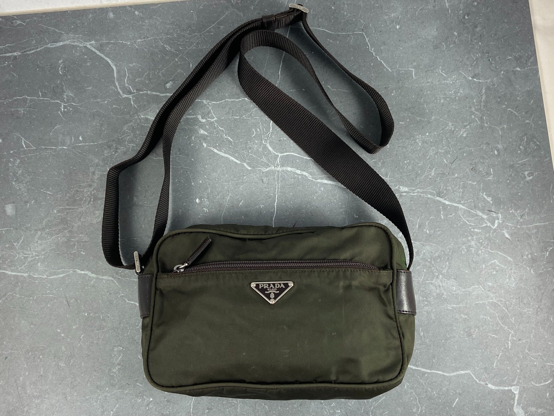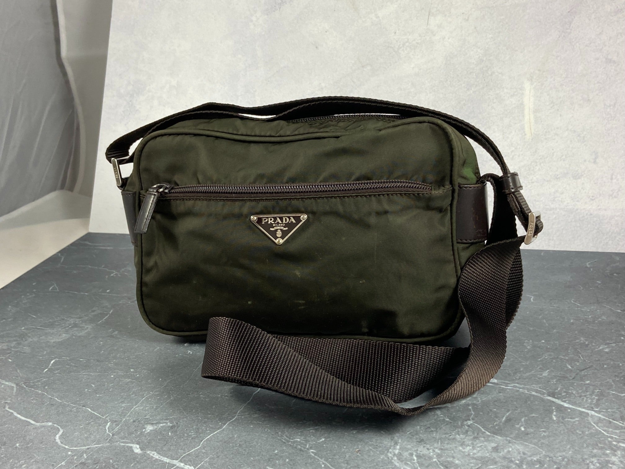 Prada B9061 Tessuto Nylon Shoulder / Messenger Bag Dark Green