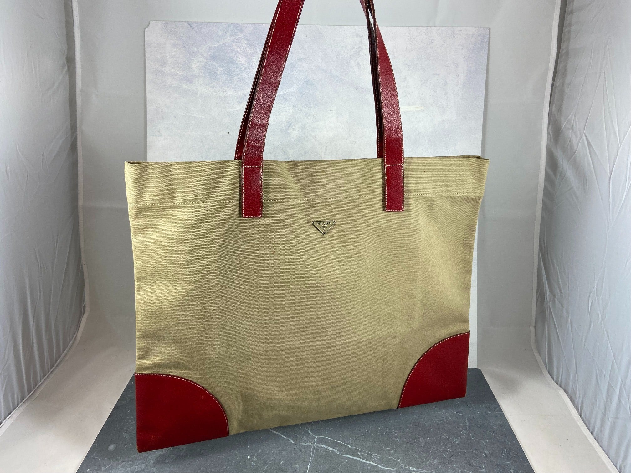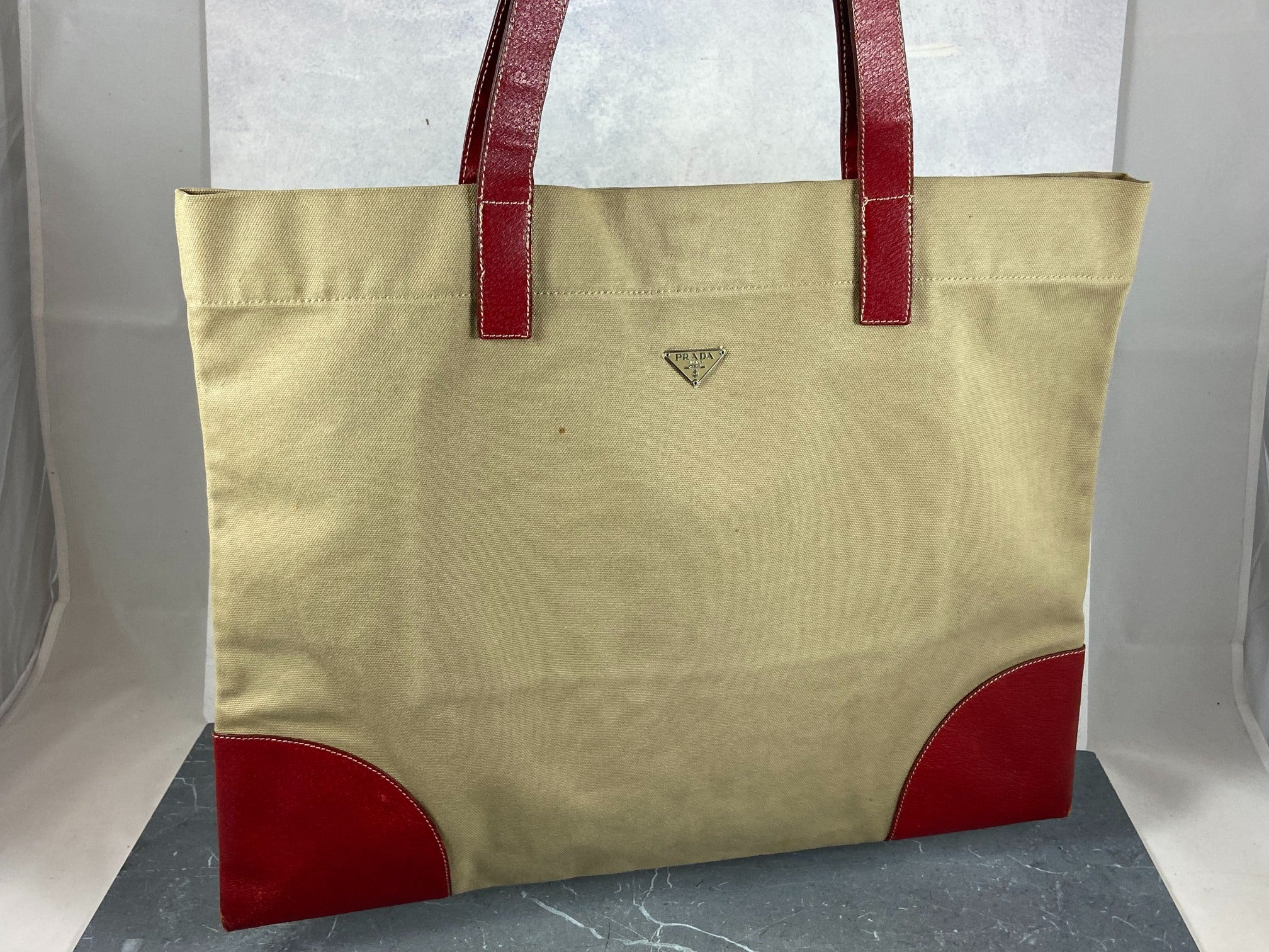- Prada Canapa Hand / Tote Bag Beige & Red
