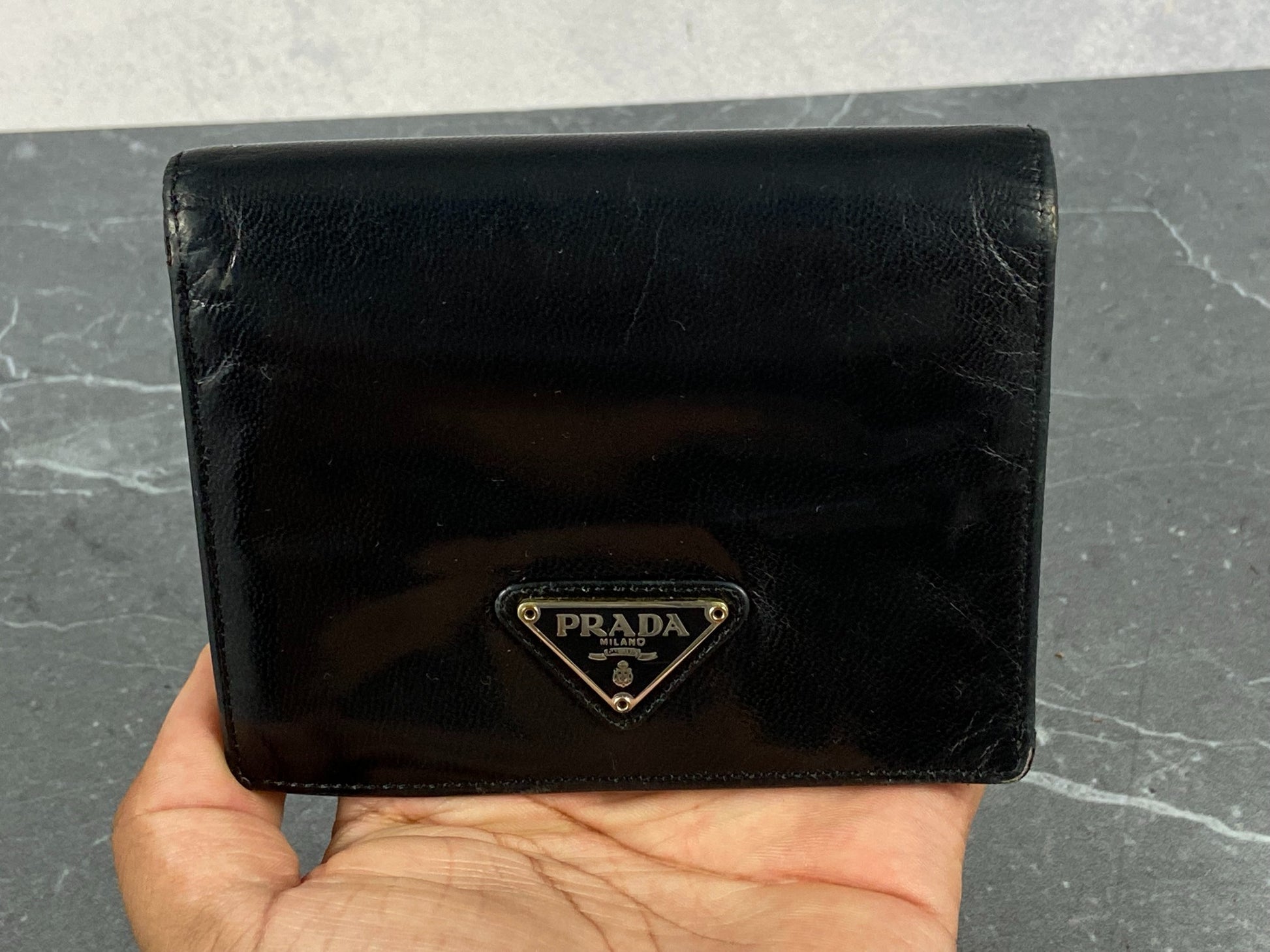 - Prada Compact Wallet Black Leather