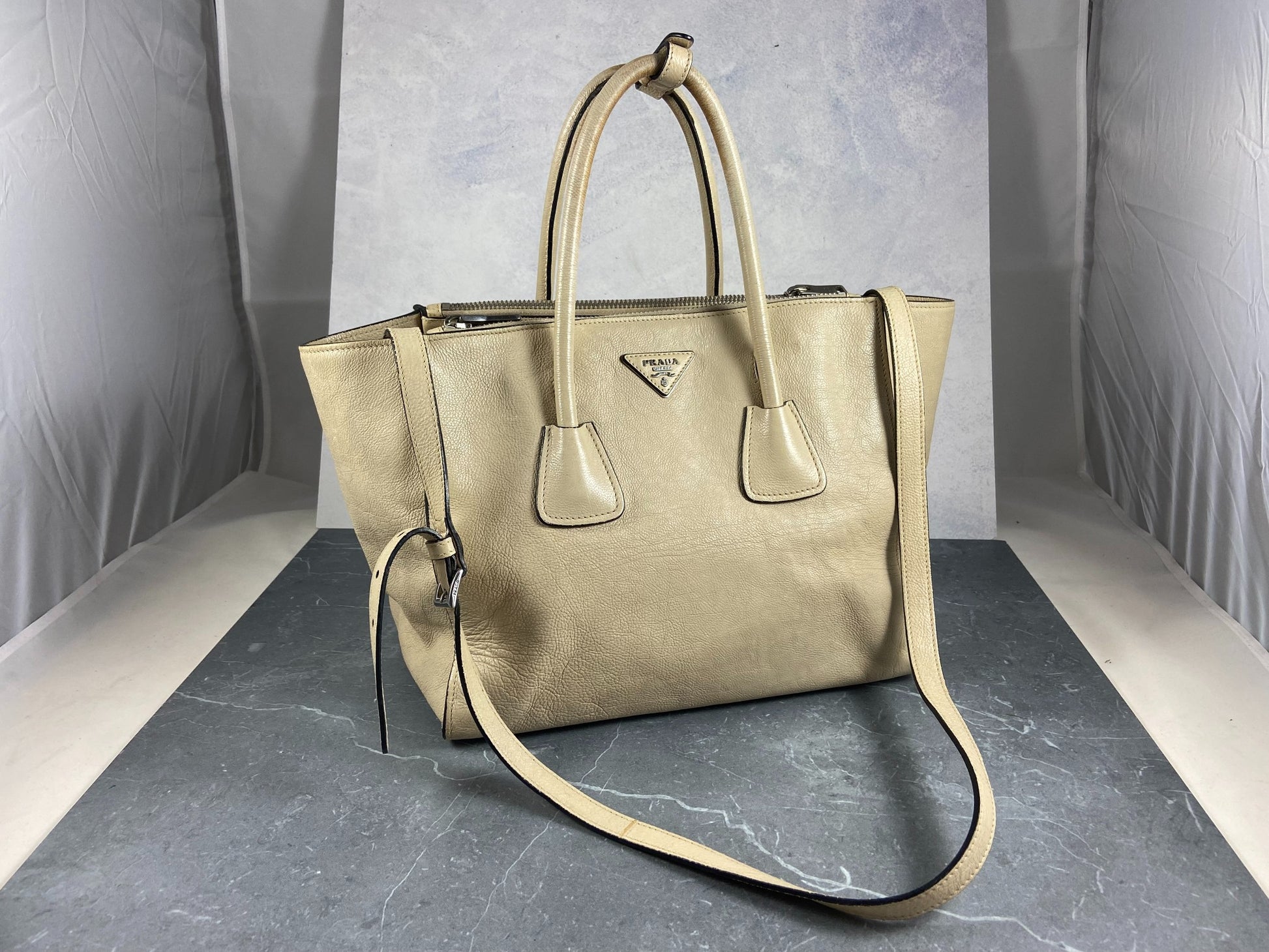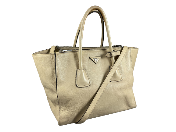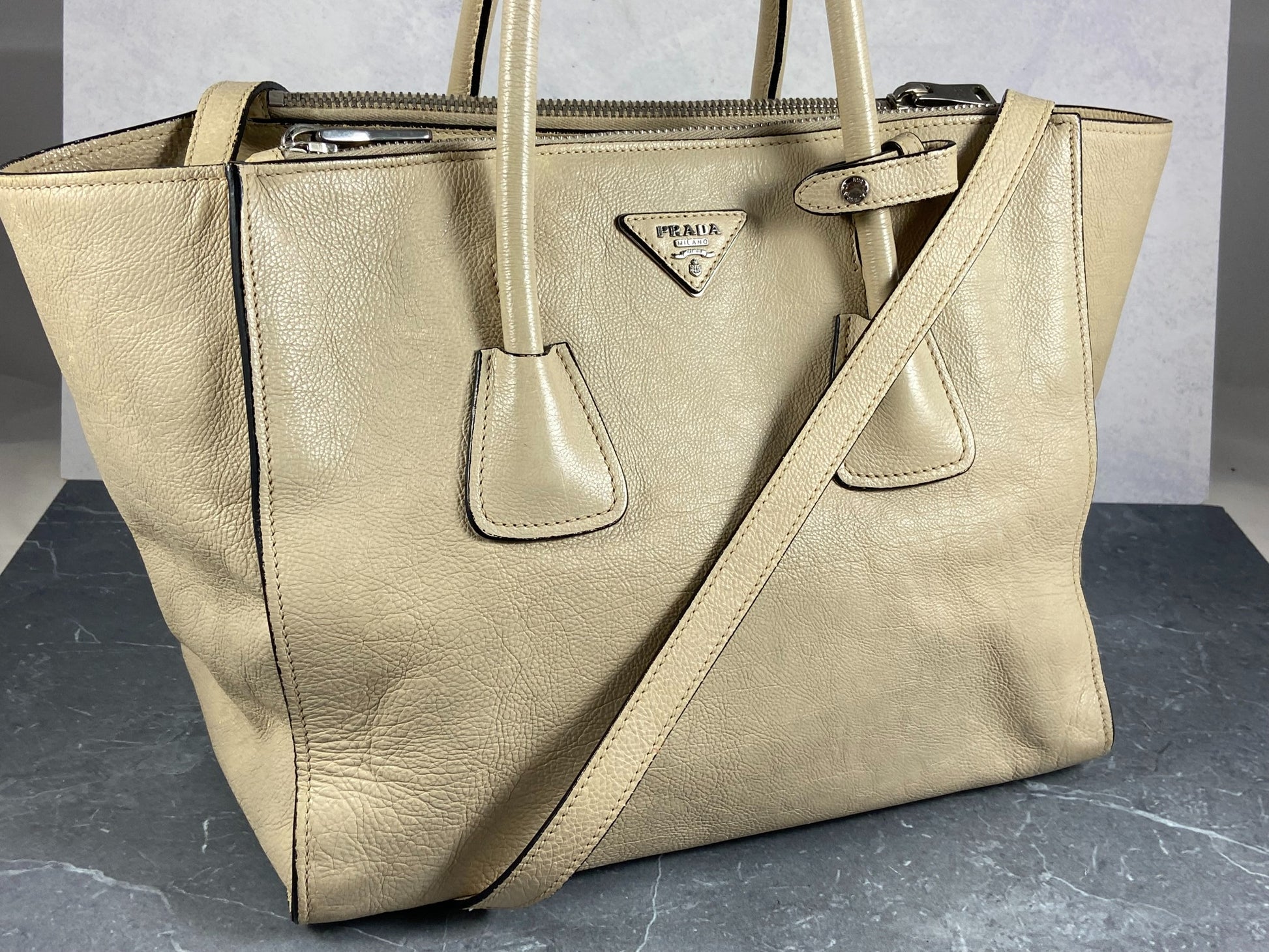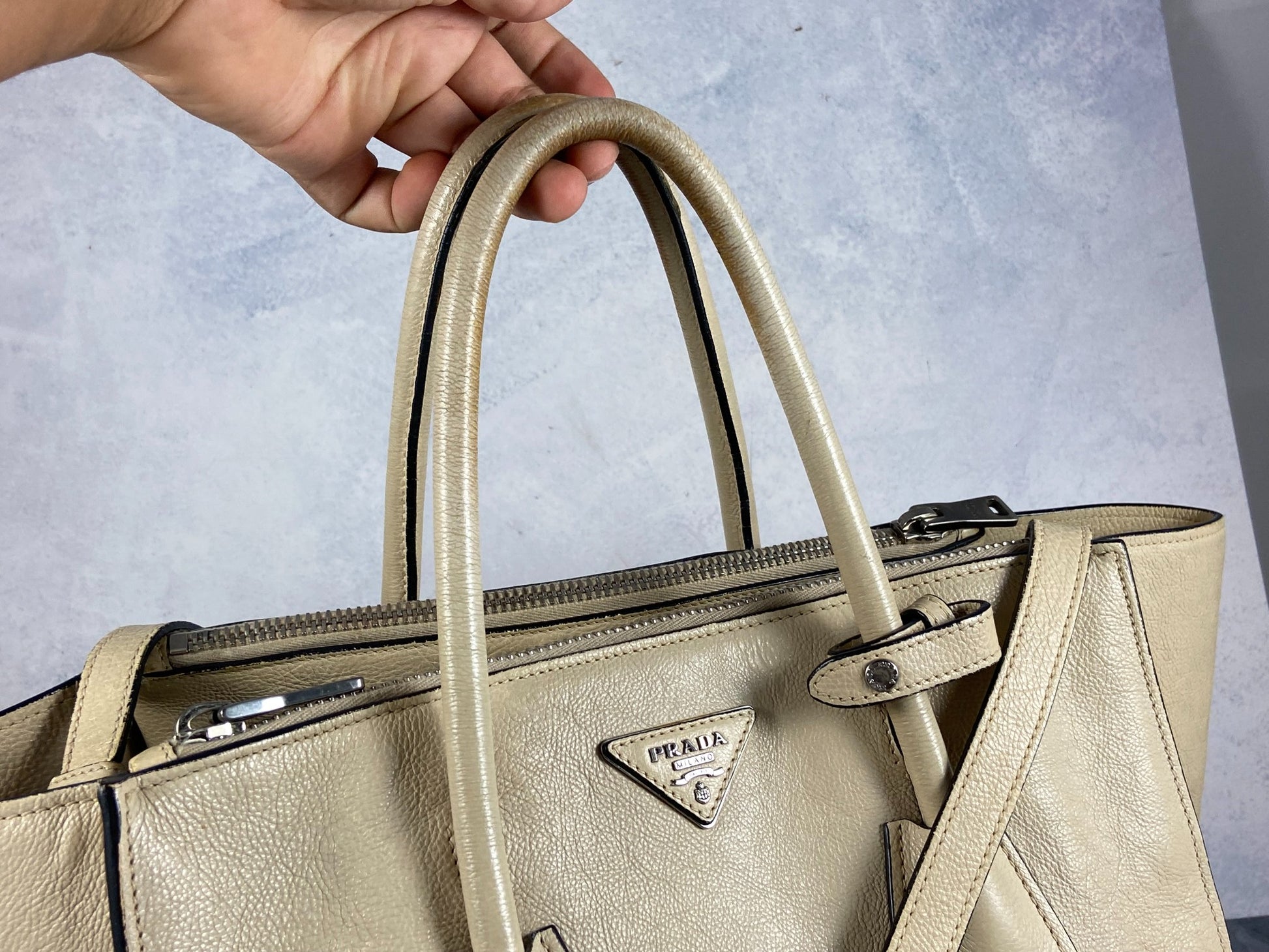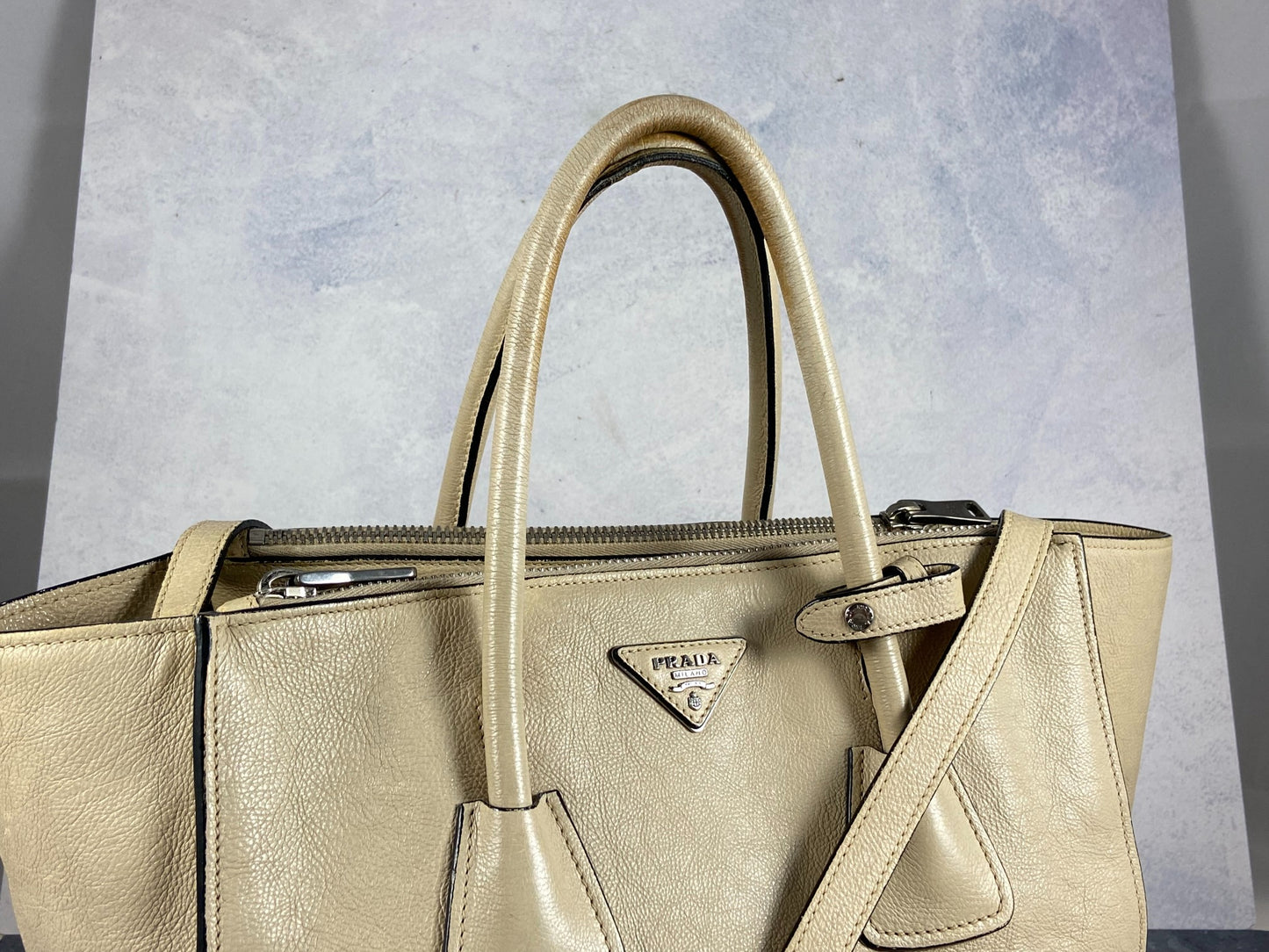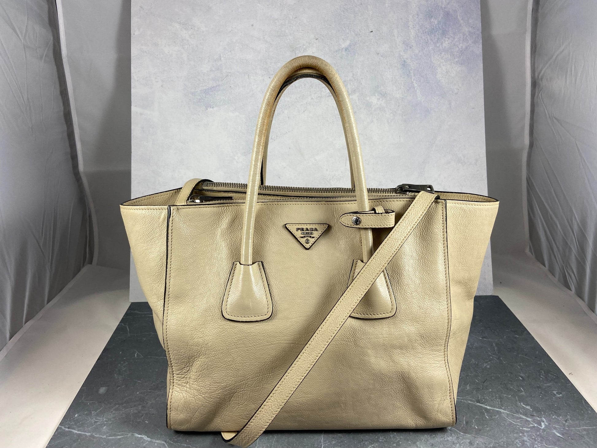 - Prada Twin Zip Hand / Shoulder Bag Beige Leather