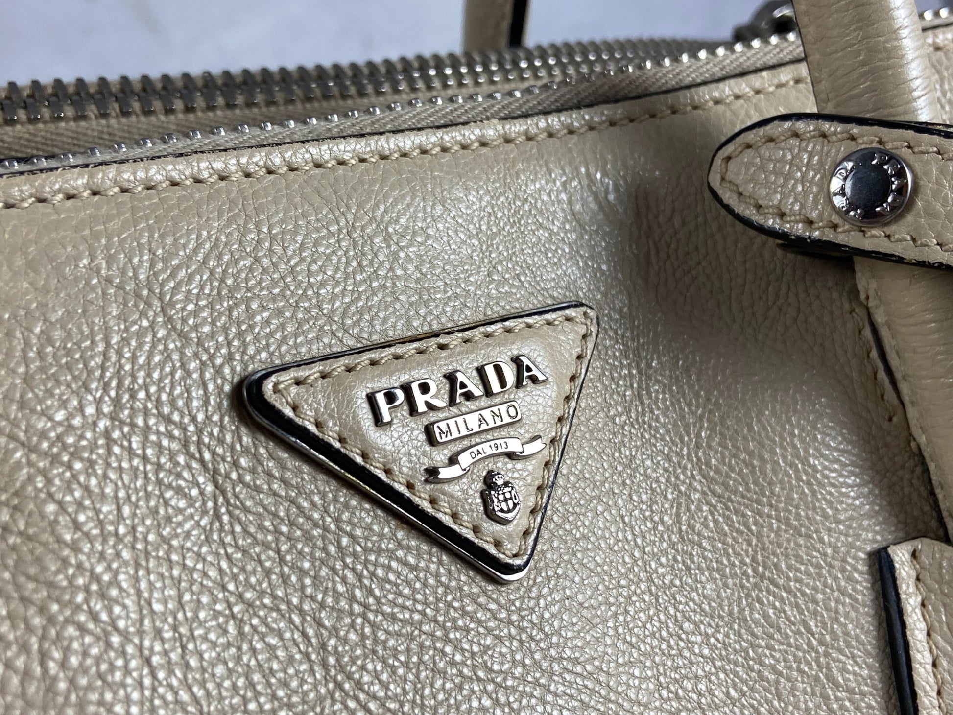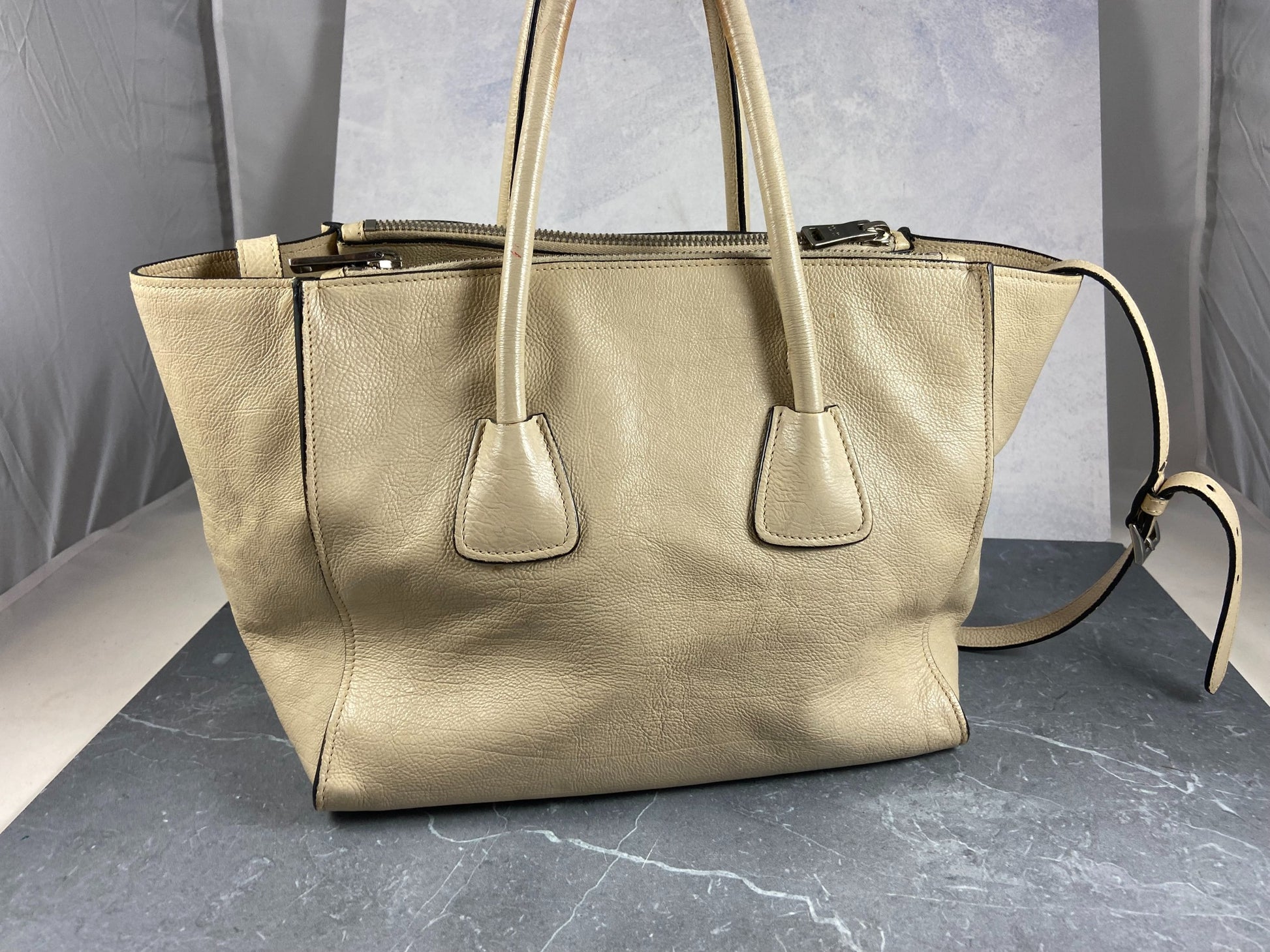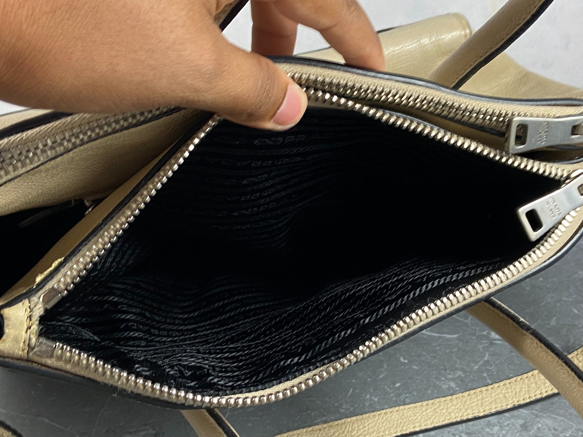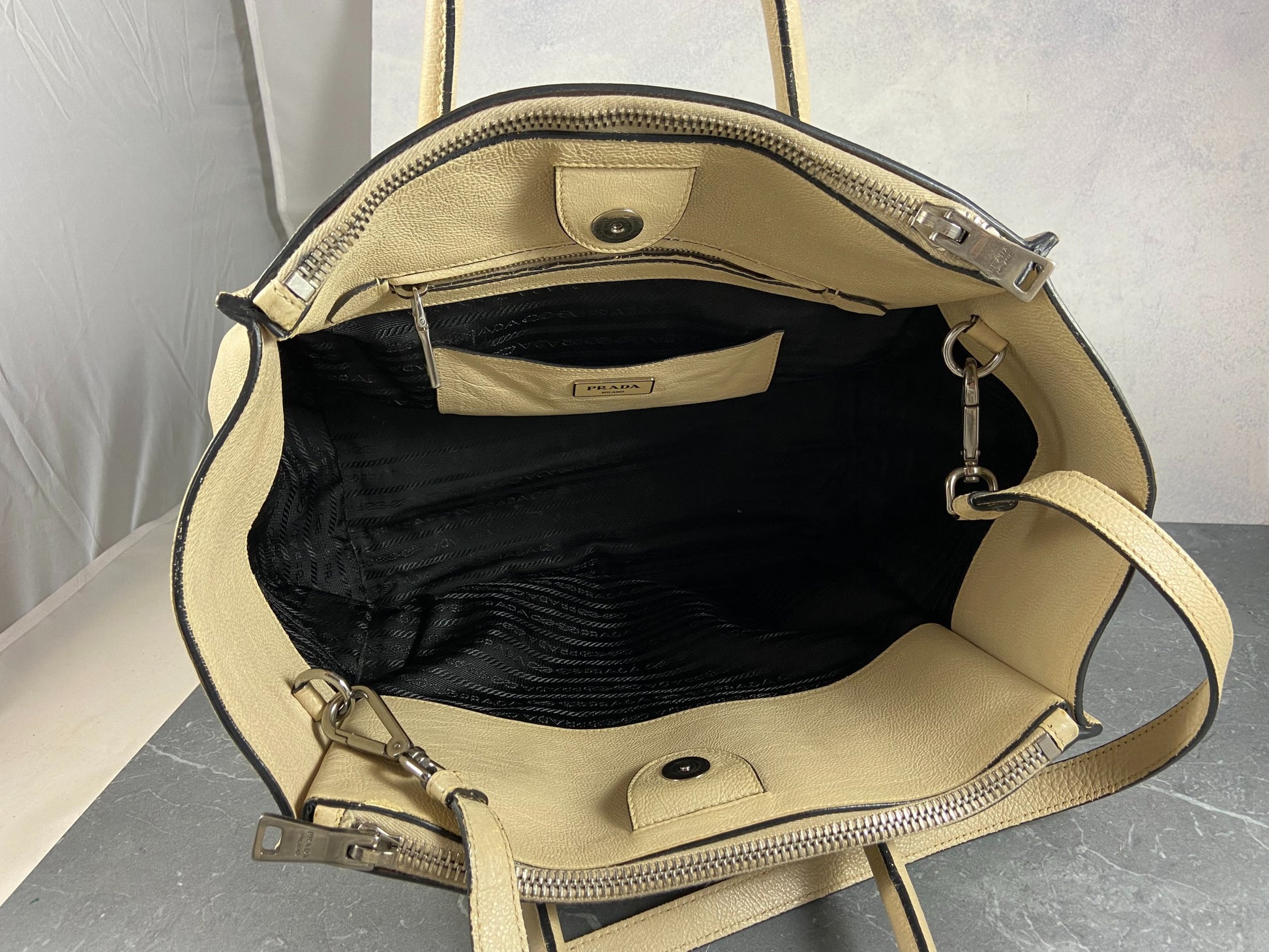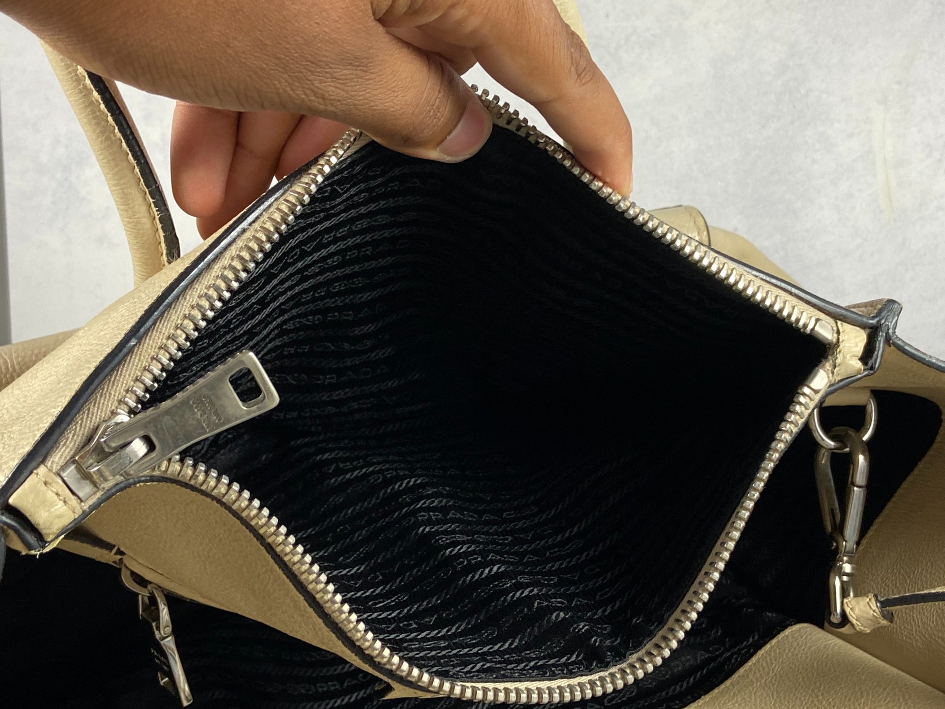 - Prada Twin Zip Hand / Shoulder Bag Beige Leather