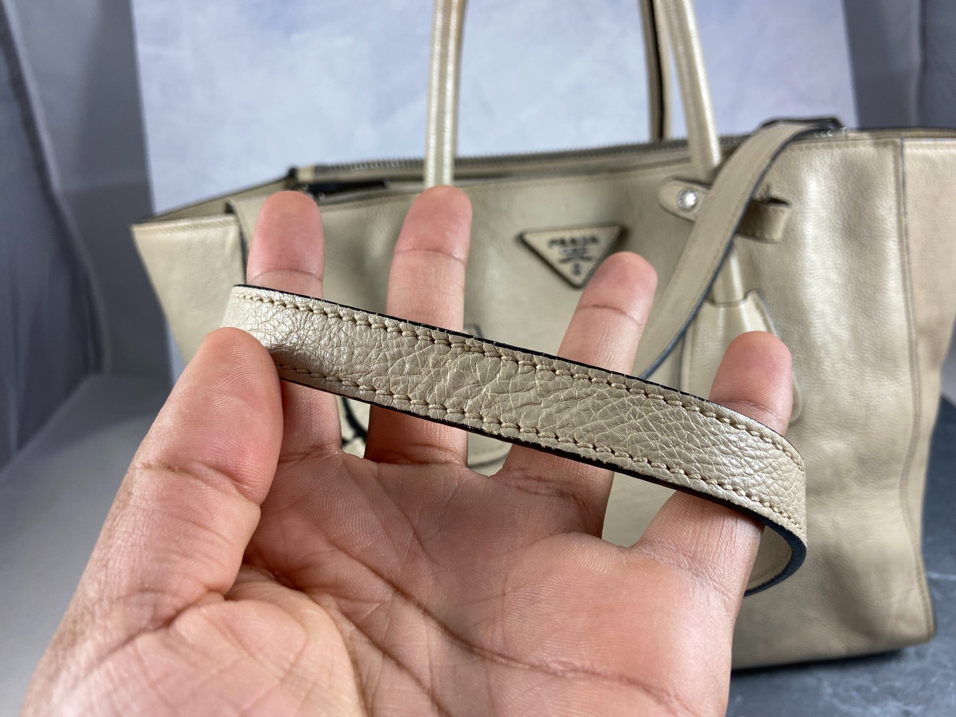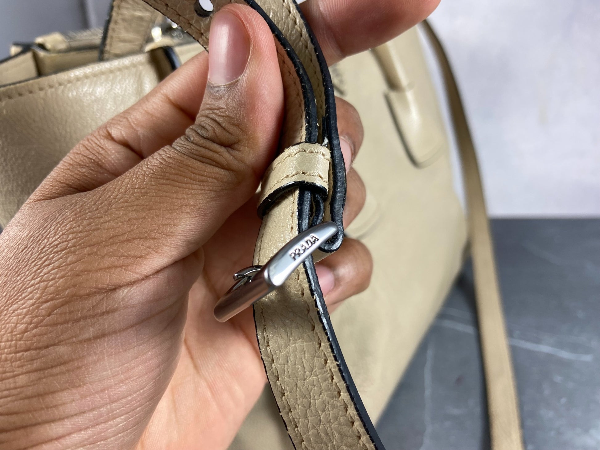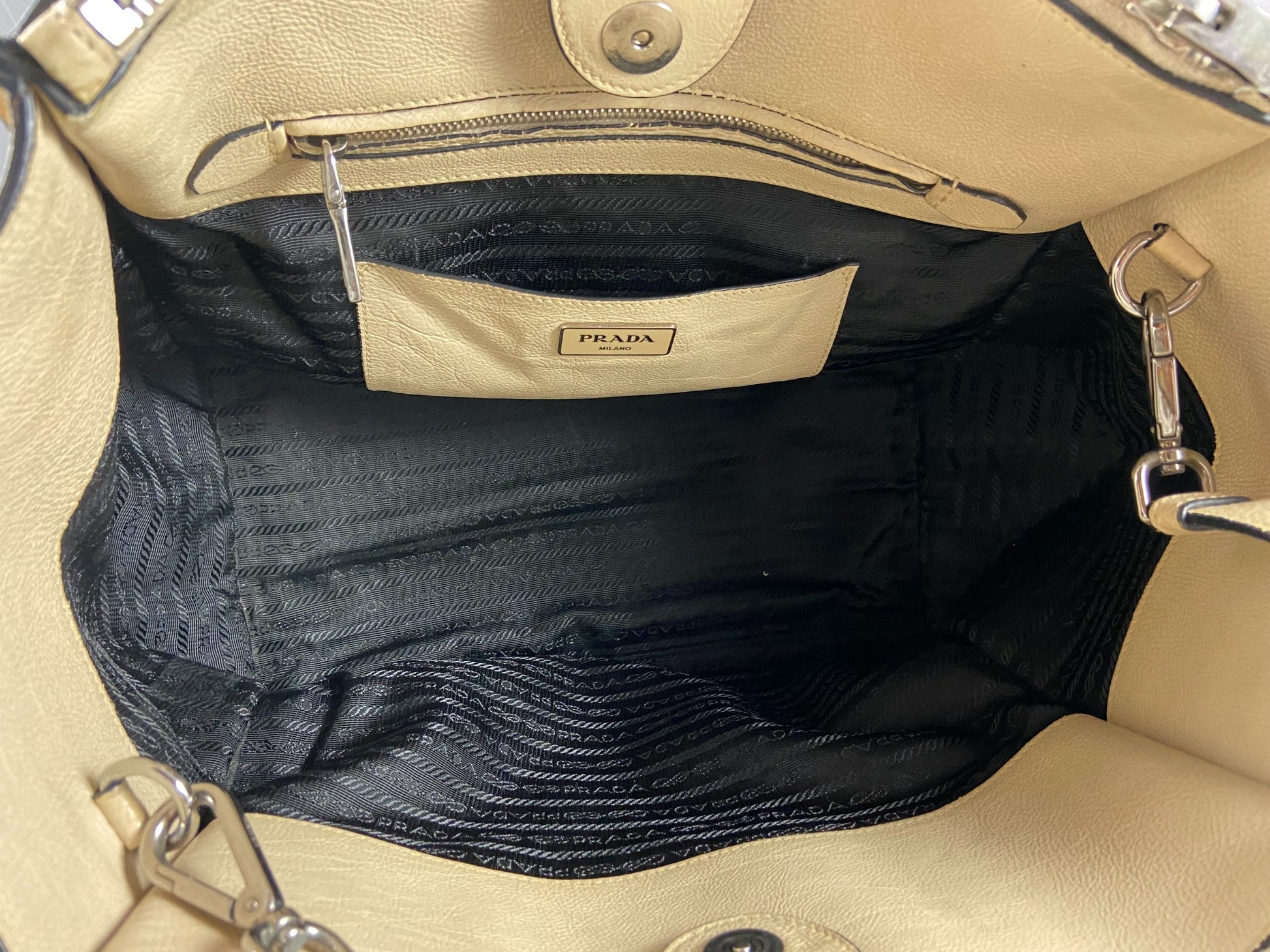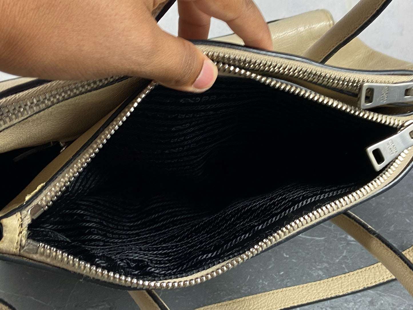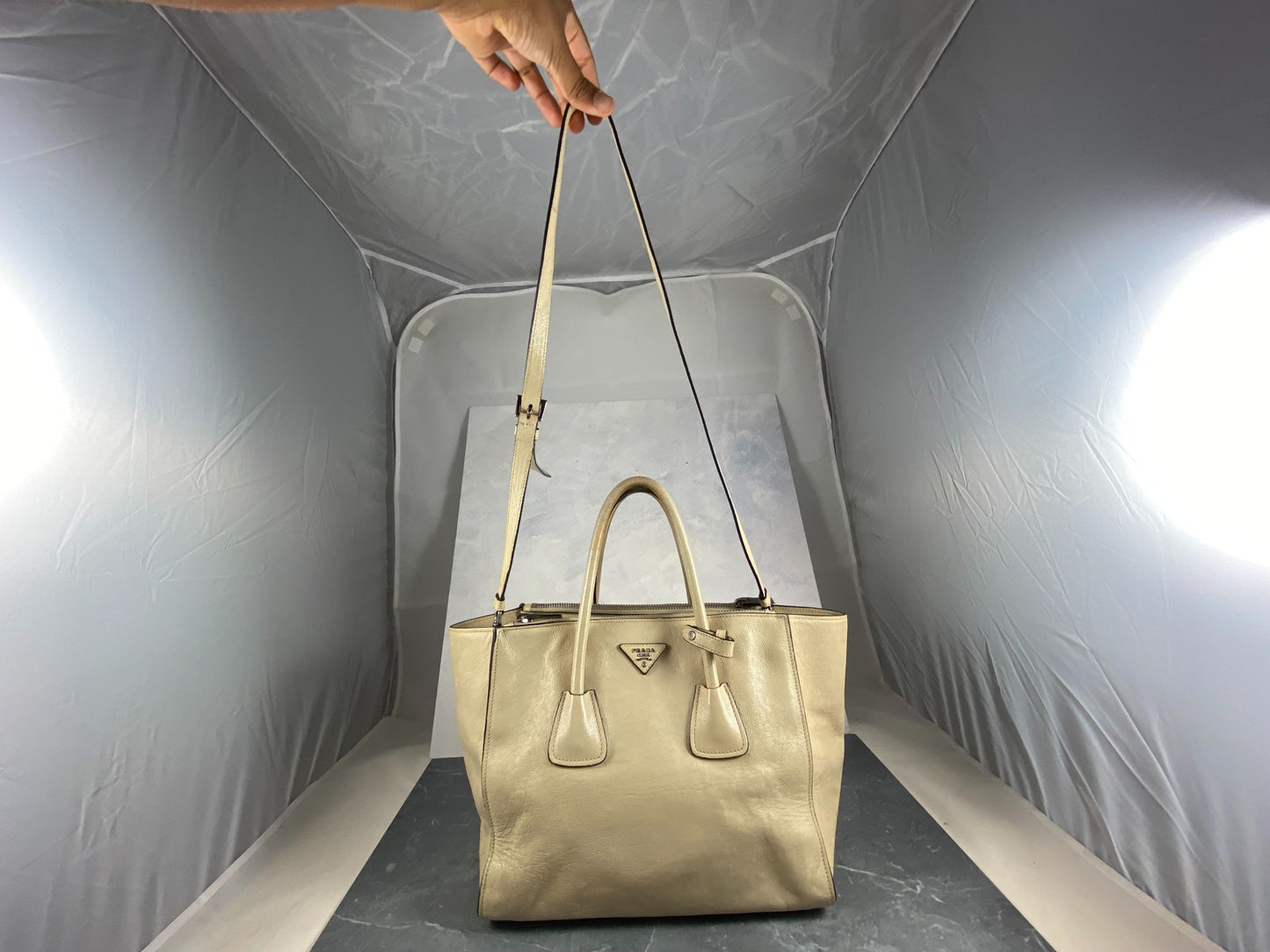 - Prada Twin Zip Hand / Shoulder Bag Beige Leather