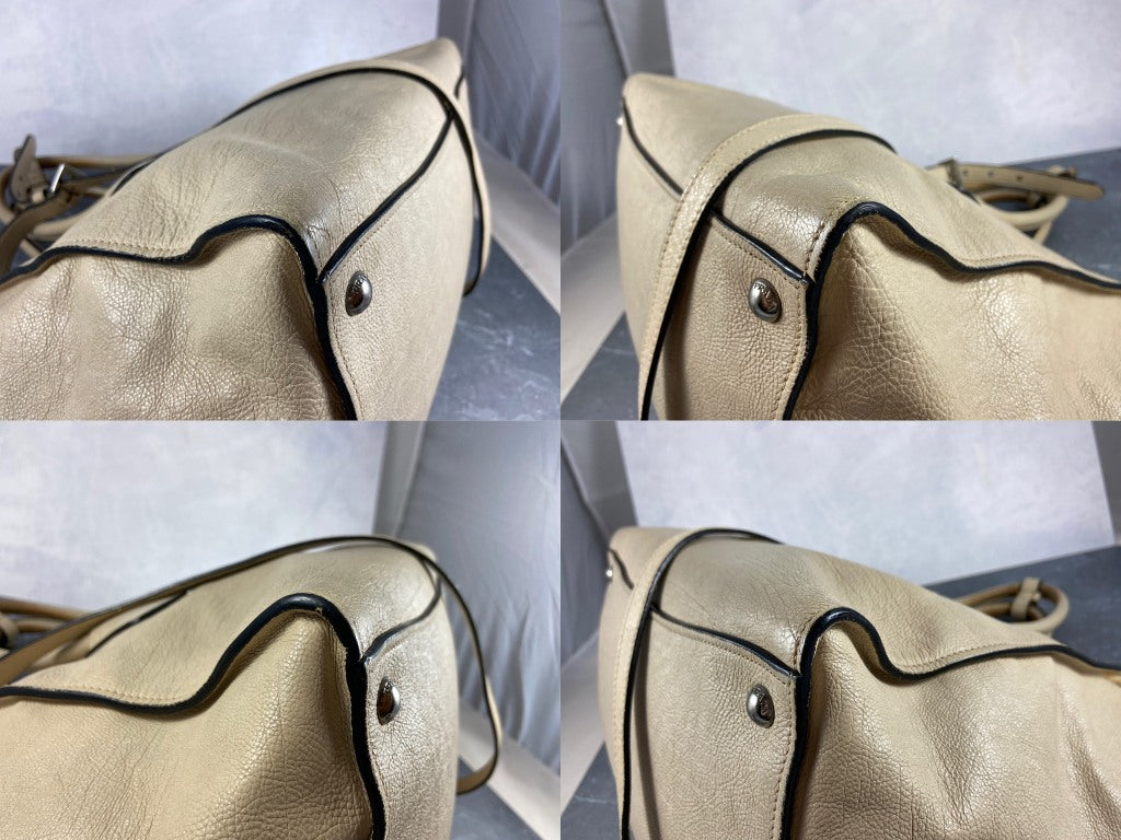 Prada Twin Zip Hand / Shoulder Bag Beige Leather
